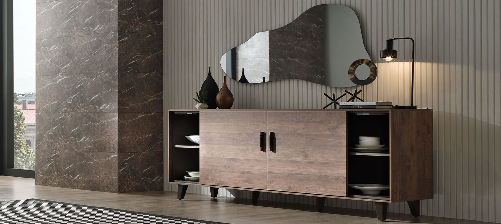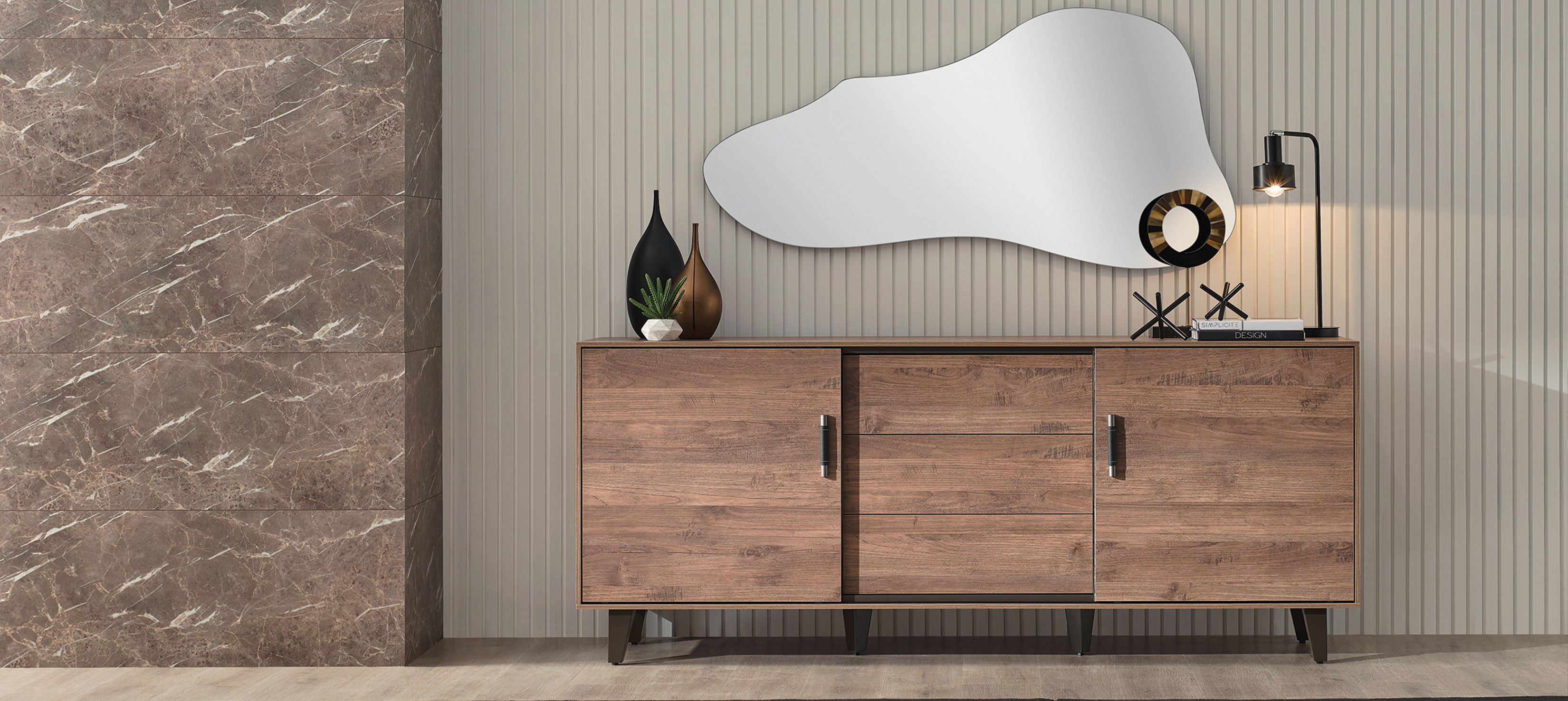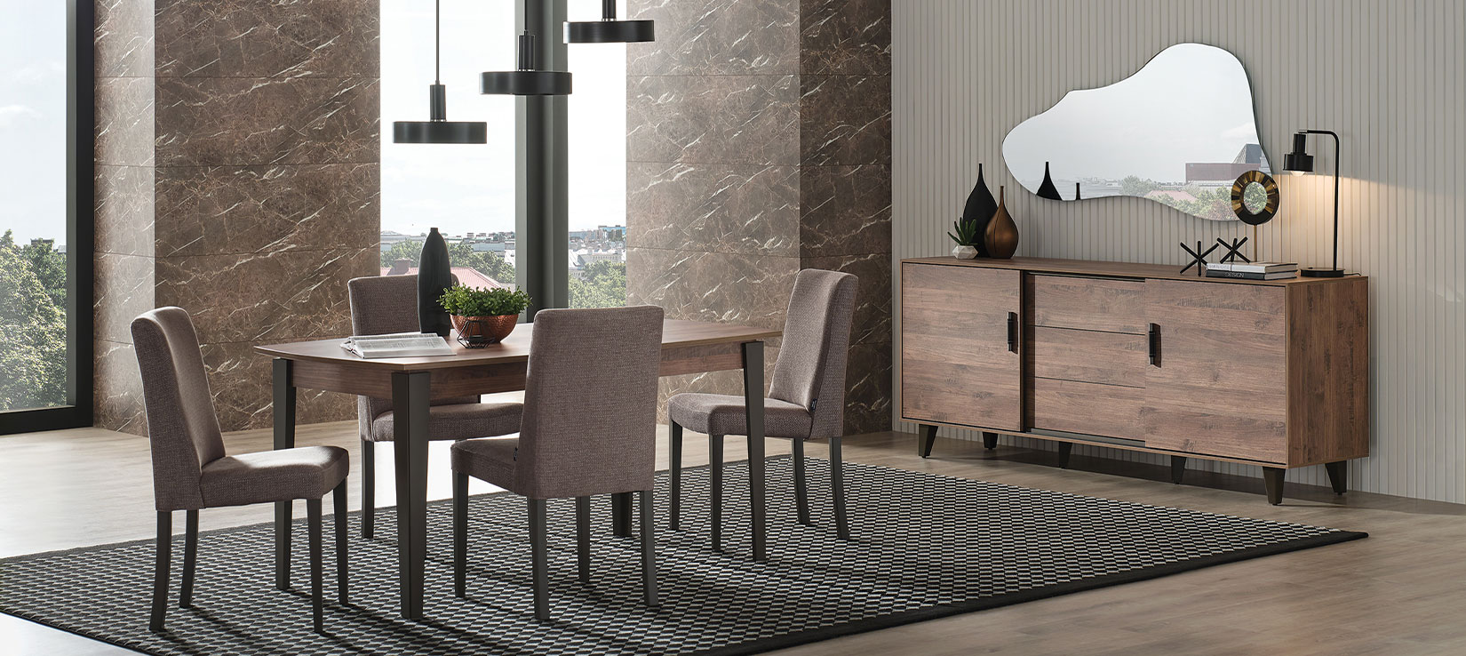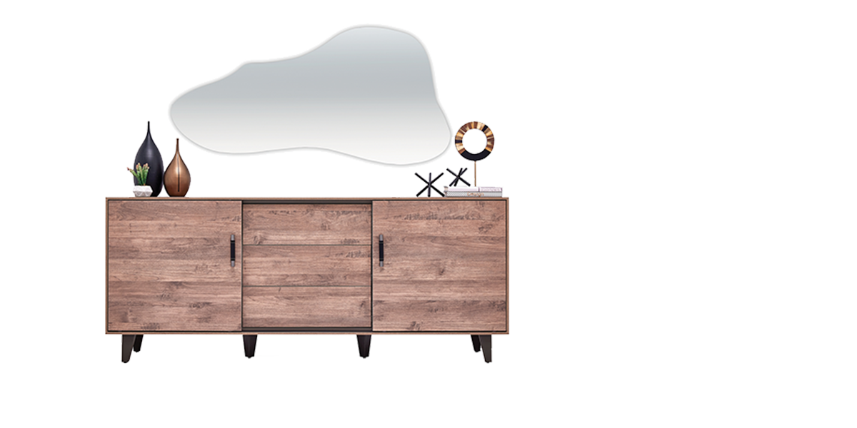 انعكاسات الطبيعية الجميلة... يدمج طاقم الطعام Orlando بين التصميم العصري وجماليات الأخشاب الطبيعية الخالية من التنمق. كما يضفي احساس الحركة والحيوية على المكان مع مرايا على شكل بركة الماء اللامعة والمقابض ذو التصميم الخاص. الممثل الأنيق والمثالي لنمط العودة للطبعية, الأن في متاجر Enza Home !