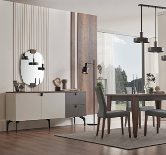 Cordell Bedroom that reflects the refined stylishness of walnut, grey and off-white surface combination brings aesthetics and functionality together with its modular design approach. The mattress headboard that draws attention with its special sewing application reflects the young design line of the series with its natural mirror application on the wardrobes and metal matt black handle details. It emphasizes high functionality with its chest of drawers with 2 different sizes while offering modular solutions for different usage needs with 3 and 5 cabinets with doors alternatives along with the option of wardrobe with sliding doors. Cordell Bedroom that stands out with its contemporary lines and refined details creates a unique transformation.