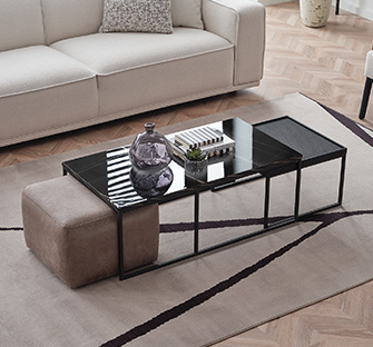 Bring the Feel of Nature Into Your Home Décor… Solara Coffee Table Image Content: Bringing a strong natural aesthetic to living spaces with its wood and marble-like top design, Solaro Coffee Table represents a modern style with its refined design. While adding an eye-catching effect to the home decor with its black metal base coffee and side table module alternatives in 3 different dimensions and color options, this model stands out with the functional advantages it offers.