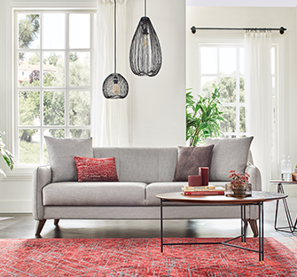 Combining the functional and high comfort design set-up of contemporary decoration with remarkable touches, FABIA LIVING ROOM brings maximum comfort to living spaces. It completes special sewing applications used in body and armrests with rich fabric and throw pillow alternatives. The easy-to-open bed mechanism within the 3 seat sofa stands out as a functional detail that makes everyday life easier. Walnut-coloured special leg application adds a natural and elegant interpretation to the design.