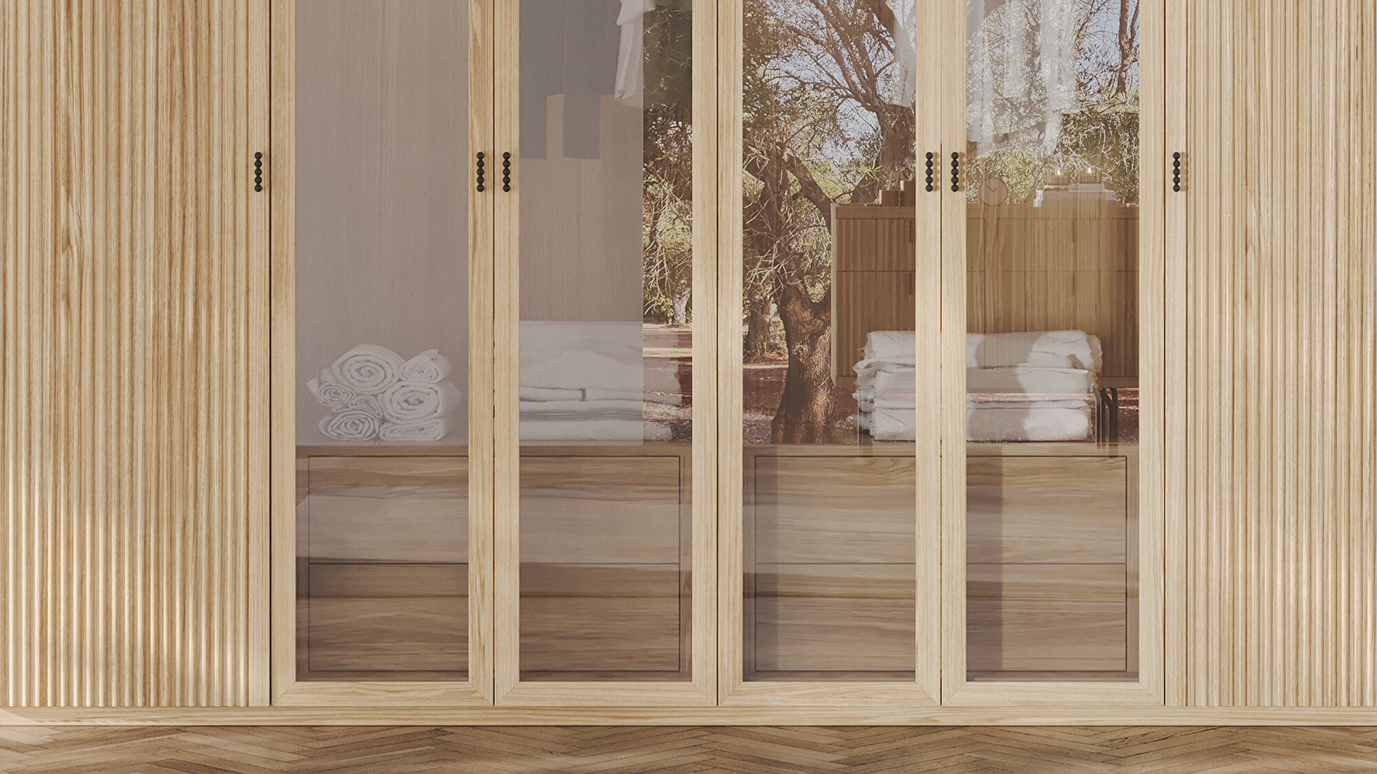 Unique Locations With its reflective smoke gray glass wardrobe door and motion sensor LED lighting, AUSTIN 6 DOOR WARDROBE reflects its stylish and functional details to the spaces with a unique interpretation.