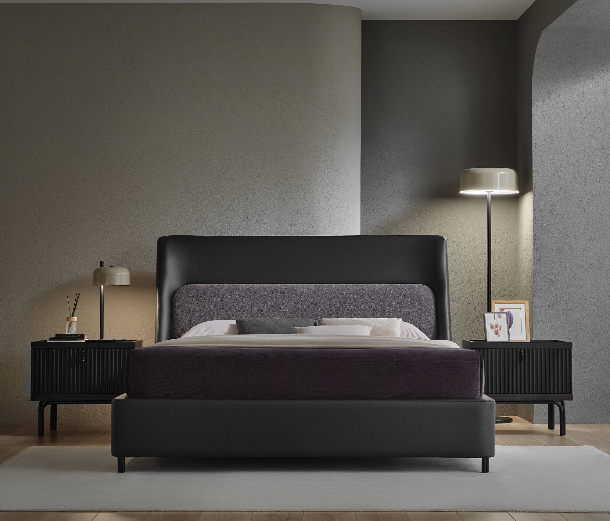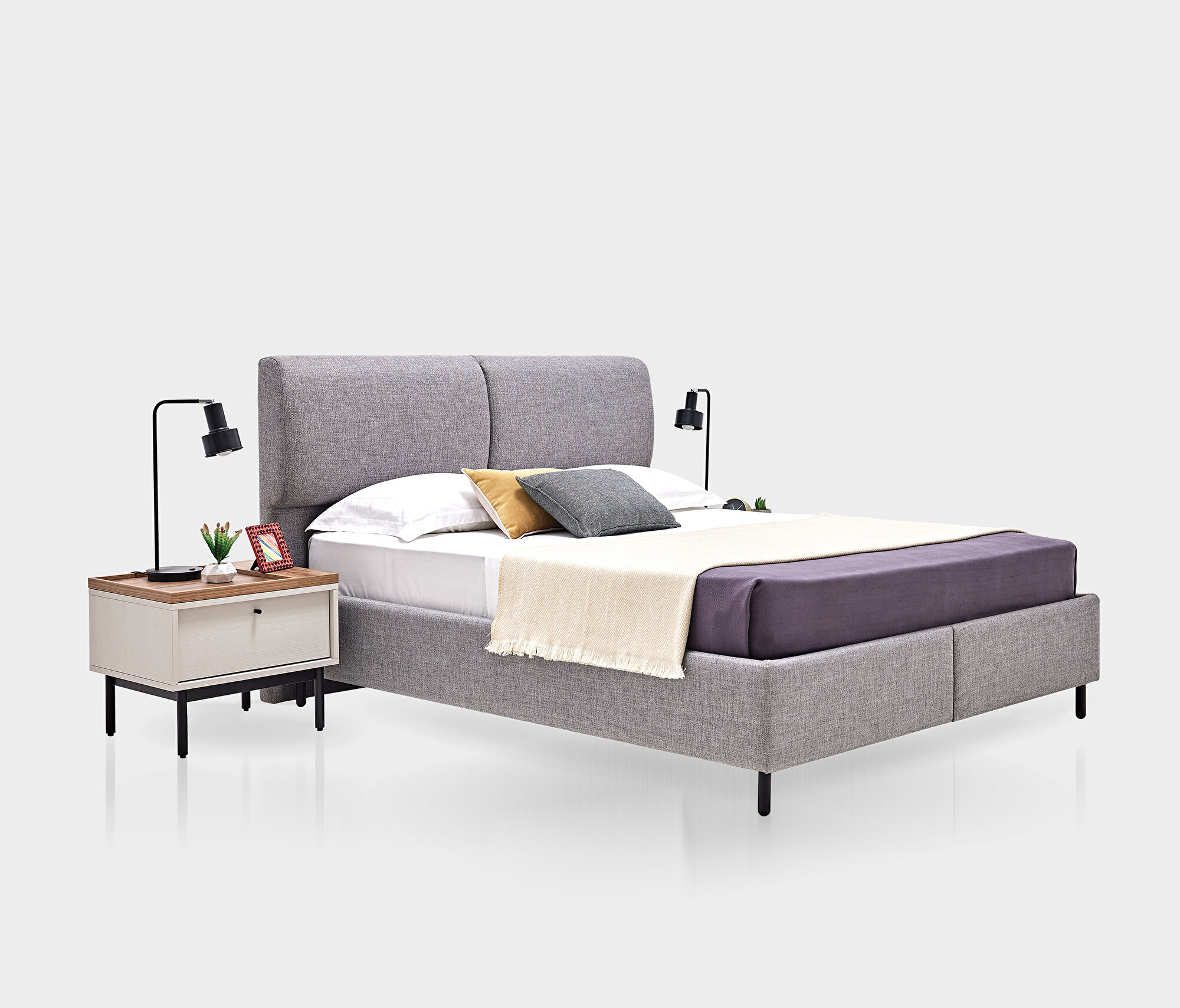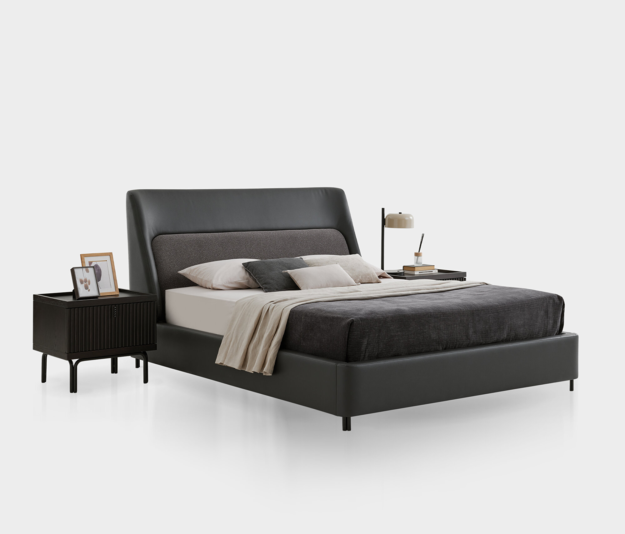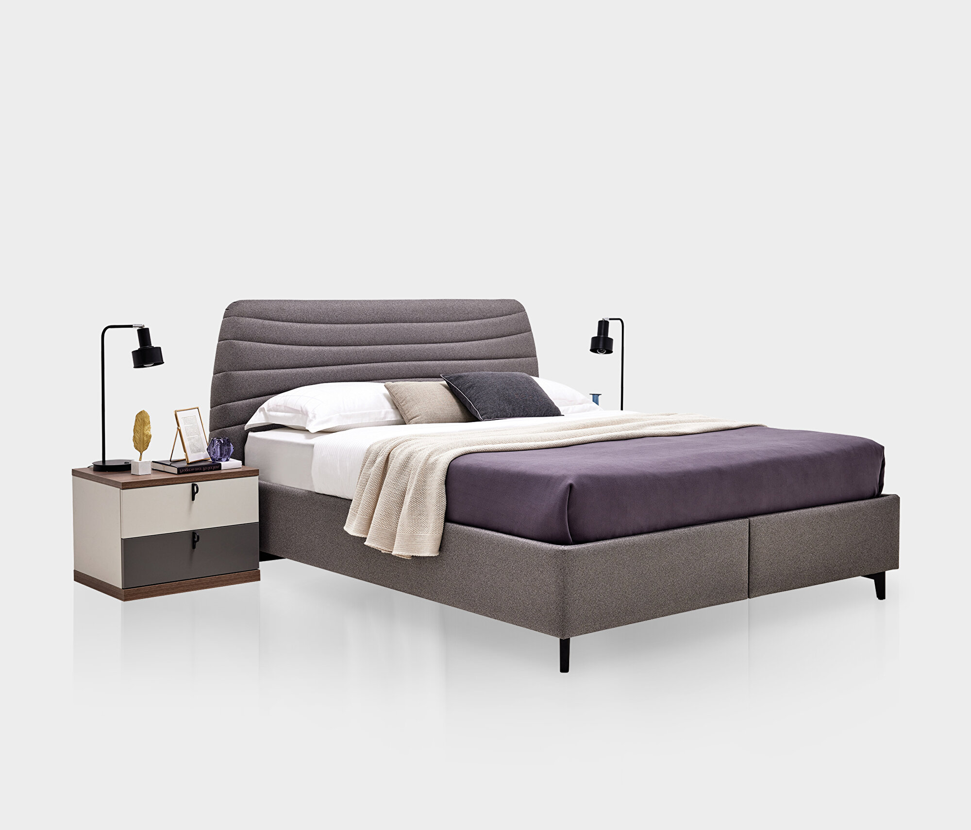 Base with Headboard, (200x200 cm), 40110 Gray-15202 Dark Gray
