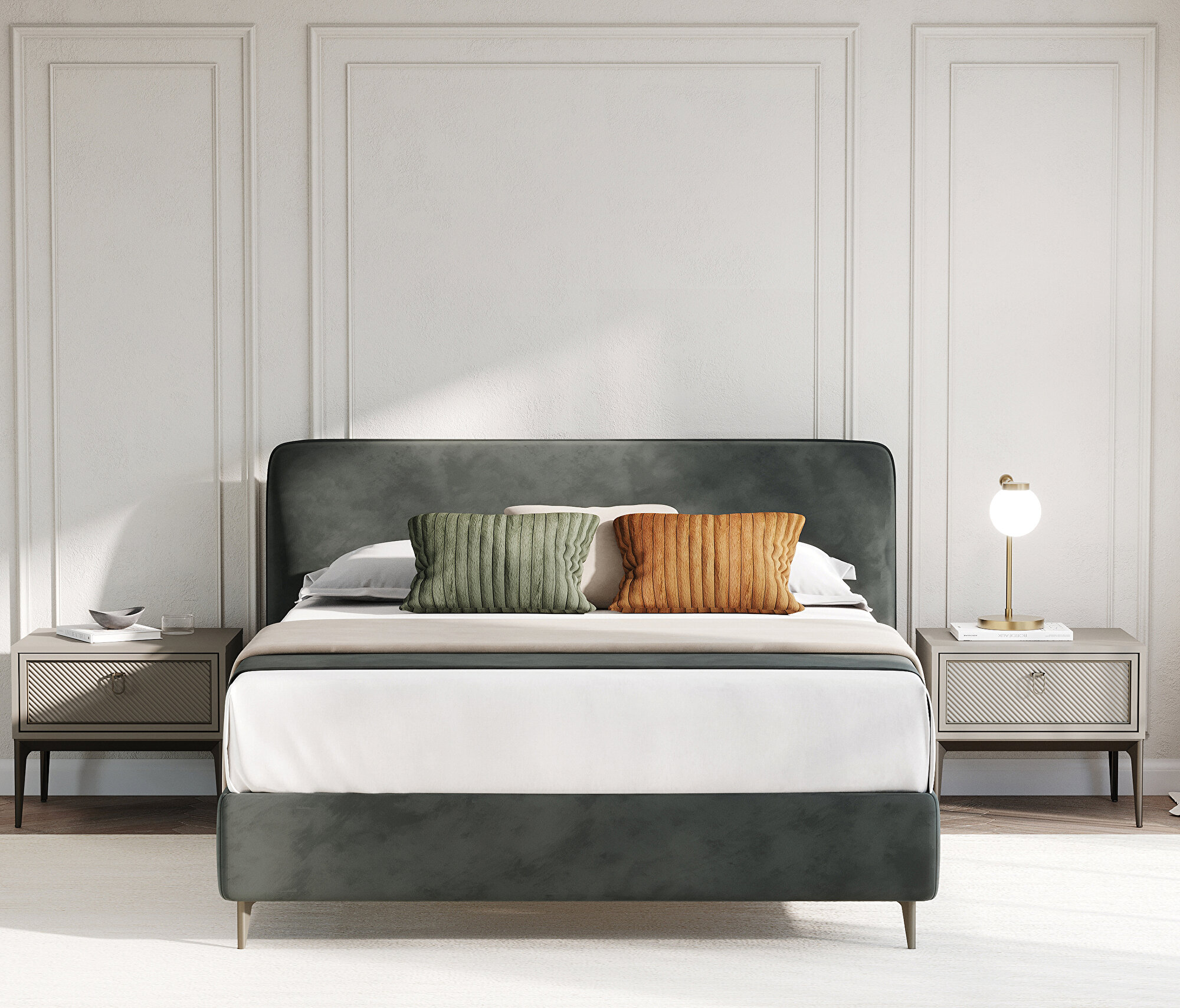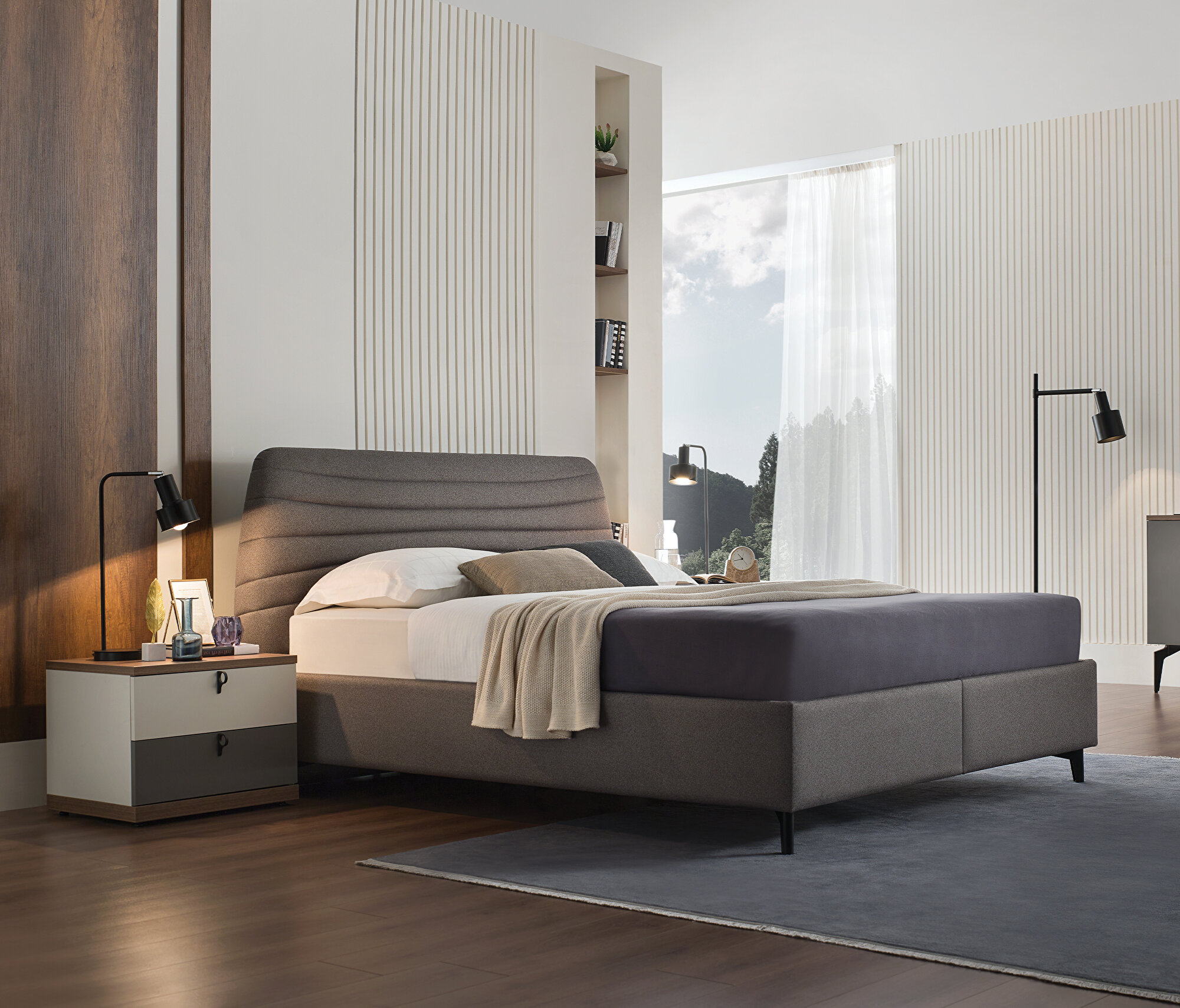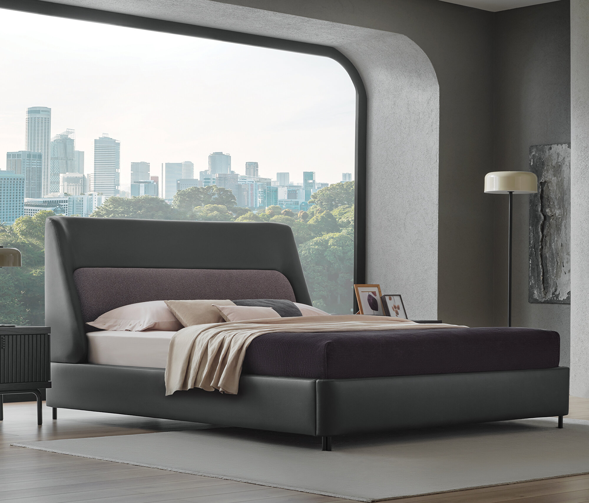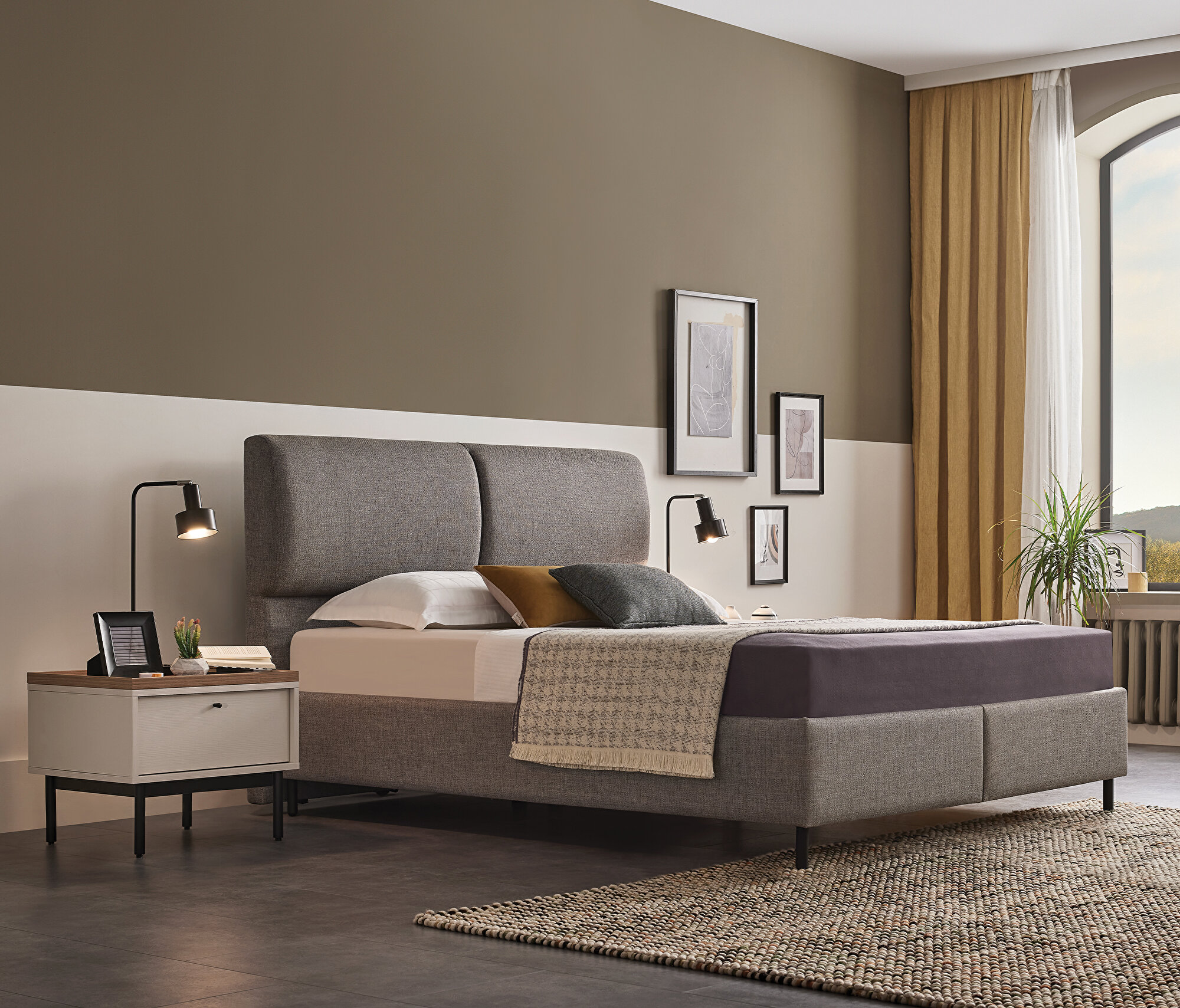 Base with Headboard, (200x200 cm), 40110 Gray-15202 Dark Gray