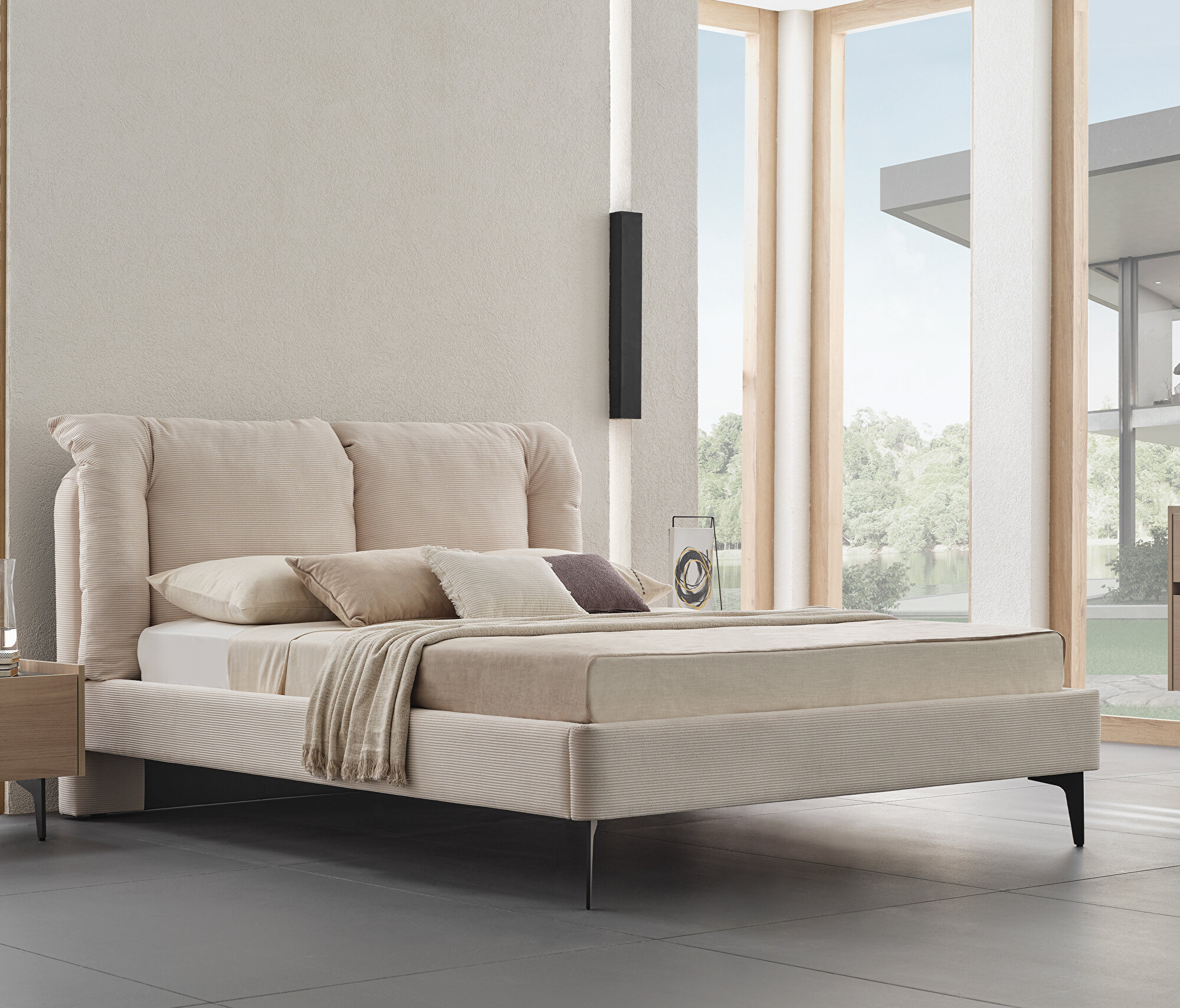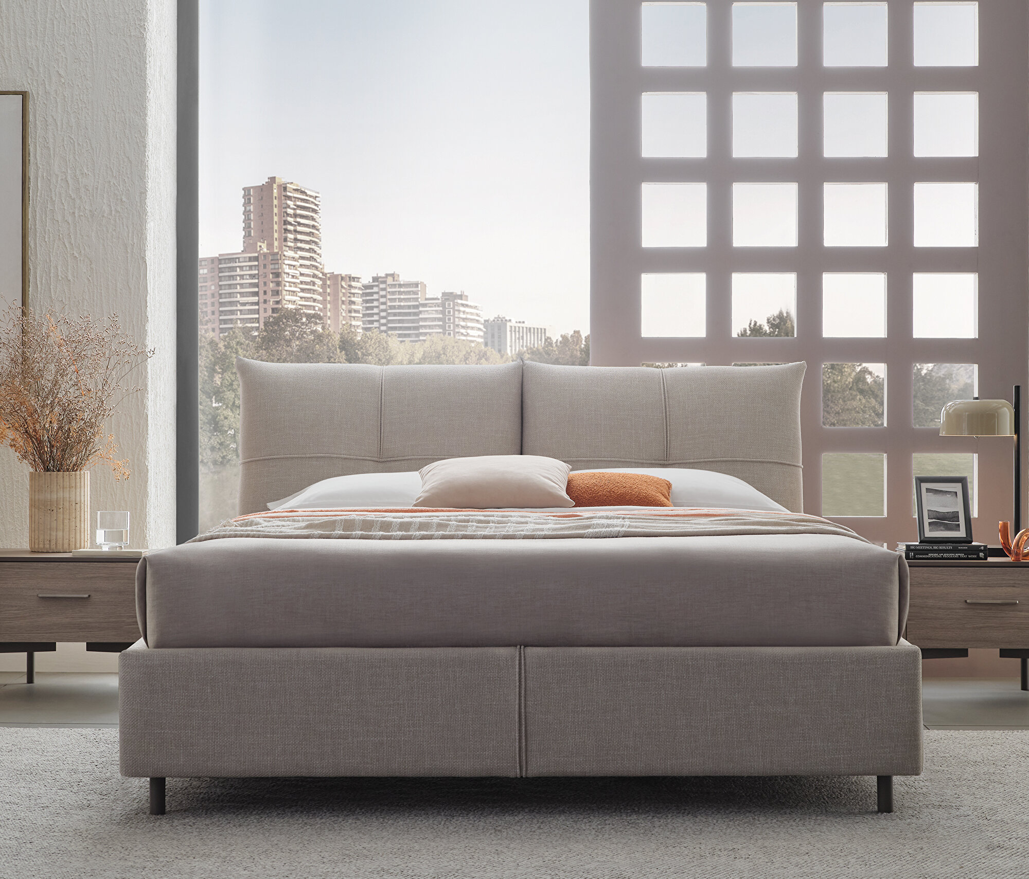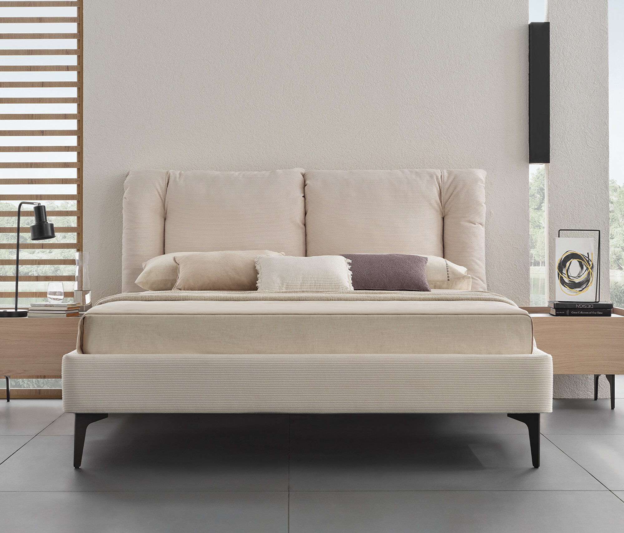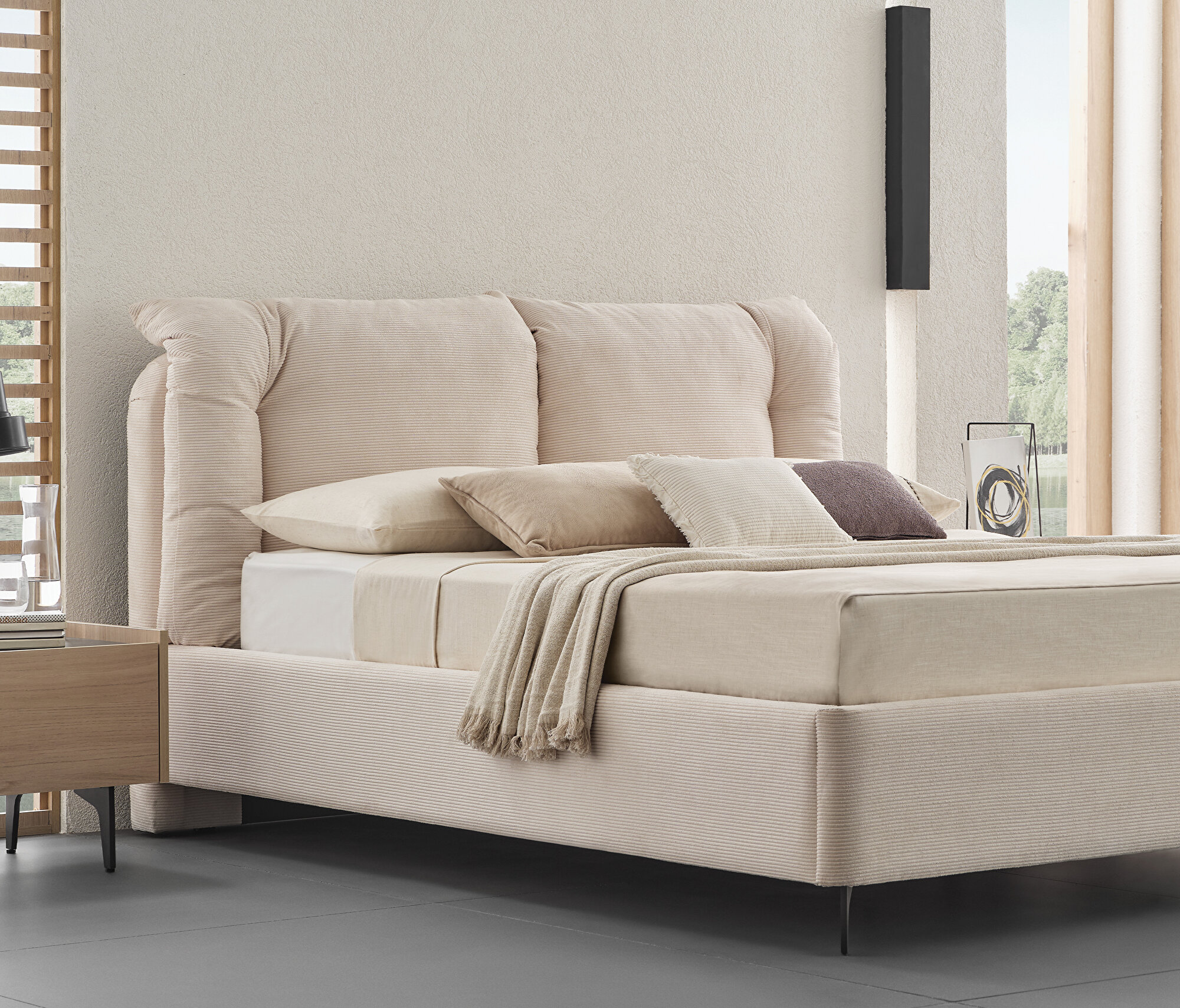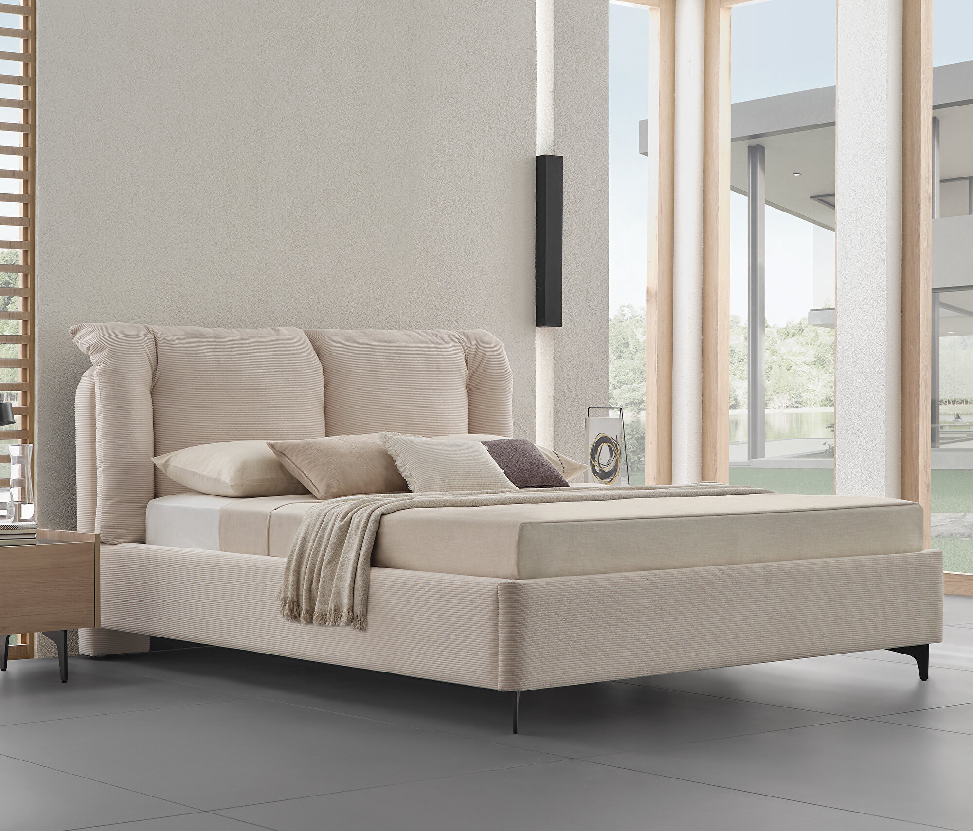 Bedframe with Headboard, (200x200 cm), 17601 Beige