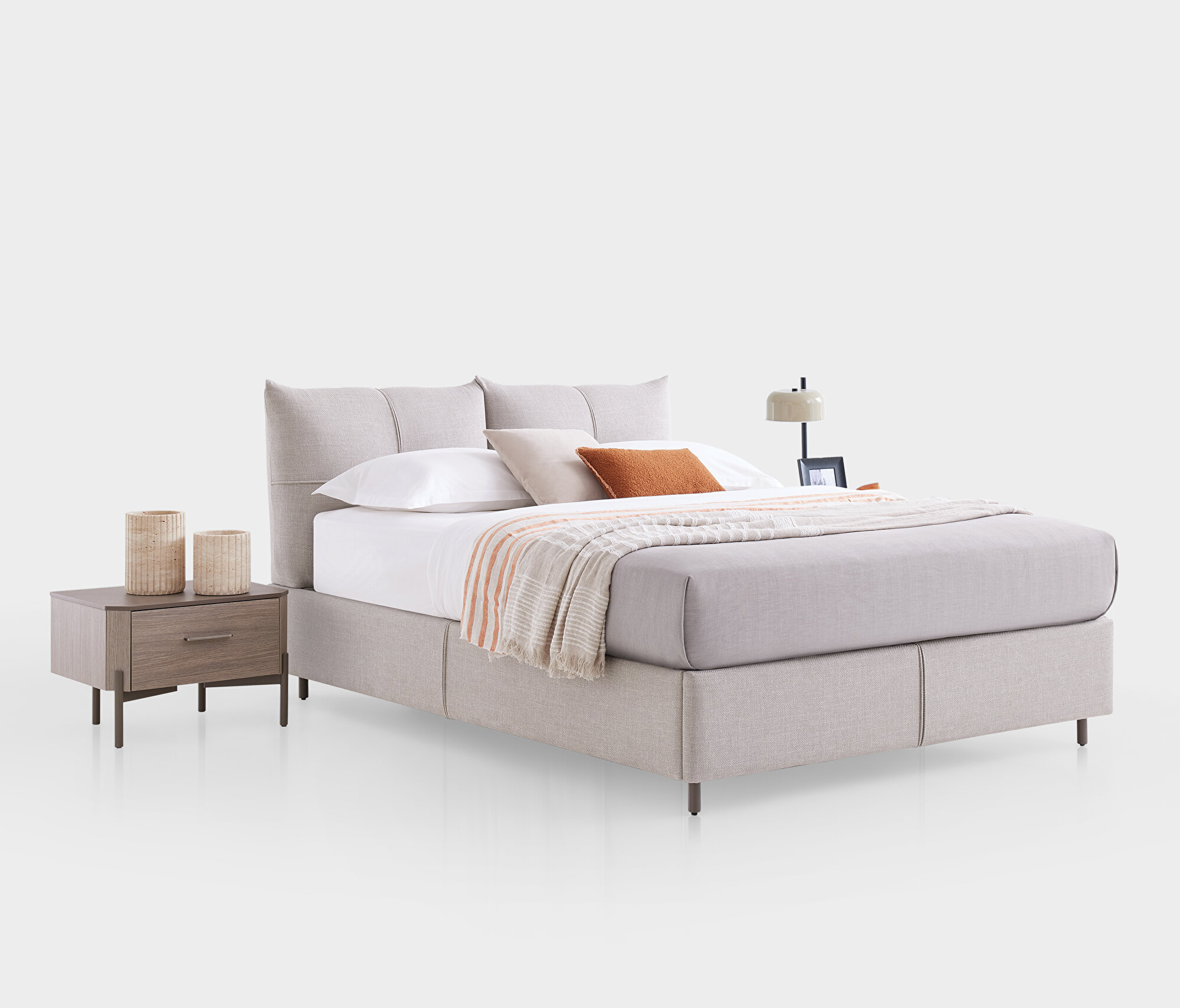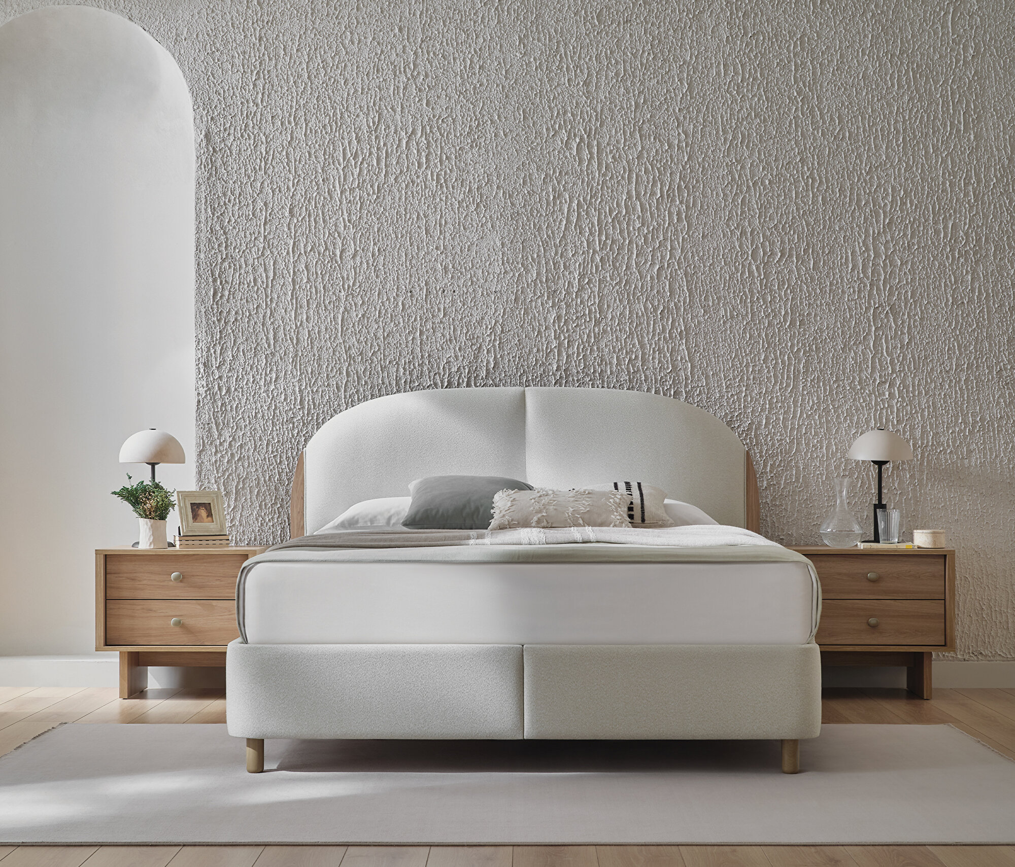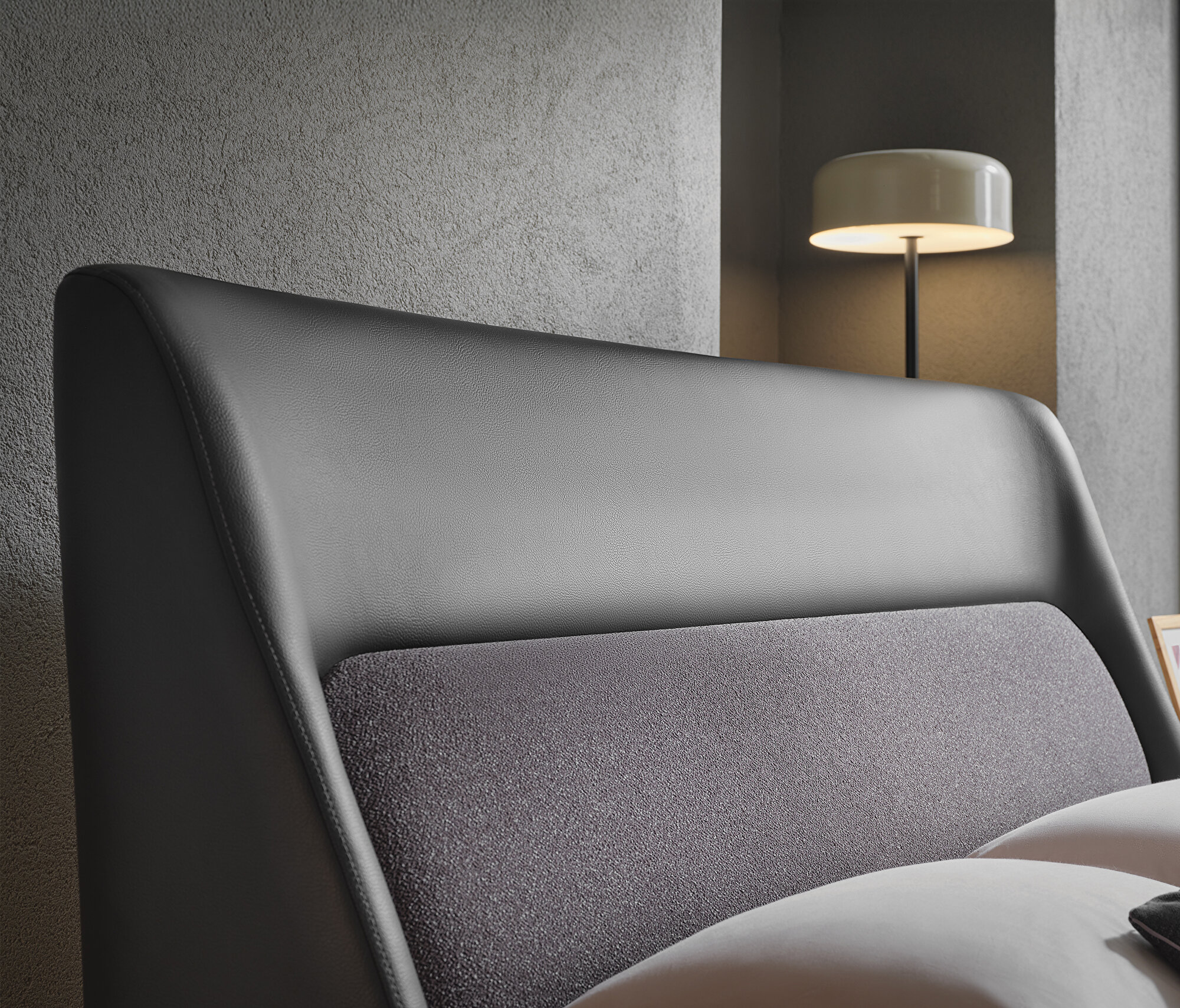 Base with Headboard, (200x200 cm), 55901 Light Gray, Texture Fabric