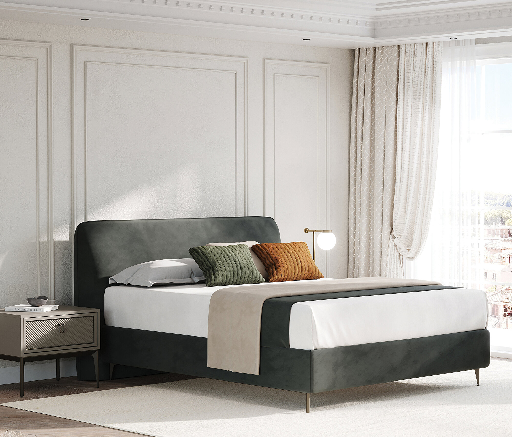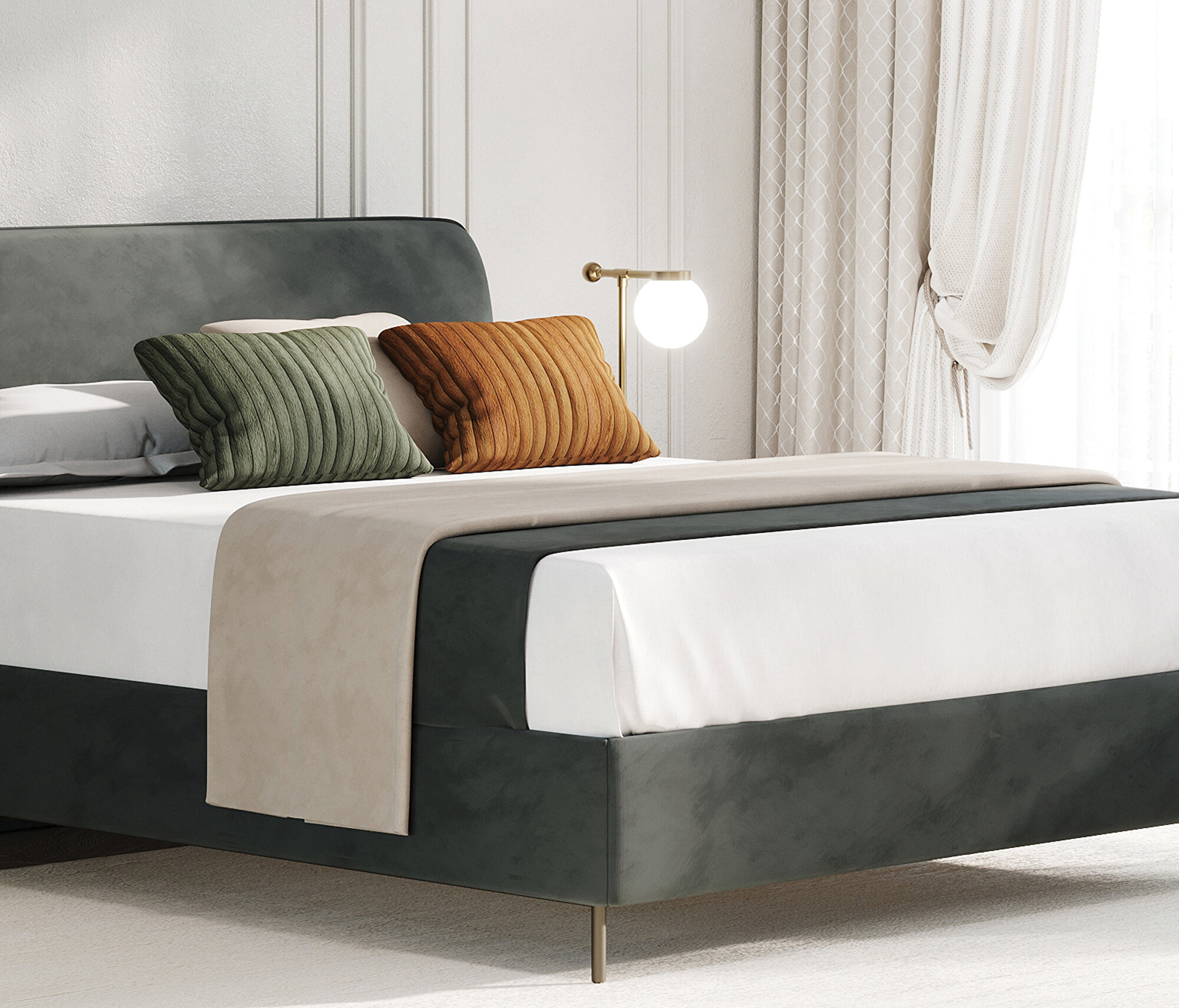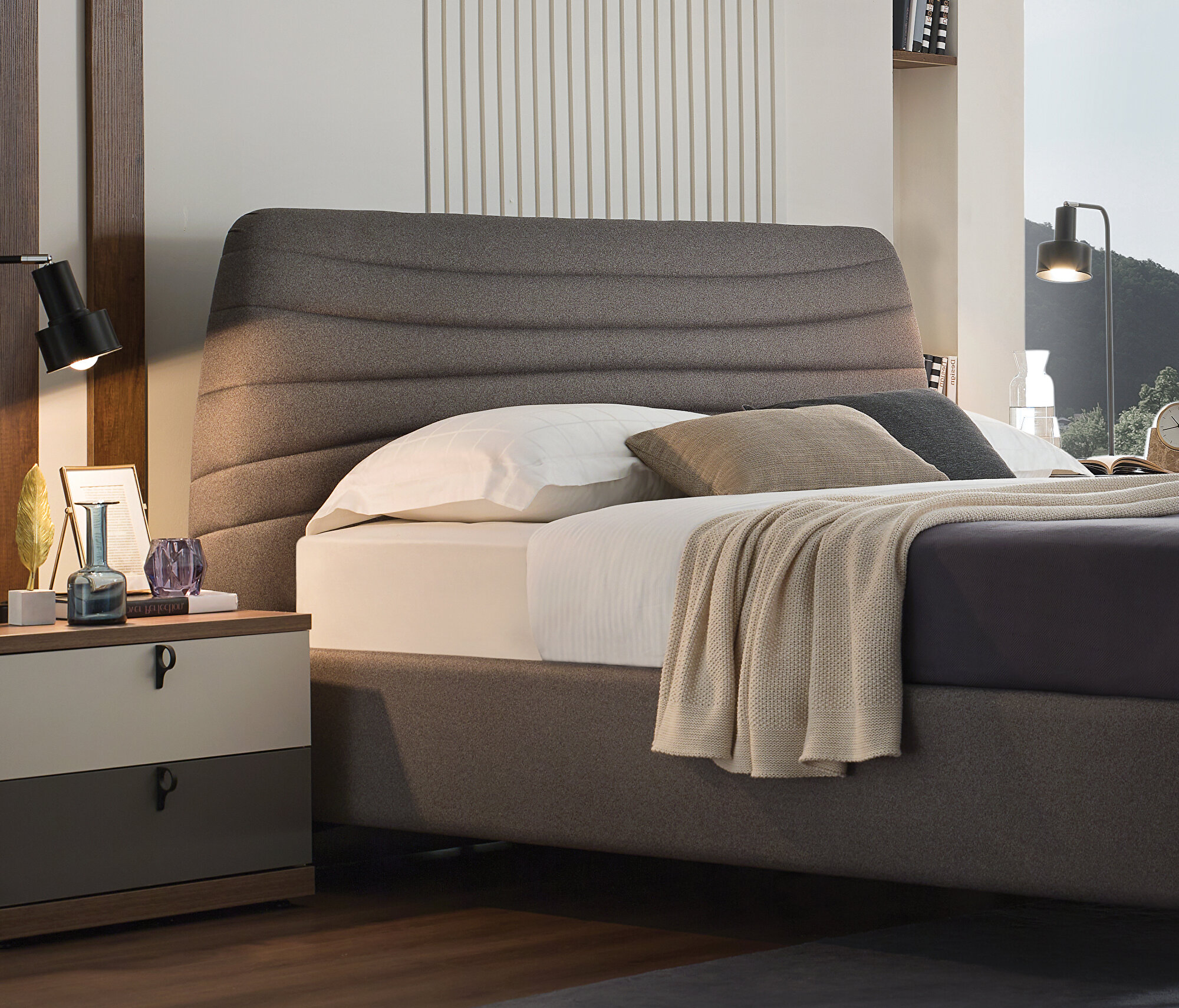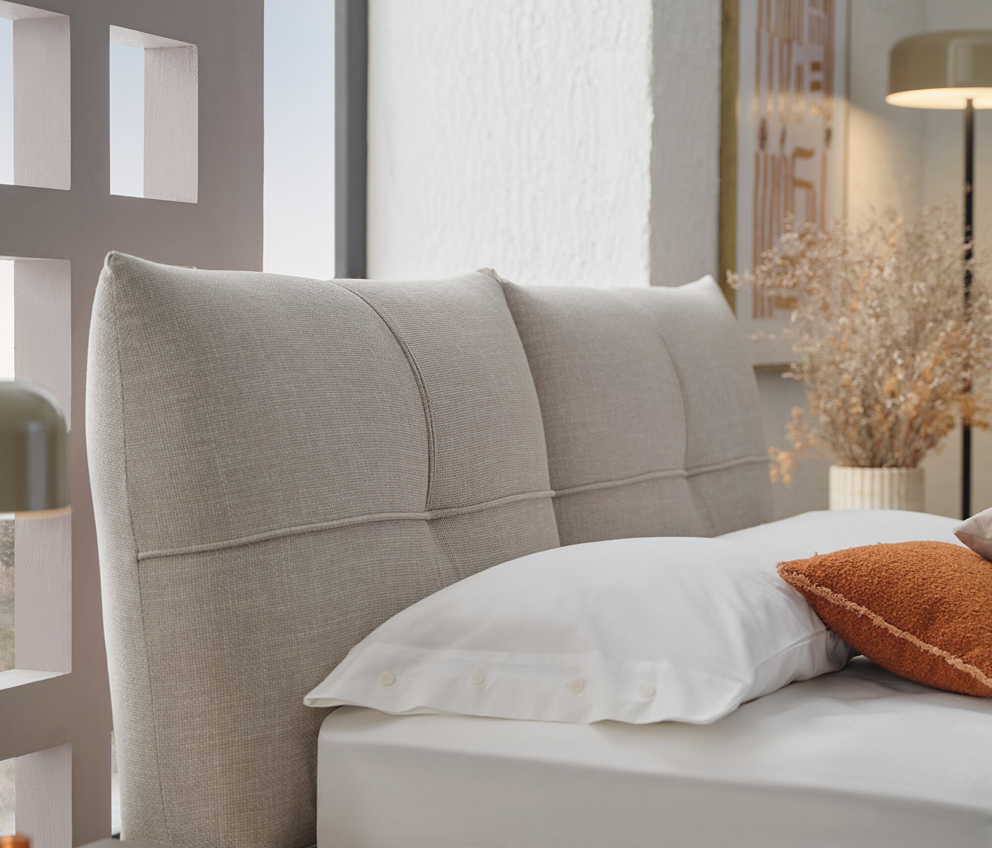Base with Headboard, (200x200 cm), 55901 Light Gray, Texture Fabric