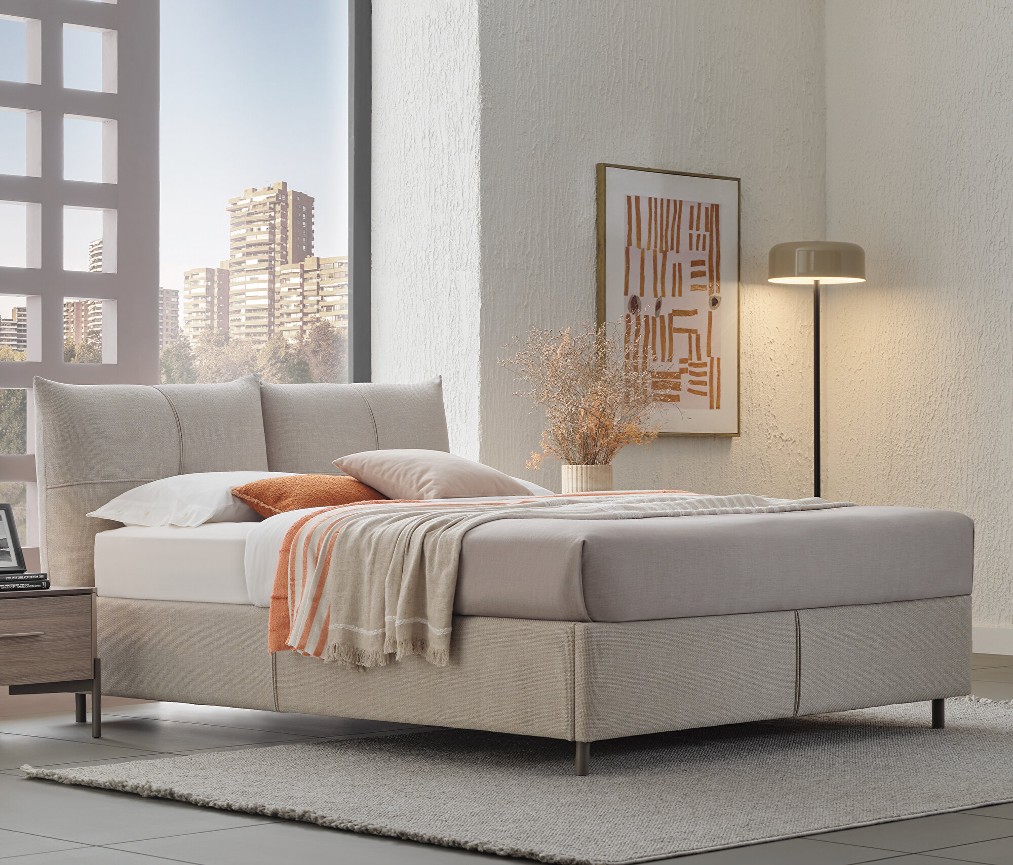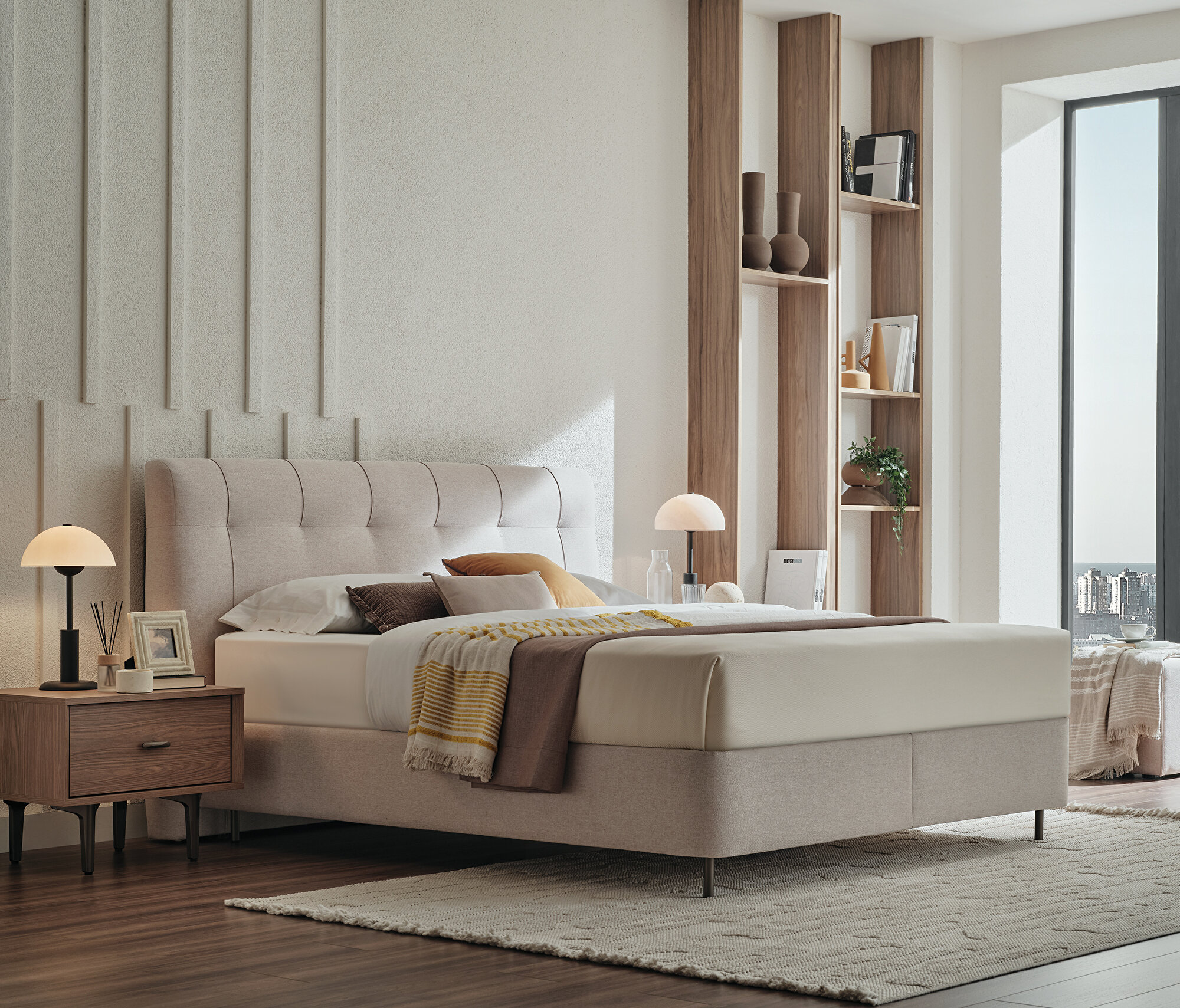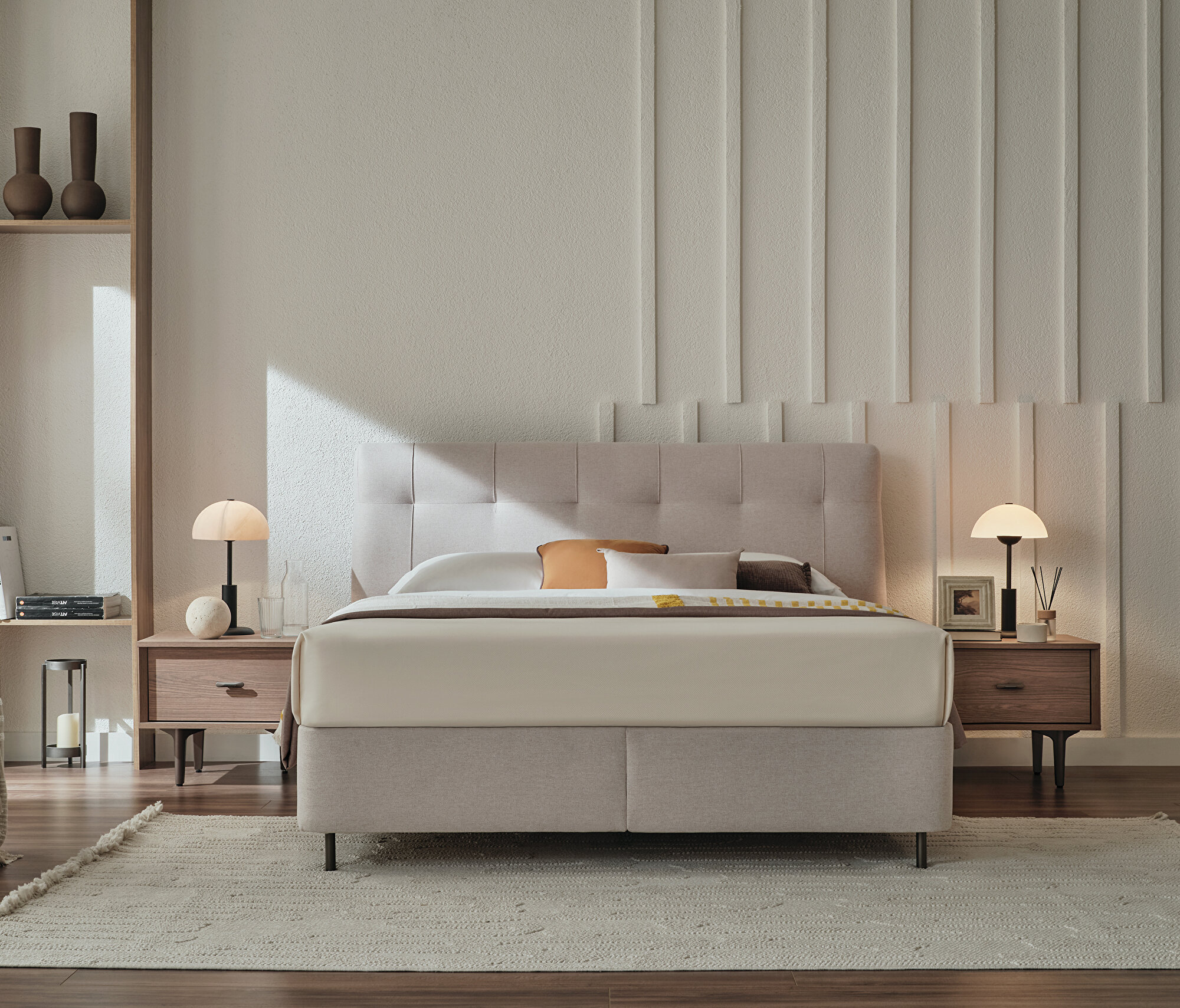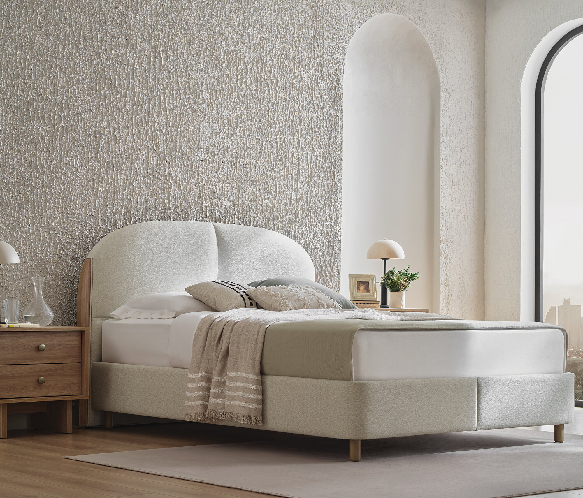 Base with Headboard, (200x200 cm), 17601 Beige