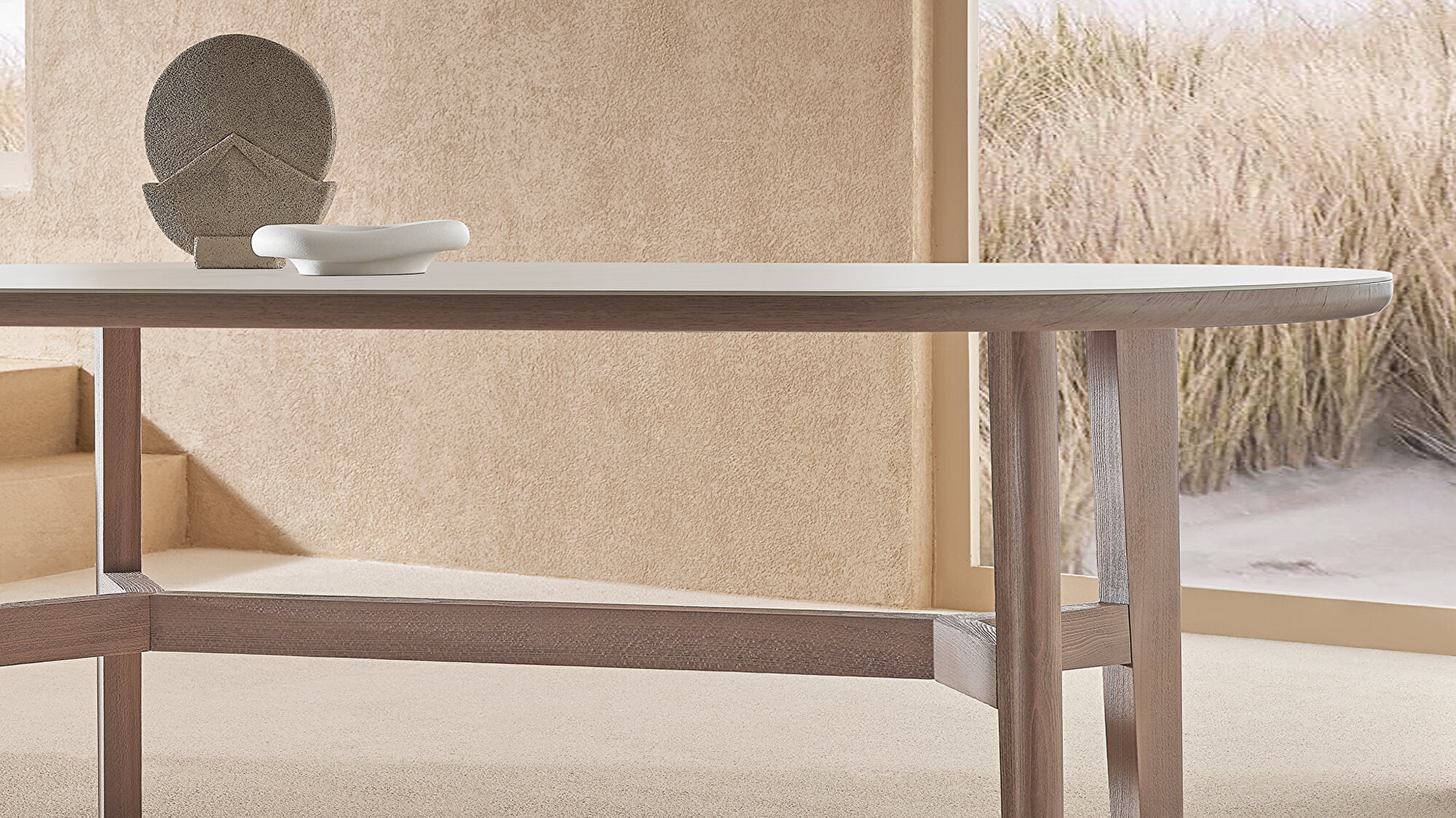BOSTON DINING TABLE reveals a simple design with its oval design. The ashy oak color of the table allows you to create a natural color palette in your living space. In addition, the ceramic application on the upper surface combines with the wooden leg design to achieve a unique harmony. The table, which can be used by six to eight people, offers ideal capacity for crowded meals.