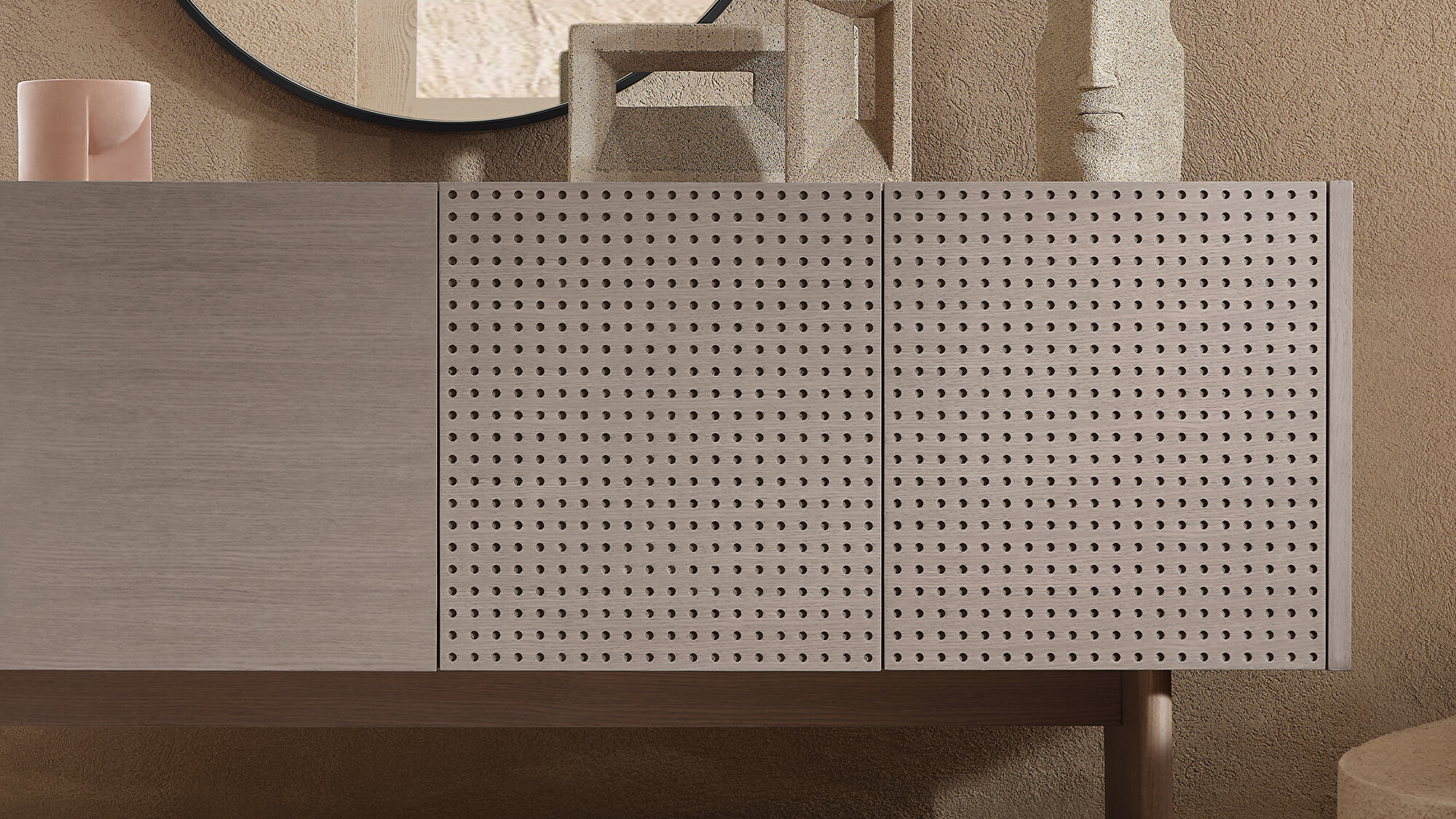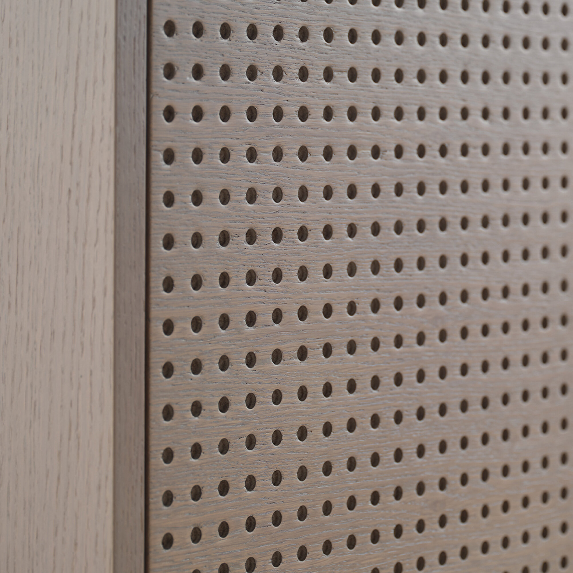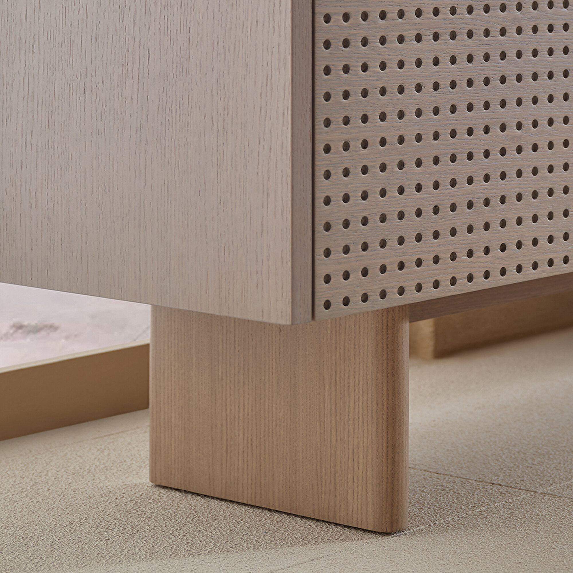 Natural and plain lookSuperior handcraftAsh oak colorOak veneer on natural MDF top surfaceUse of 2 drawers in the consoleDrawer interior partitioning featureProcessing details on console doorsHandleless design application to create a plain effectOak veneer on MDF on the console legUse of a soft-close hinge and rail system