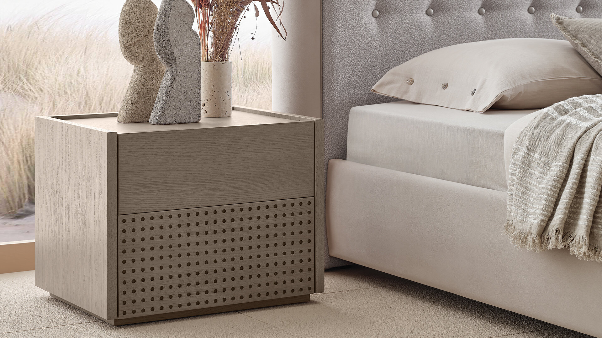 Practical Use BOSTON NIGHTSTAND also stands out with its practical usage details. The NIGHTSTAND, which has two drawers, gives the user extra storage space.
