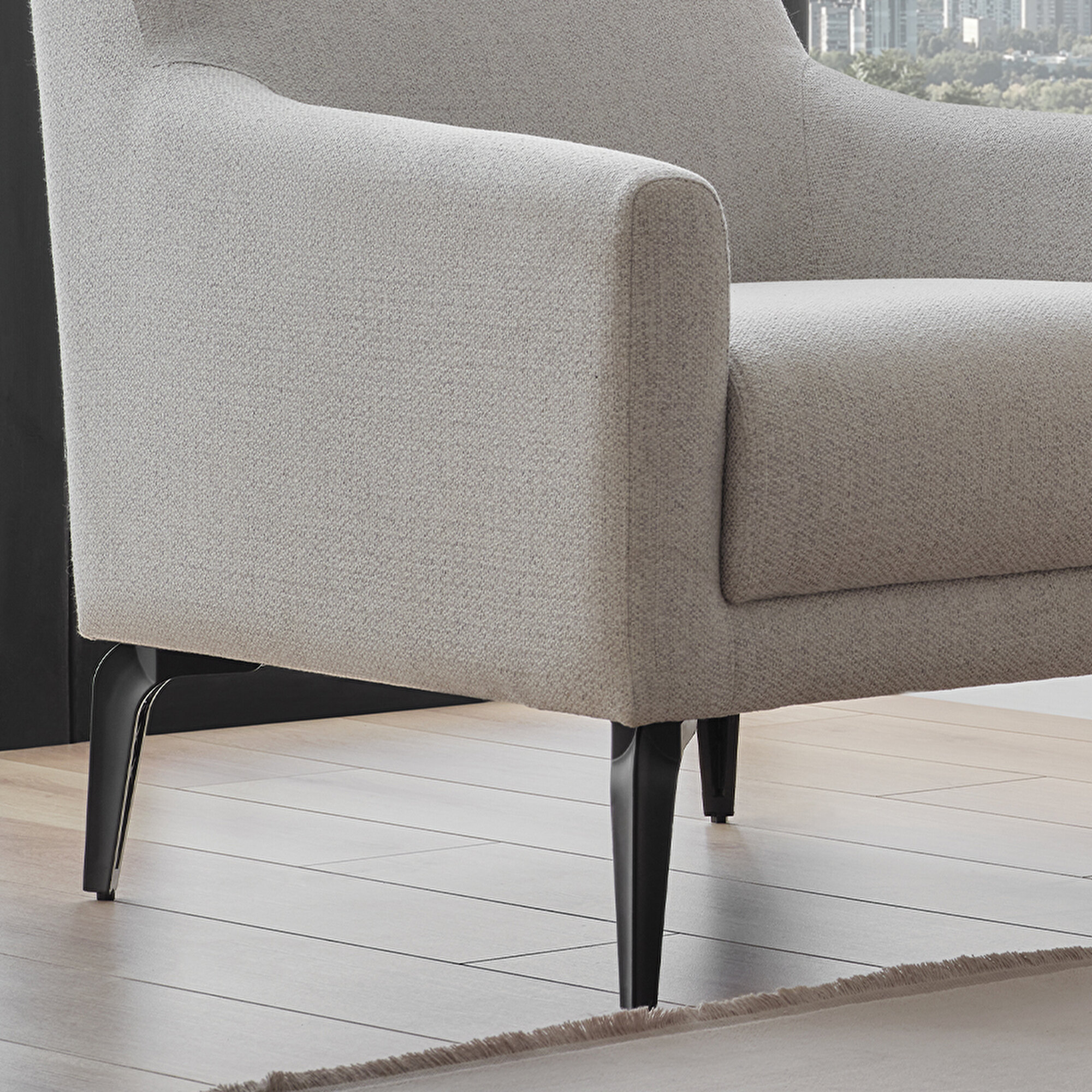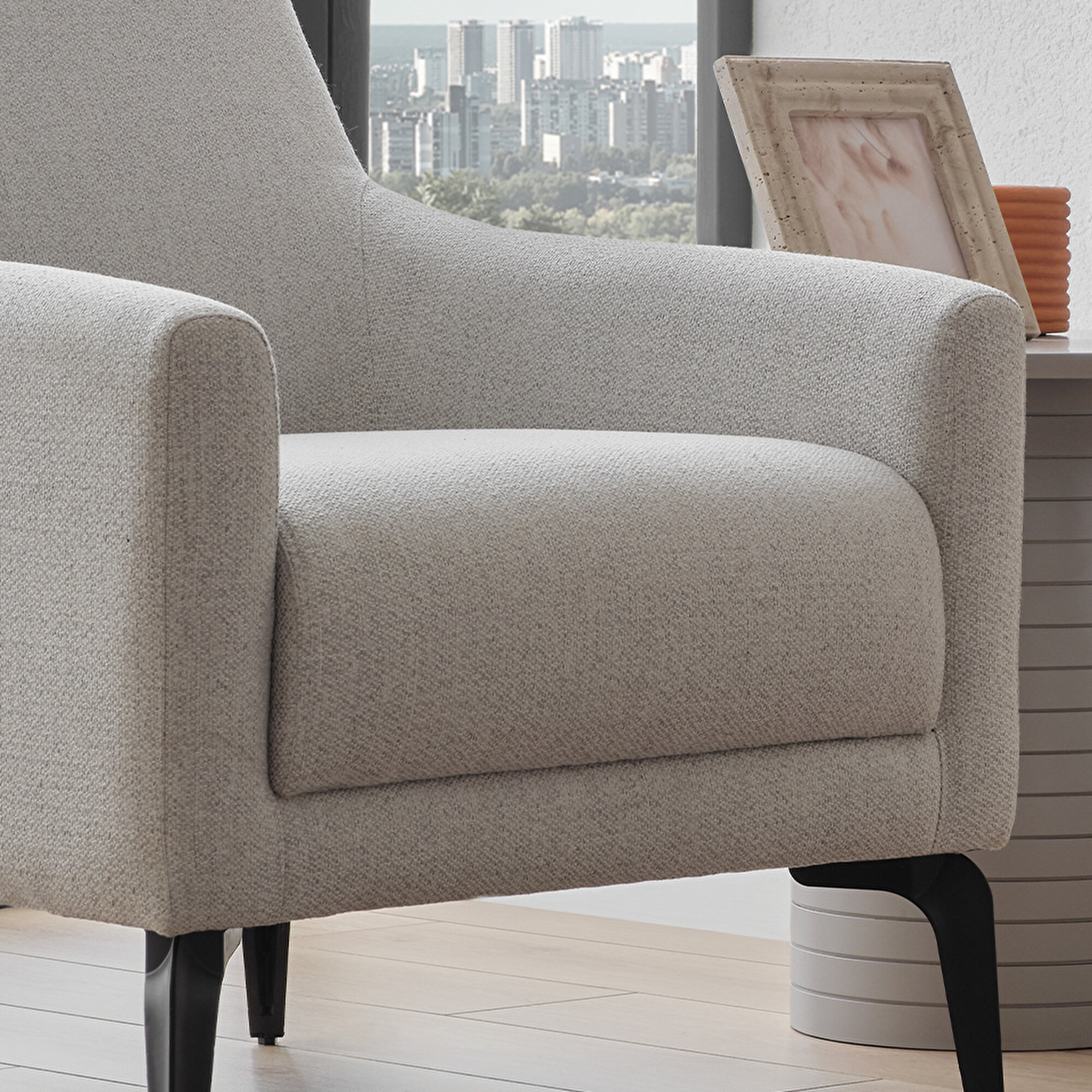 CANTE ARMCHAIR brings both comfort and elegance to your living spaces. Its 19 cm height from the ground is suitable for robot vacuum cleaner use, as well as increasing elegance with its modern lines. While it offers easy cleaning thanks to its wipeable fabric, it provides long-term sitting comfort with its 32 Dn Soft + 24 Dn Soft foam. It also adds sophistication with its high legs. CANTE ARMCHAIR offers comfort and elegance together.