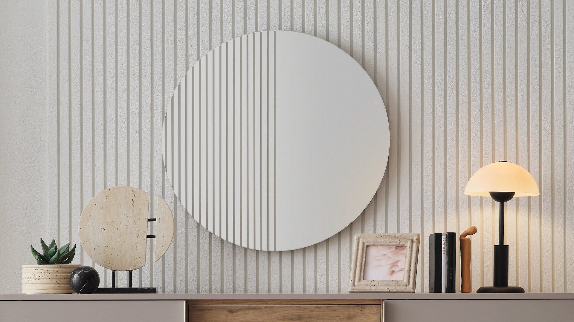 The Elegant Posture of the Round Form While the CANTE Sideboard-CHEST of DRAWERS MIRROR adds a soft aesthetic to the space with its round form structure, it creates a modern and natural atmosphere. The rounded form avoids sharp lines, offering a more balanced and elegant appearance.