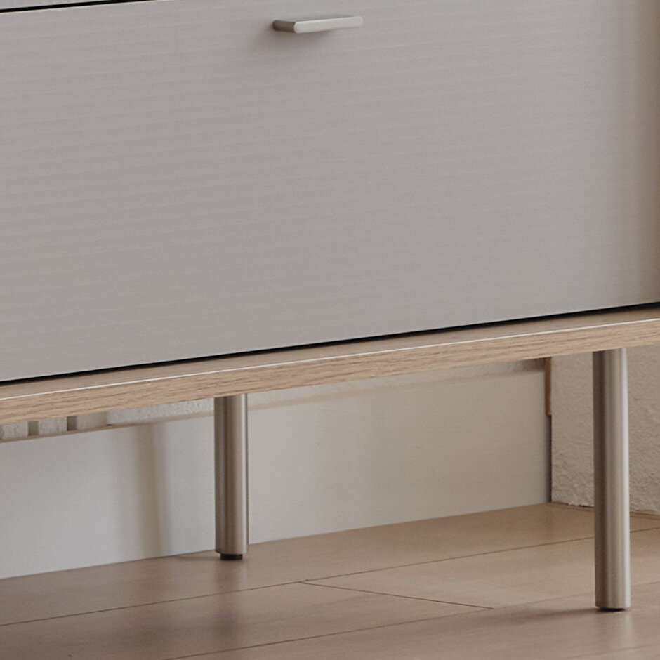 CANTE TV STAND, which will add an elegant touch to your modern living spaces, creates a warm and inviting atmosphere with its natural oak and beige color combination. Its modular structure adapts to any space, while it perfectly combines aesthetics and functionality with its special striped texture applications and stylish drawers. The inox metal handle and leg design offers an elegant integrity with modern lines. It transforms your living spaces with both its elegance and practicality.