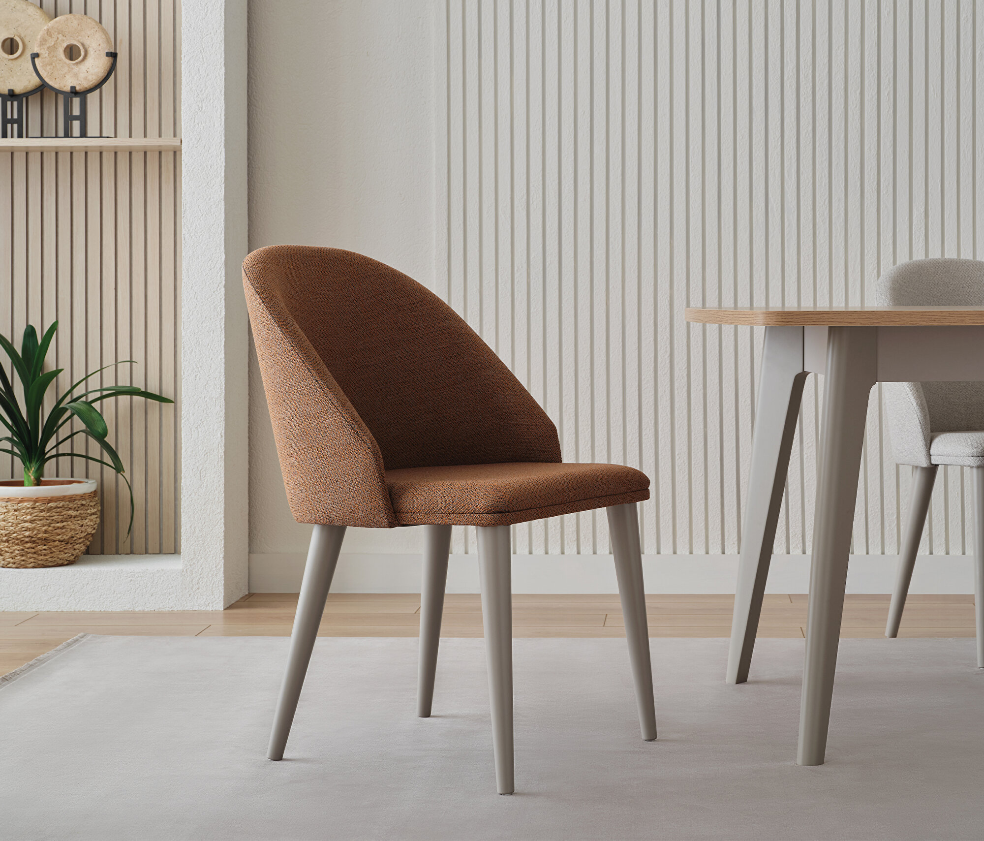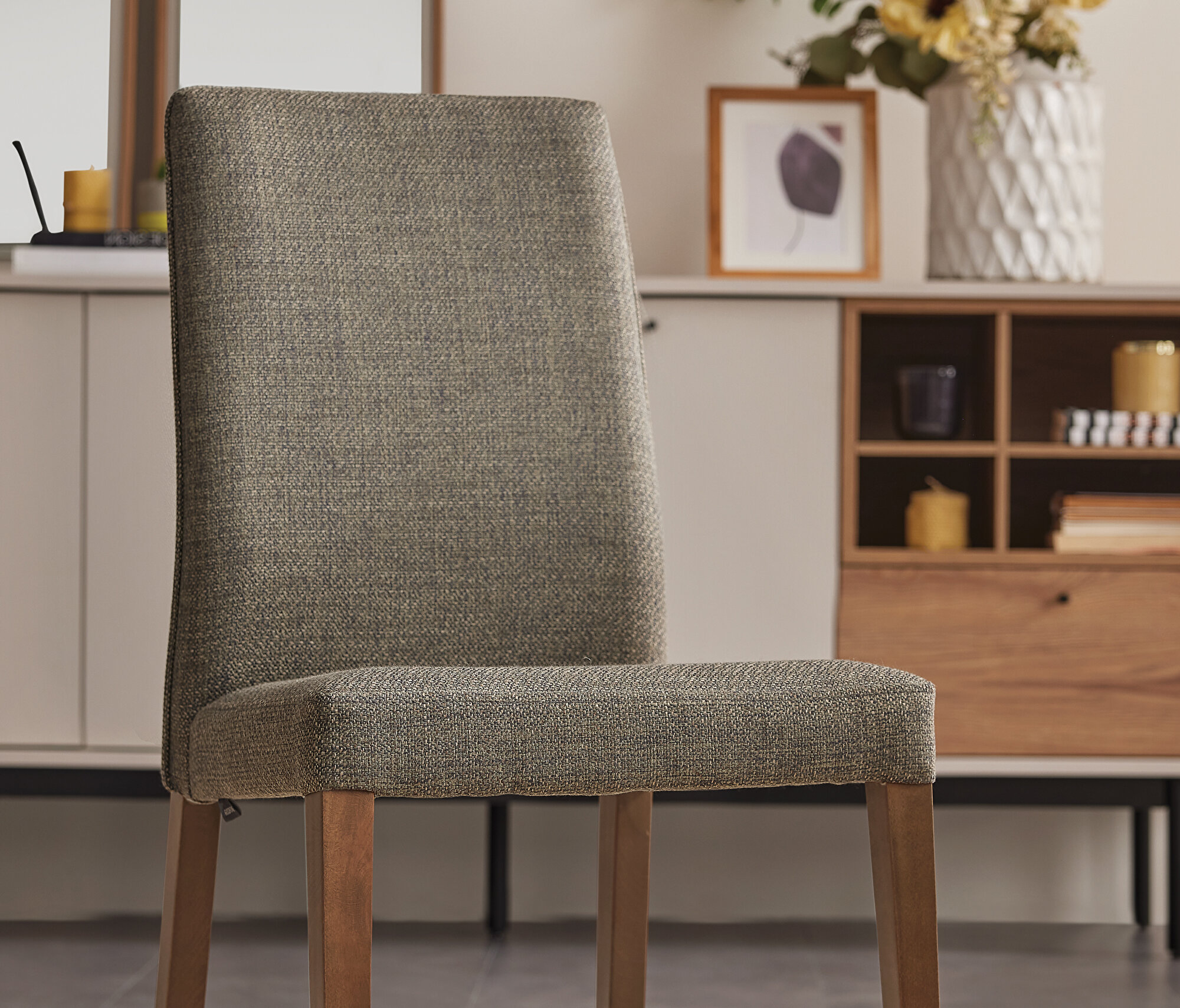 Wooden Leg Chair , Linen Texture Fabric 14211 Brown Green