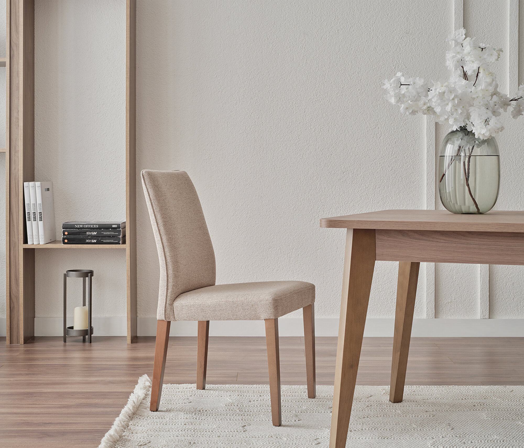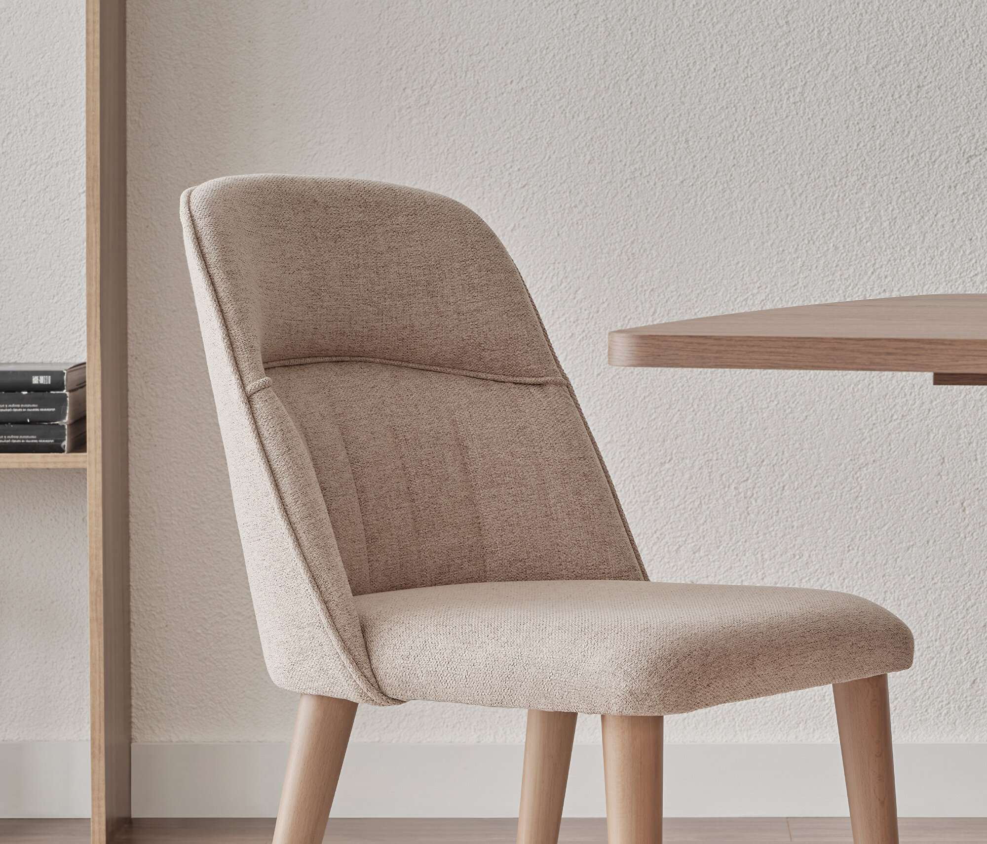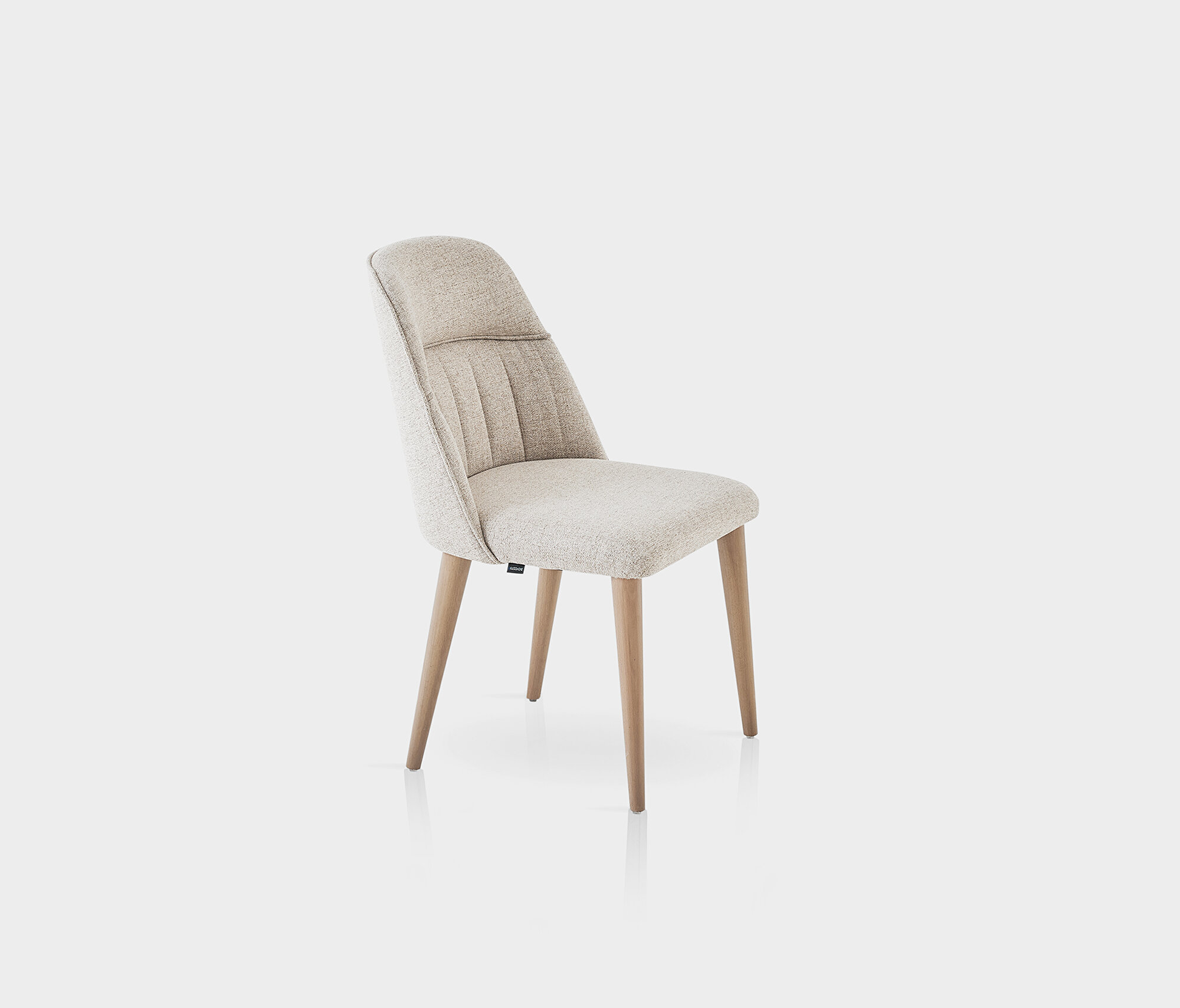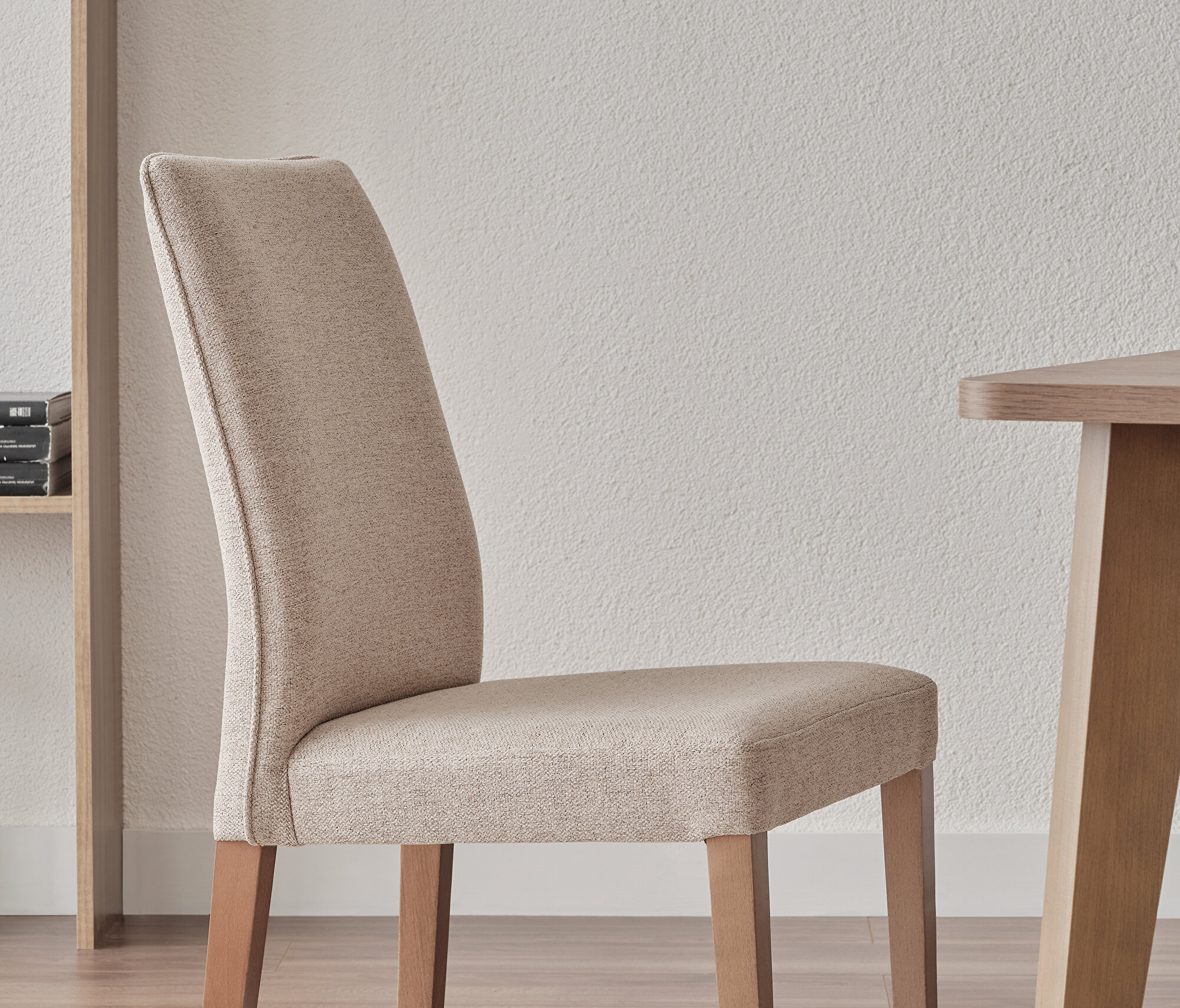 Wooden Legged Chair, Linen Texture, 19501 Beige