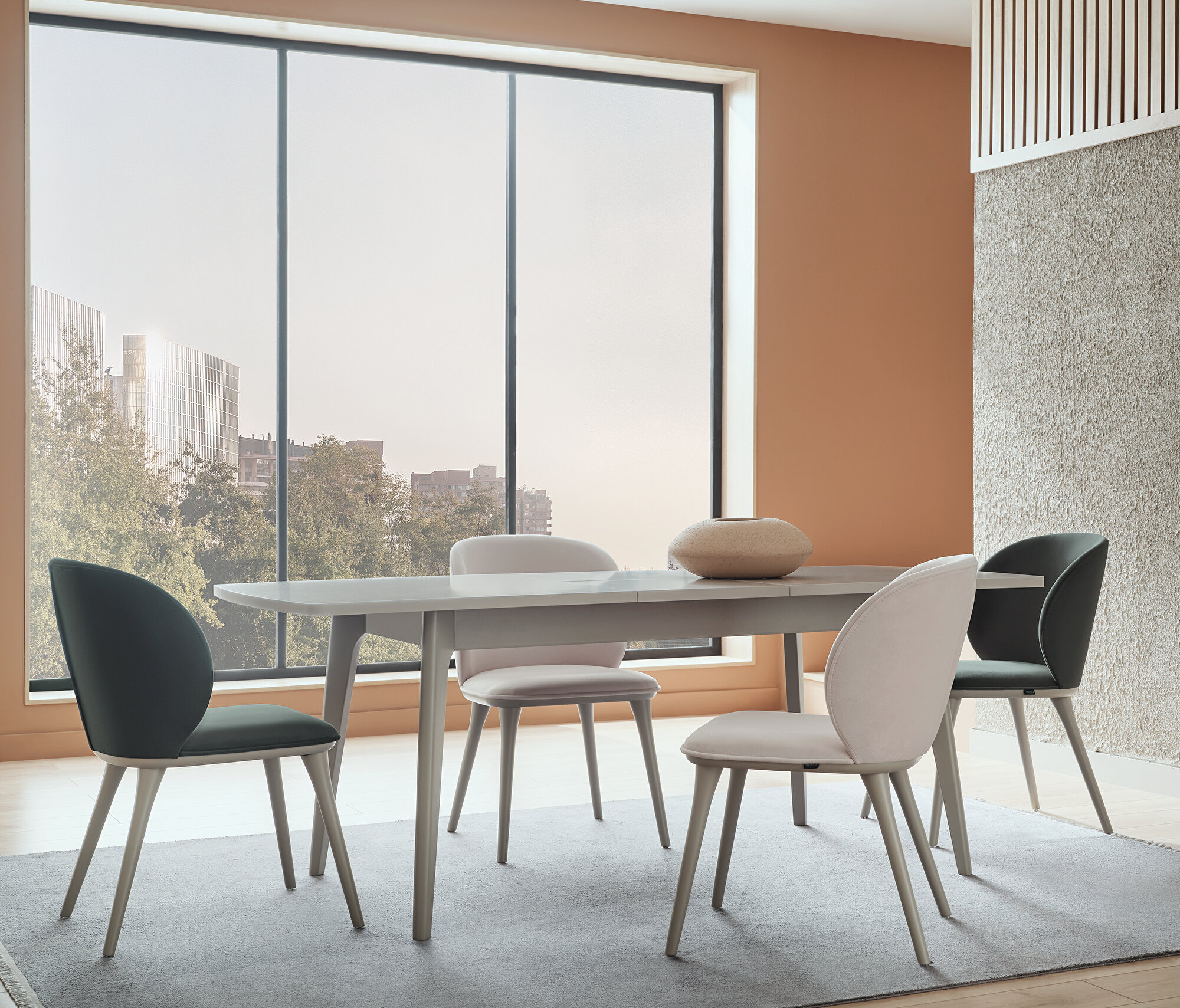 Wooden Leg Chair, Velvet Textured Fabric 19209 Cream