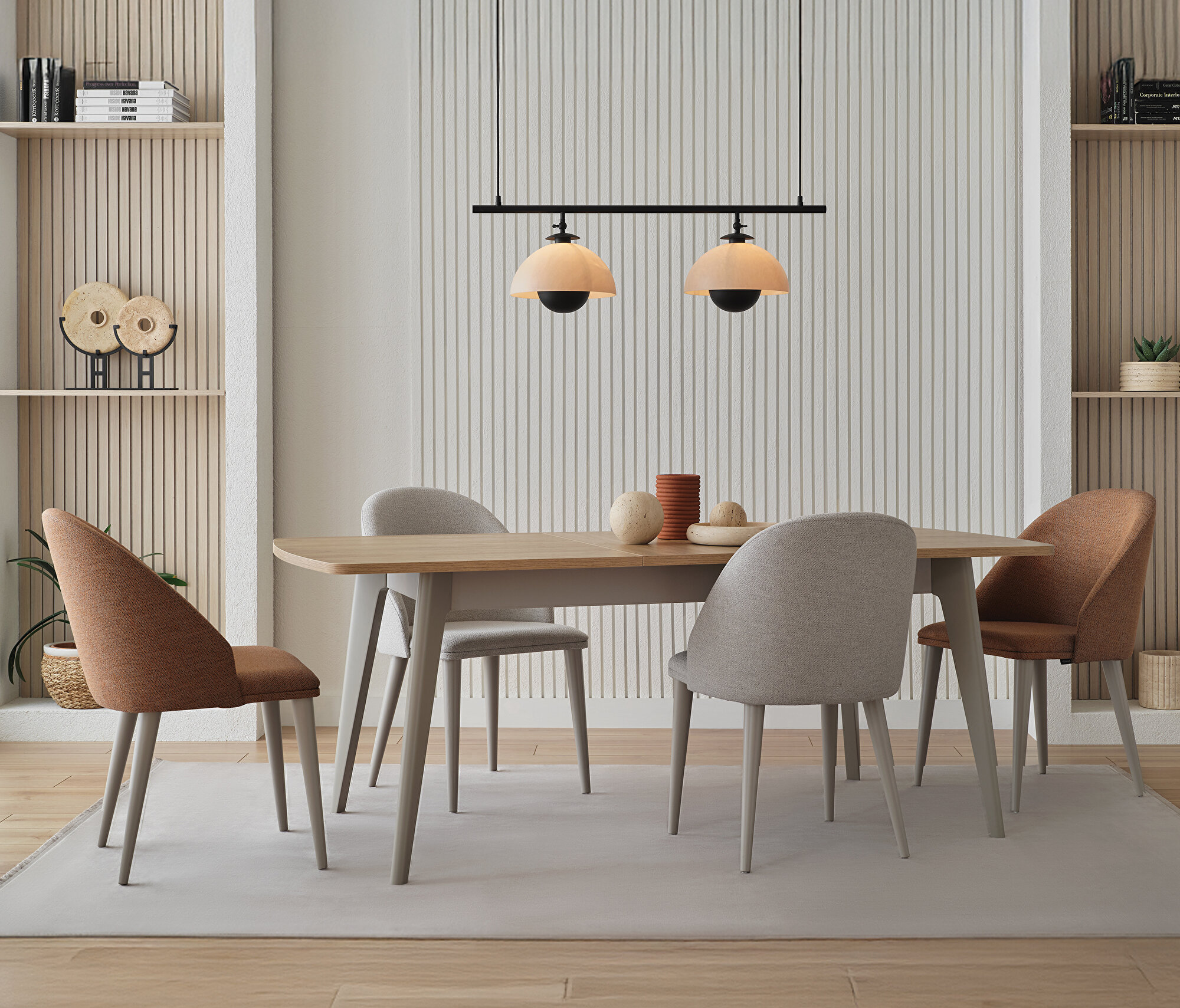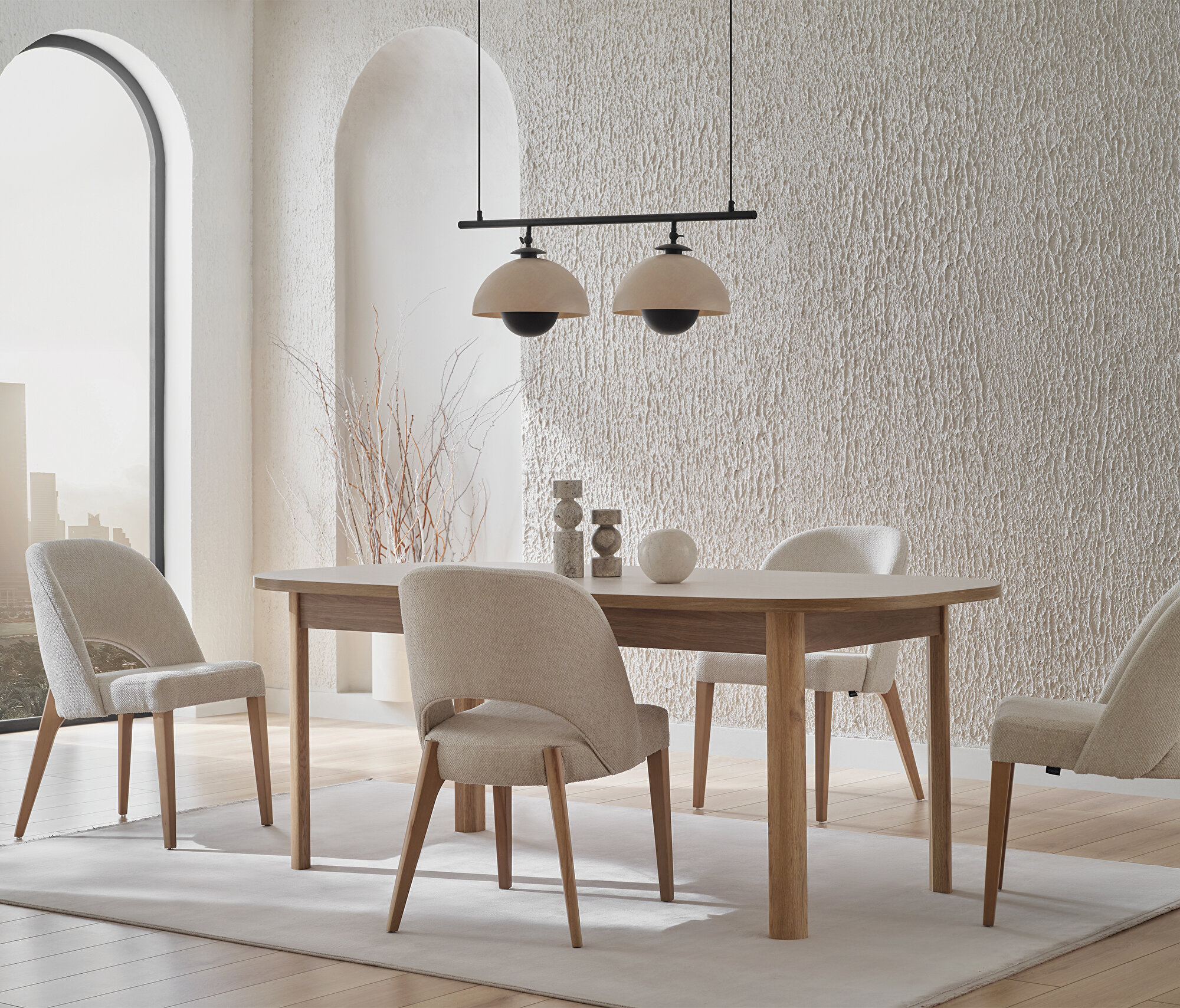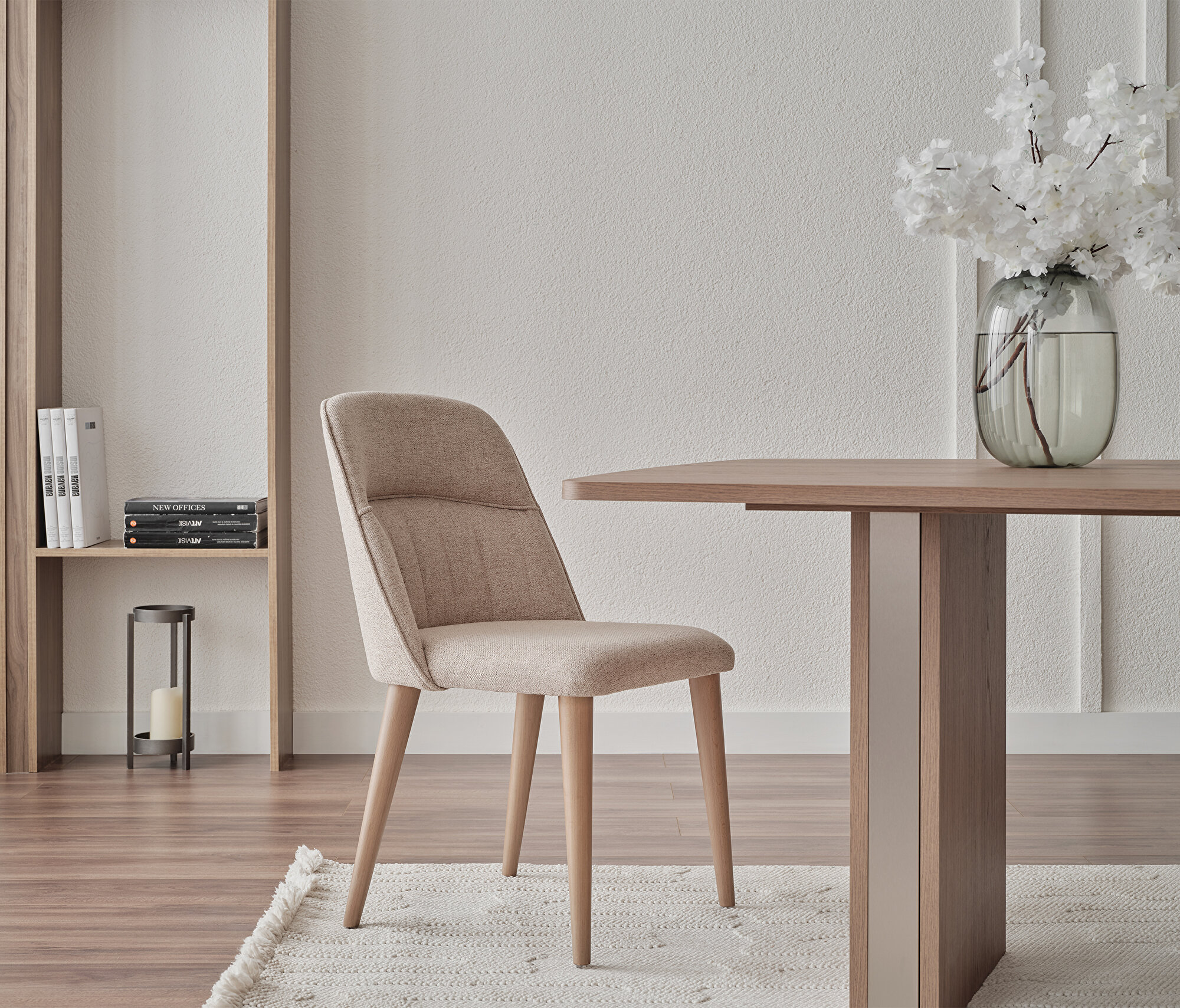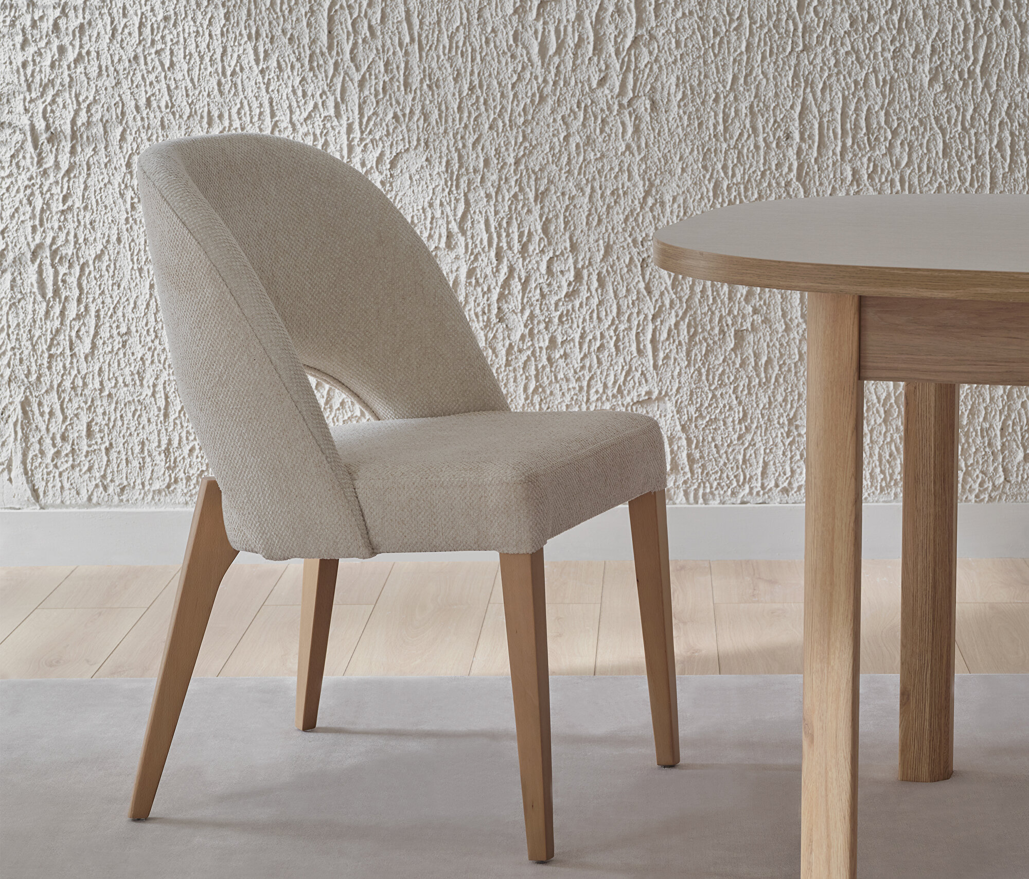 Wooden Leg Chair, Woven Fabric 14207 Cream