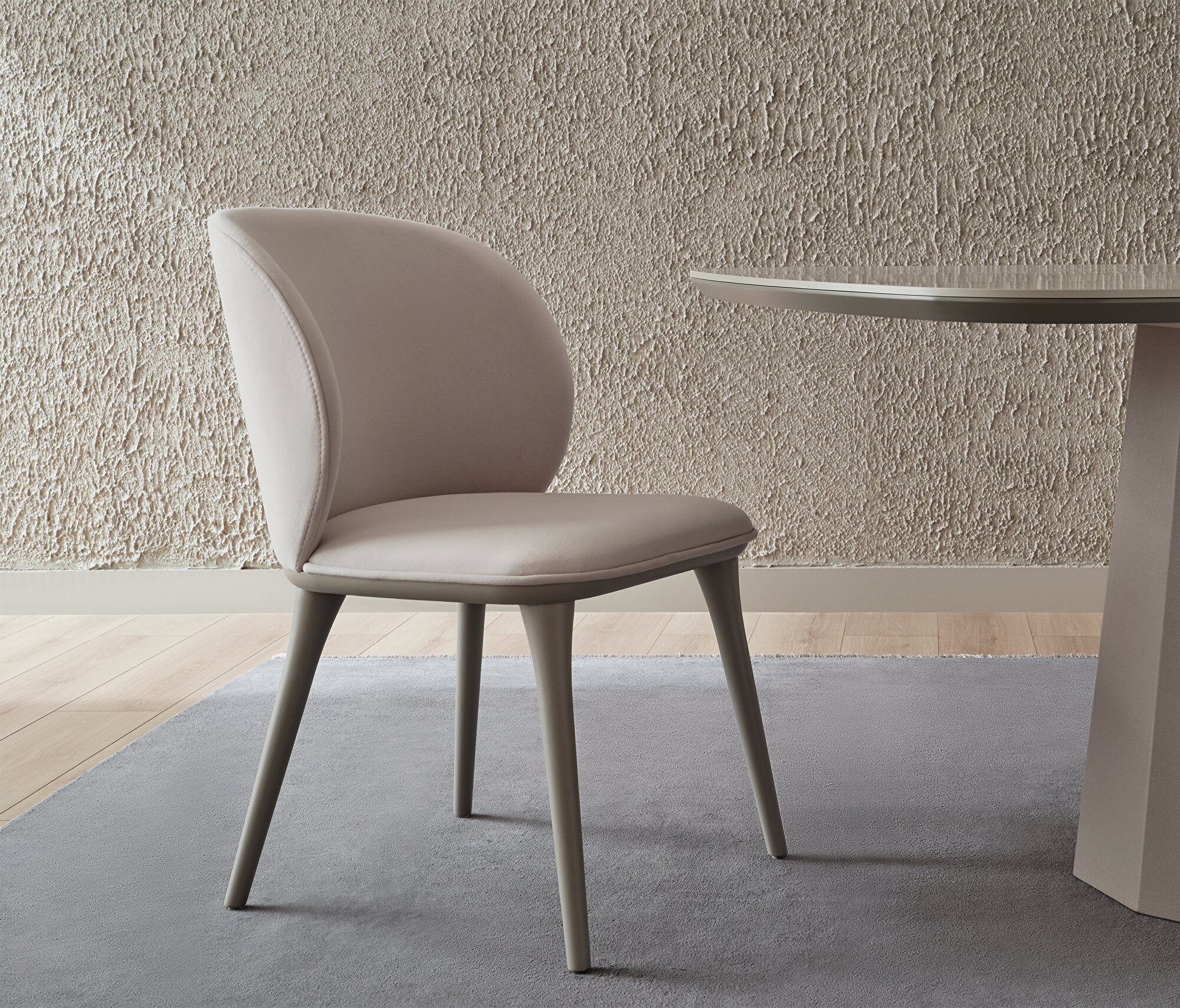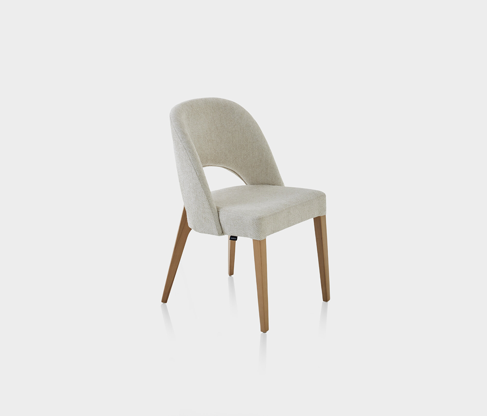 Wooden Legged Chair, Chenille Fabric, 17601 Beige