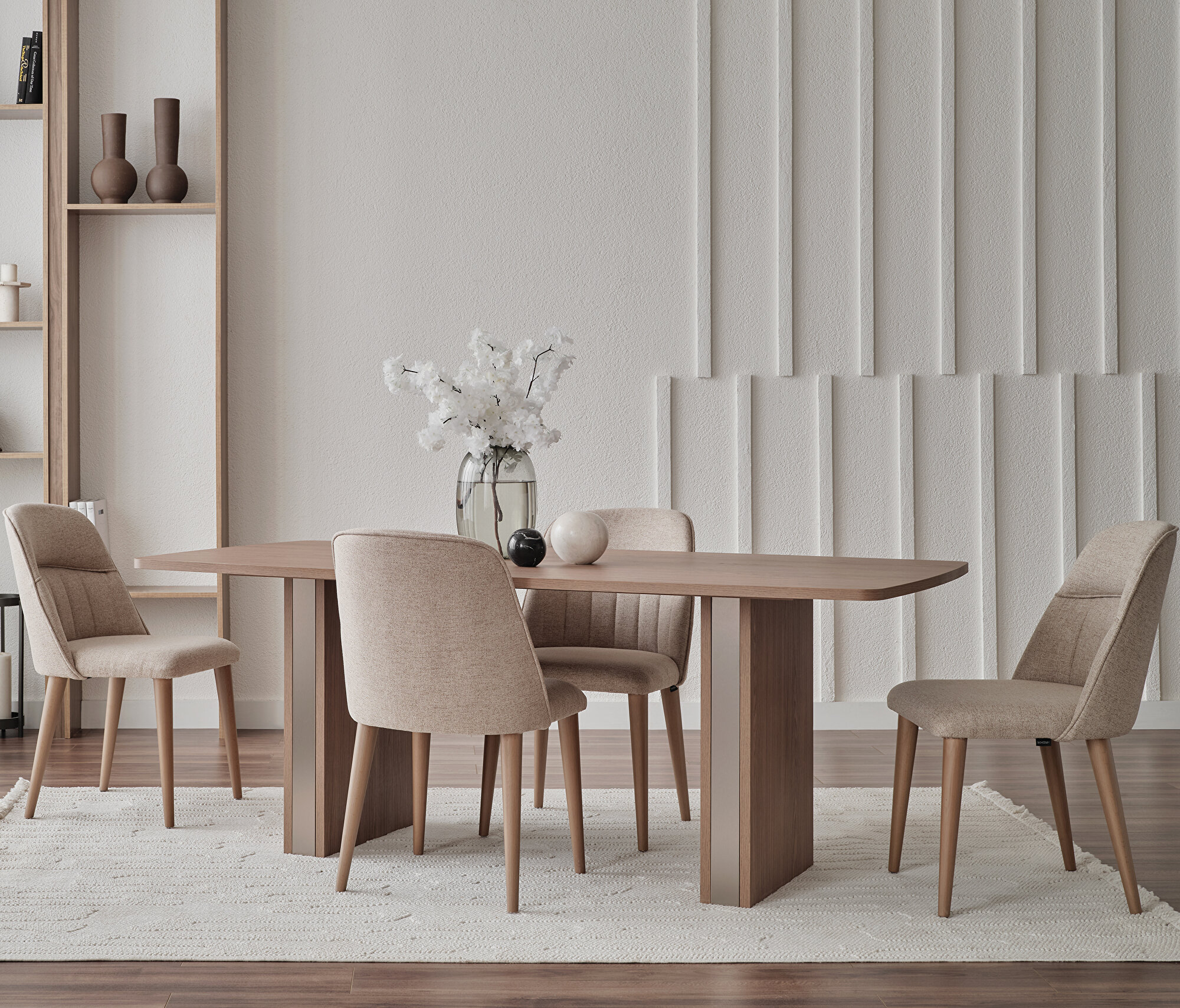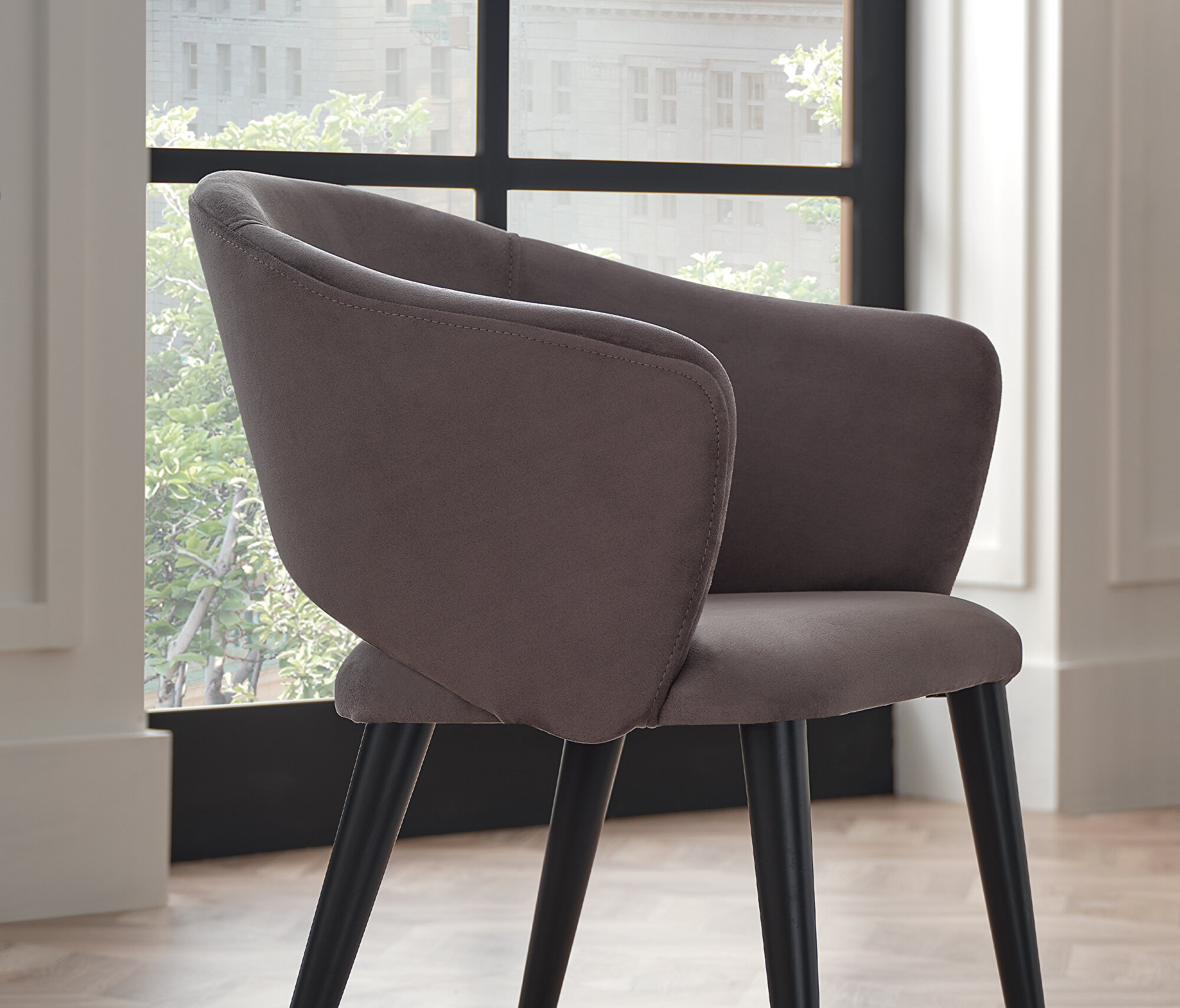 Wooden Leg Chair, Velvet Textured Fabric 14802 Khaki