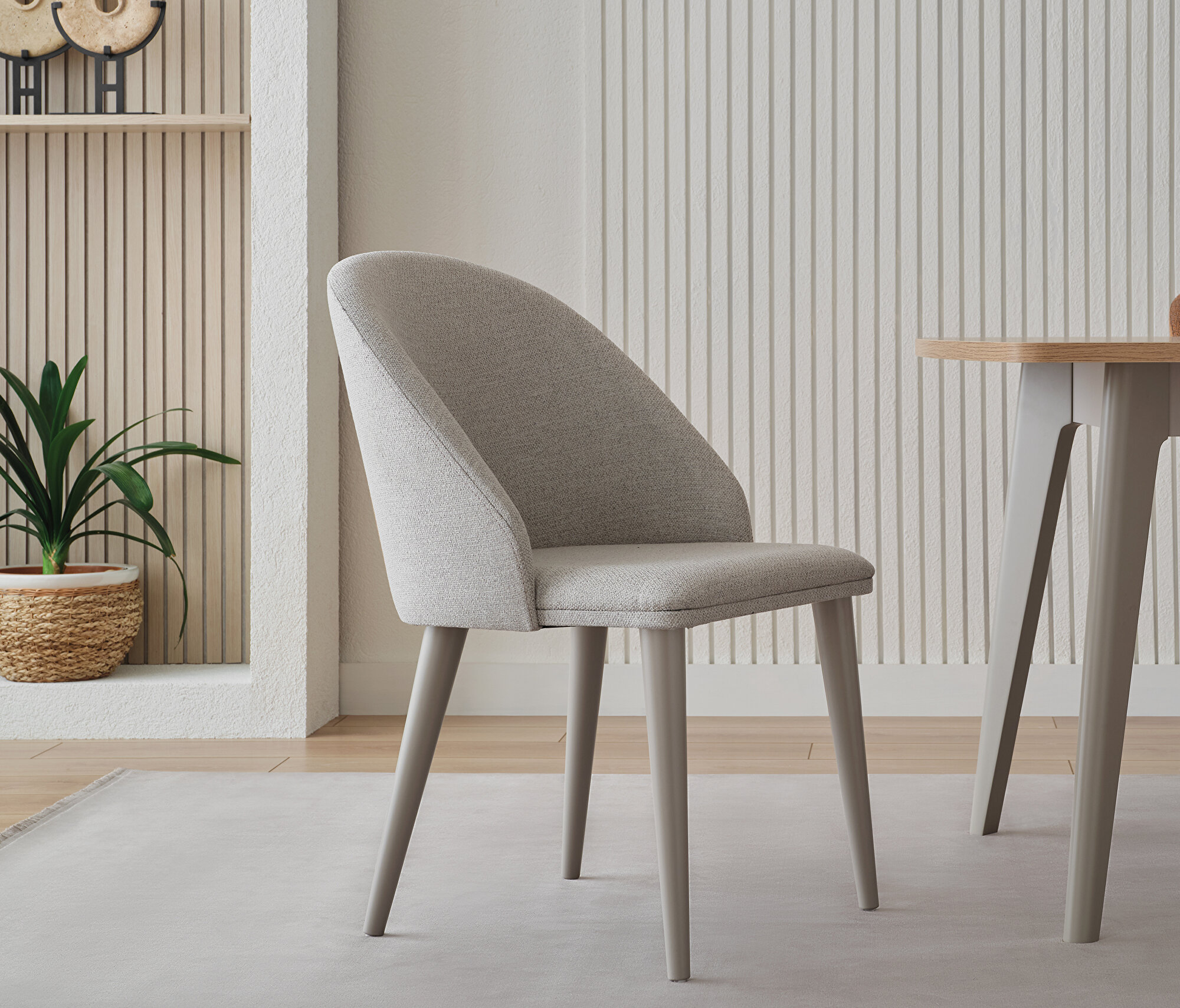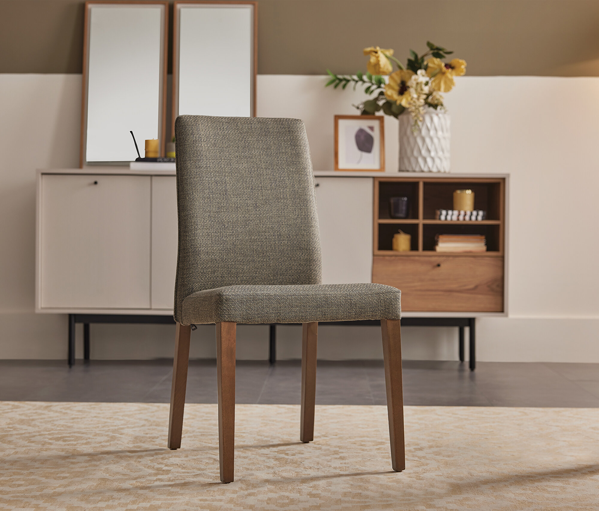 Wooden Leg Chair, Linen Texture Fabric 13009 Gray