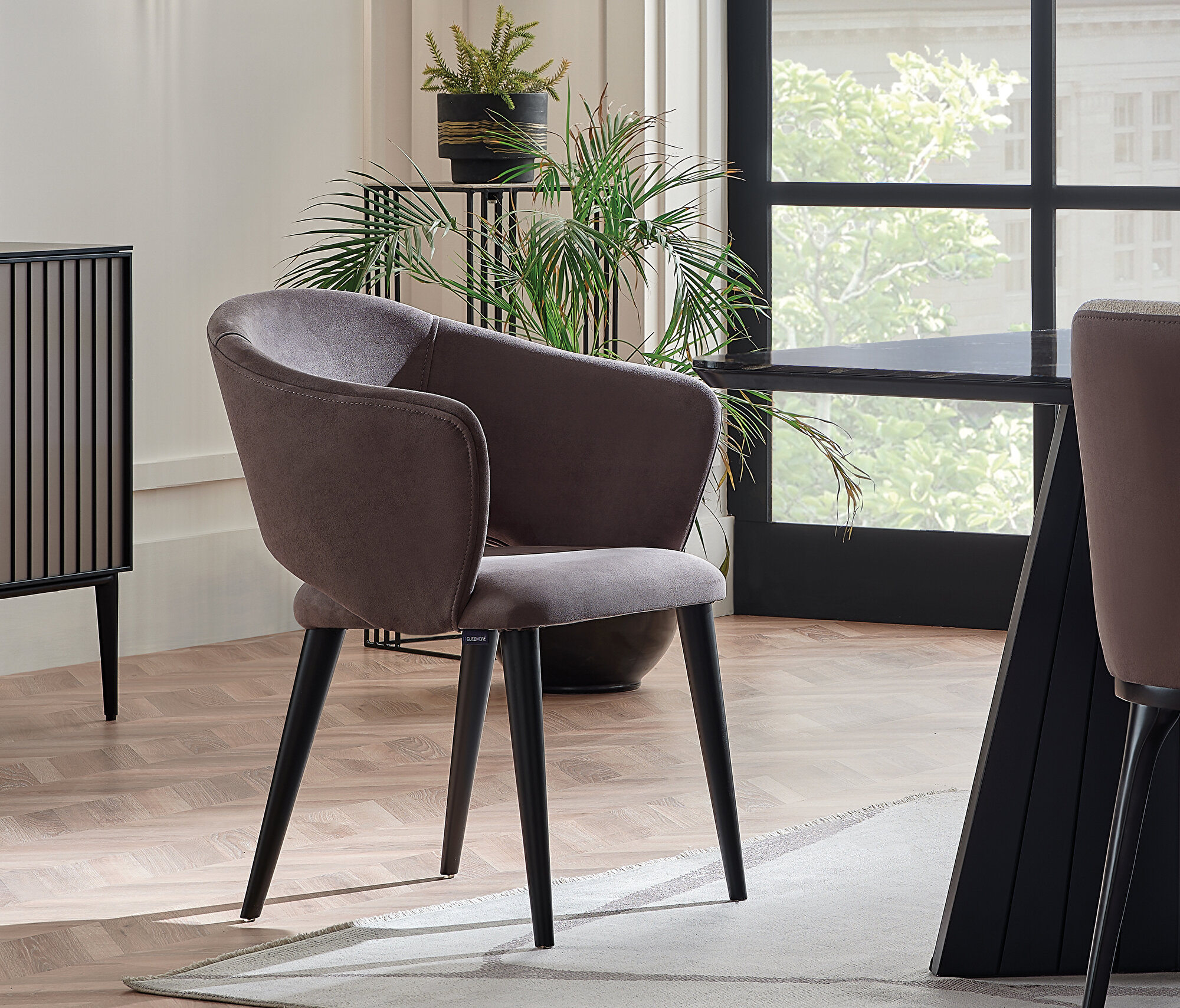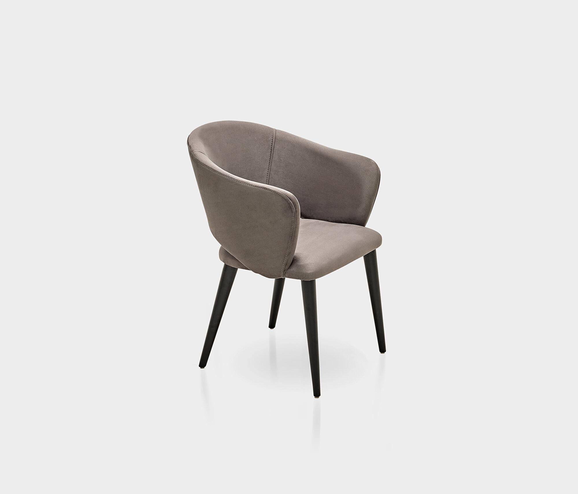 Chair with Wooden Legs with Armrests, Suede Texture Fabric 52301 Gray