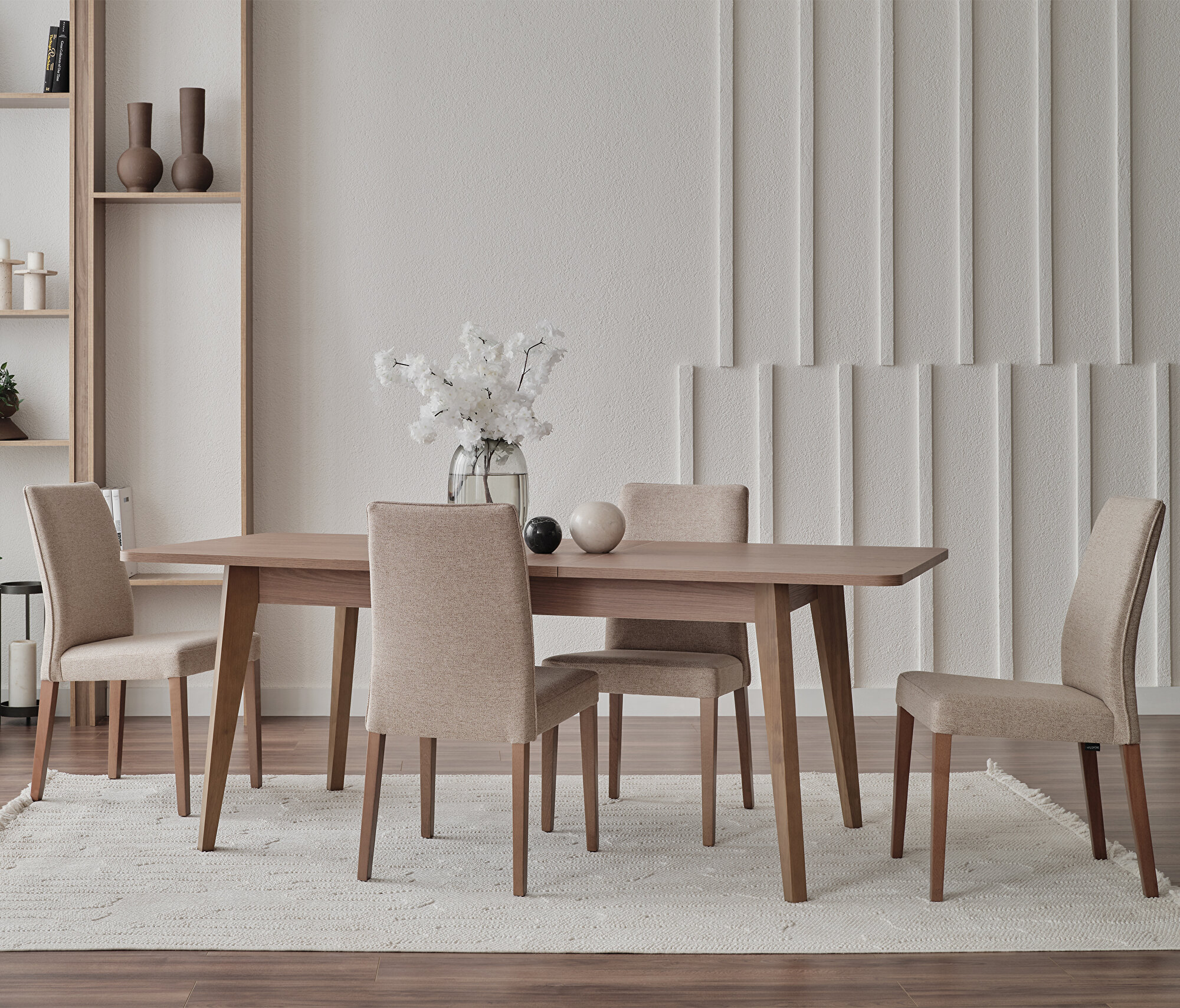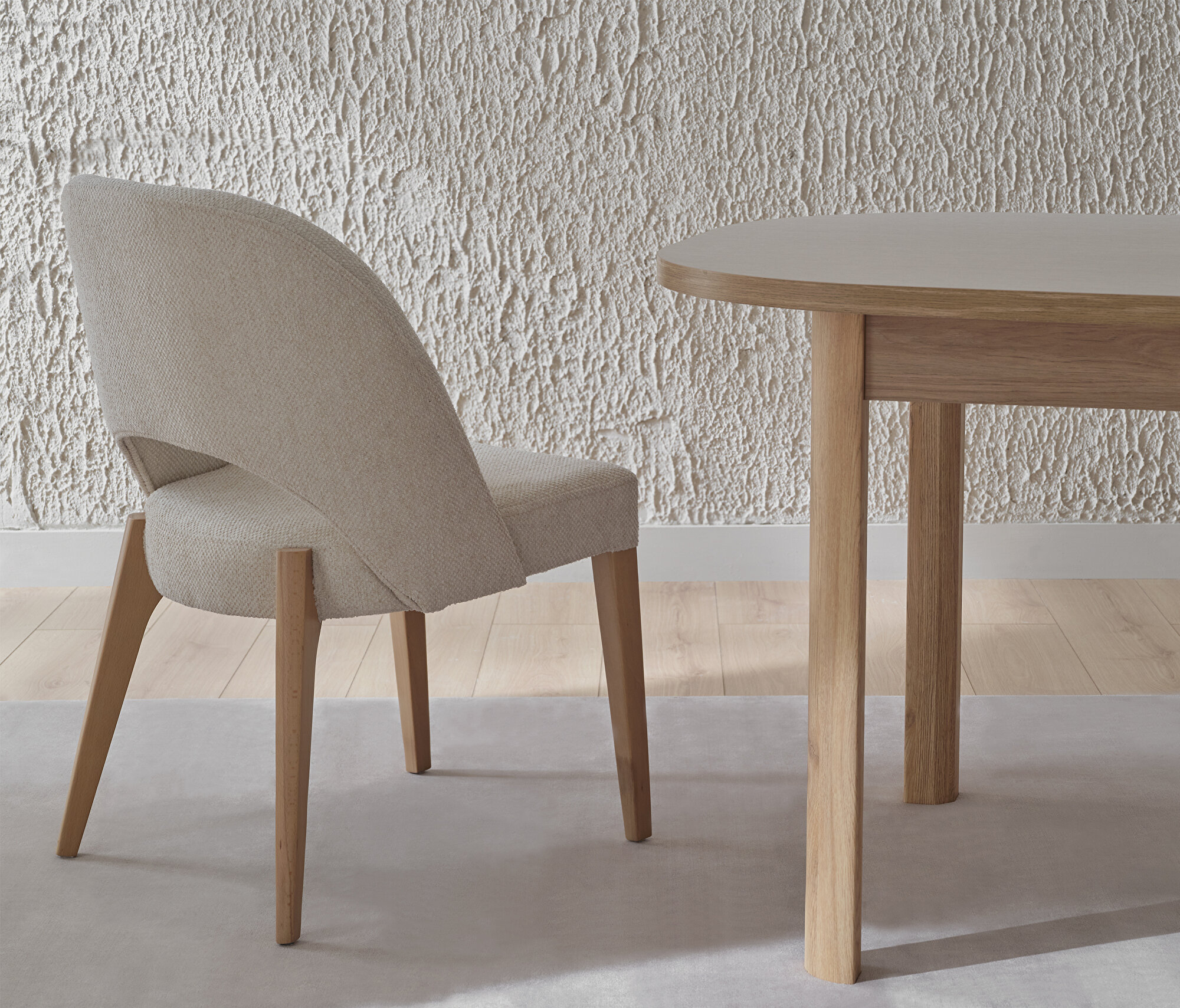 Wooden Leg Chair, Woven Fabric, 55705 Sand