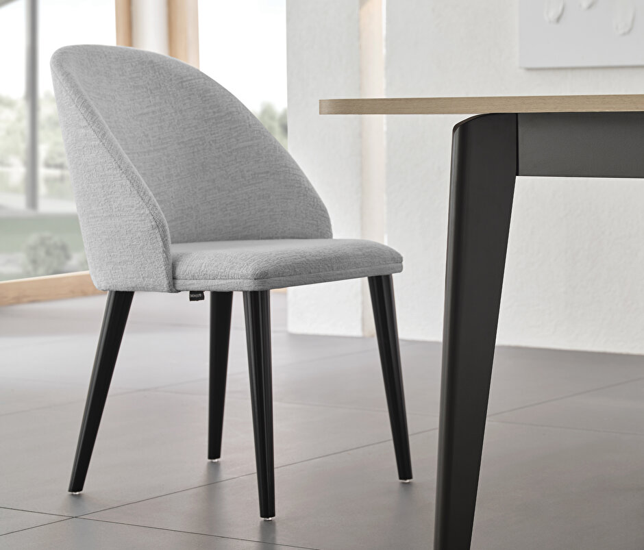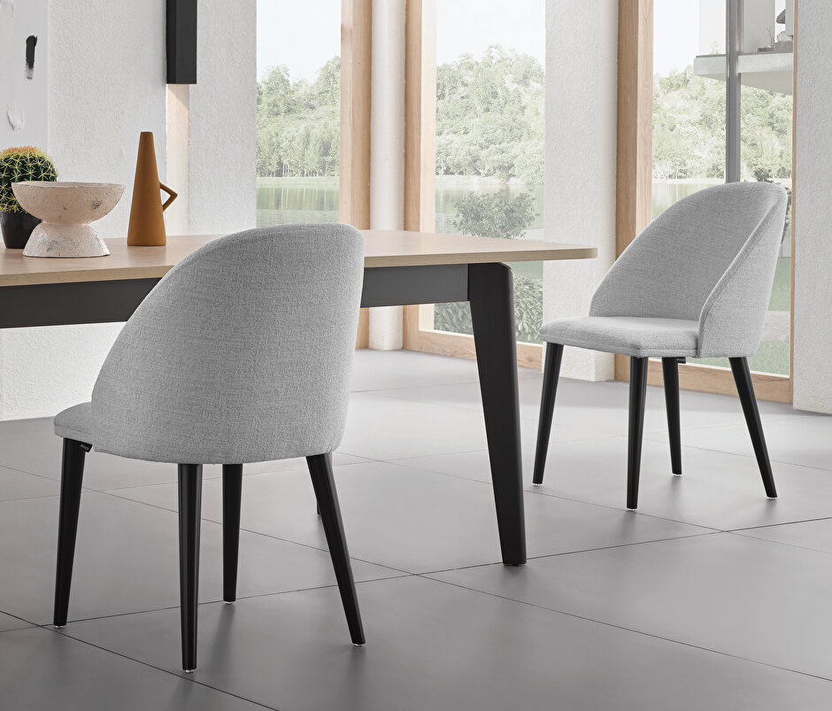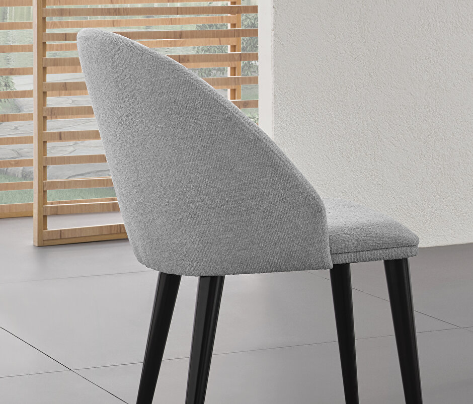 Wooden Leg Chair, Chenille Fabric 16008 Grey