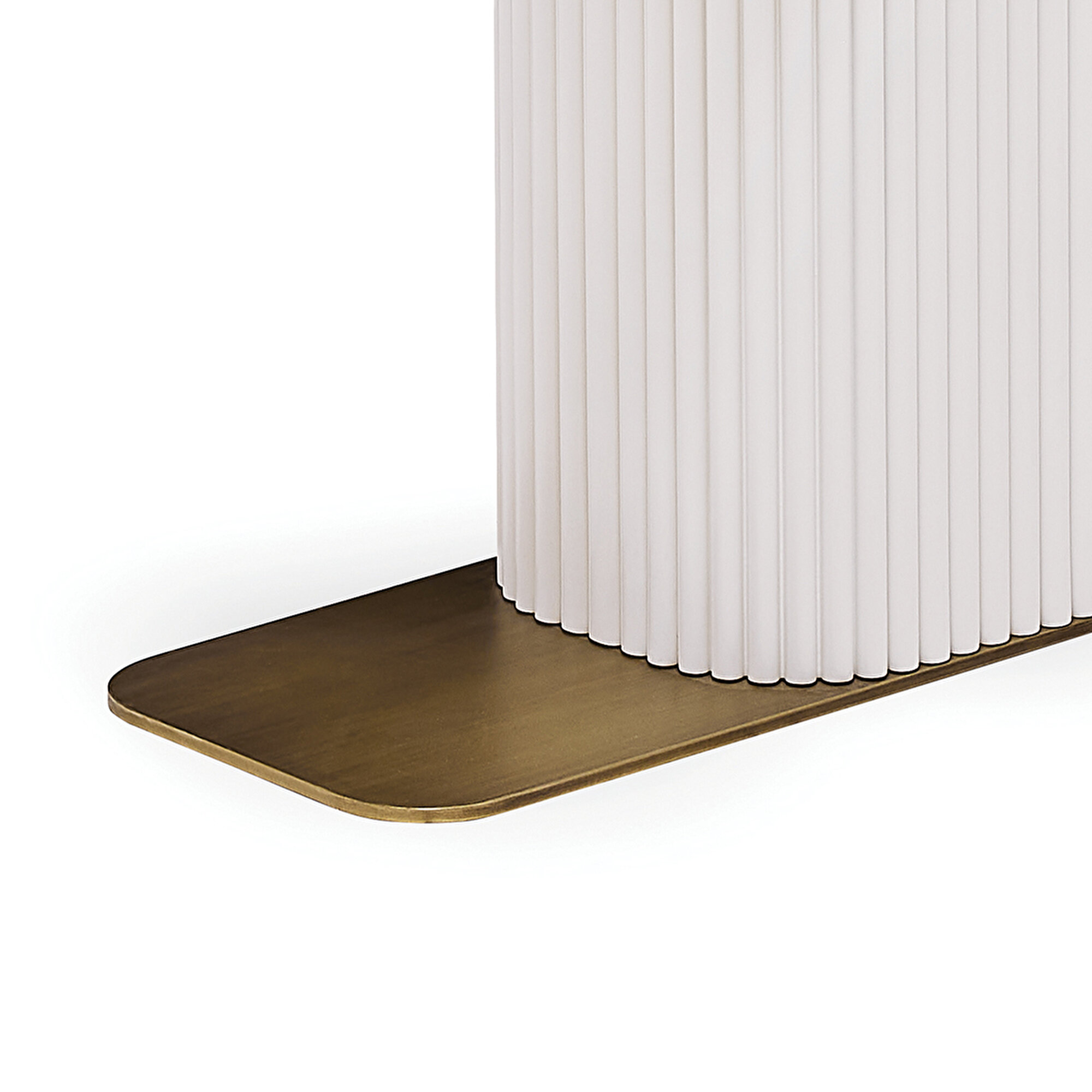 Combining modern design style with sophisticated details, the DALLAS C SIDE TABLE adds an impressive elegance to the decoration with its marble or ceramic top table alternatives. While it enriches its design stylishly with its aged gold legs, it creates efficient usage areas thanks to its rectangular form.