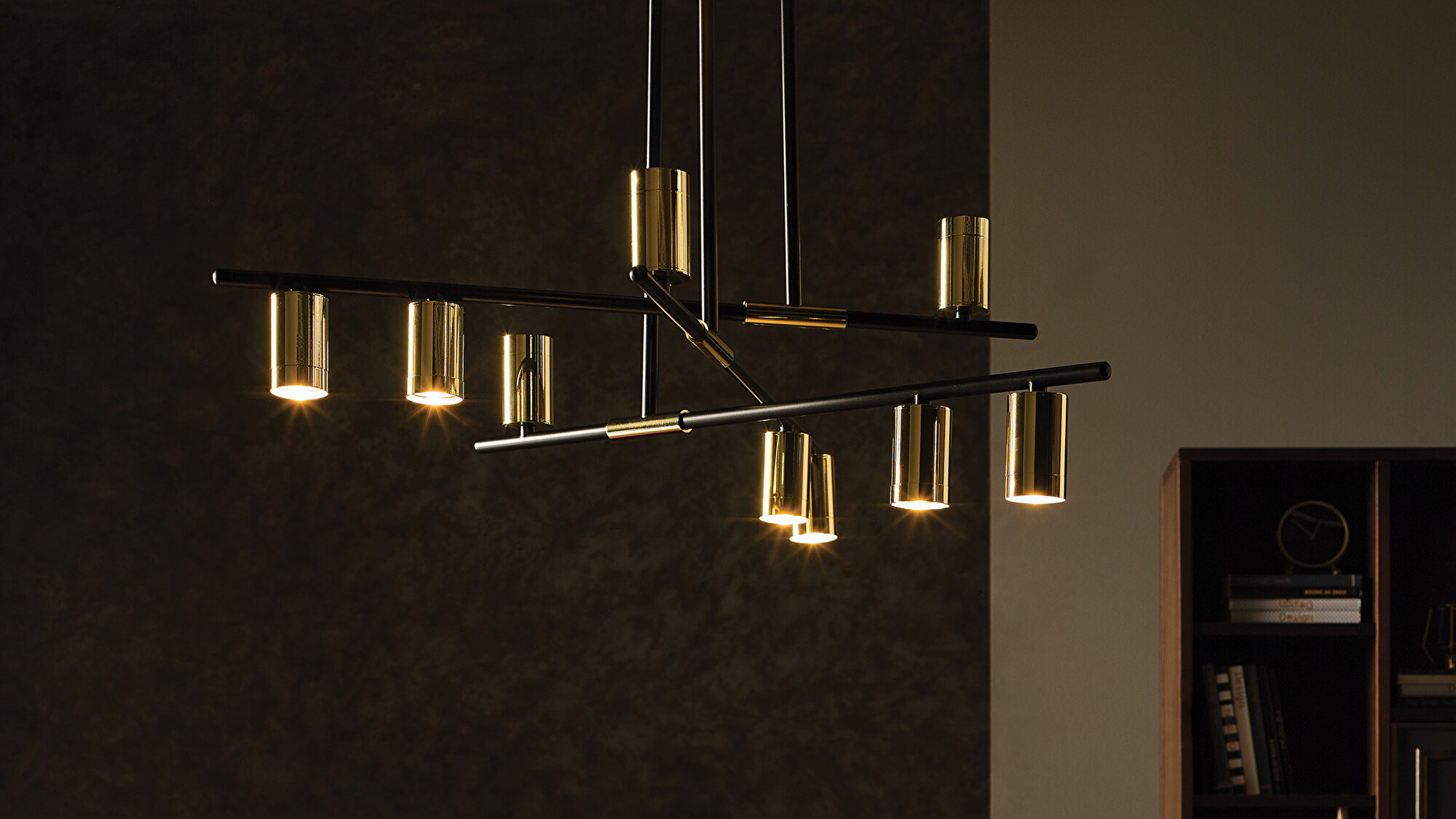 Offering a creative example of the contemporary touch of metal in lighting designs, ELECTRA PENDANT adds an impressive atmosphere to spaces with its extraordinary aesthetics. It creates a modern and rich decoration style with its black painted finishes and gold-plated details.