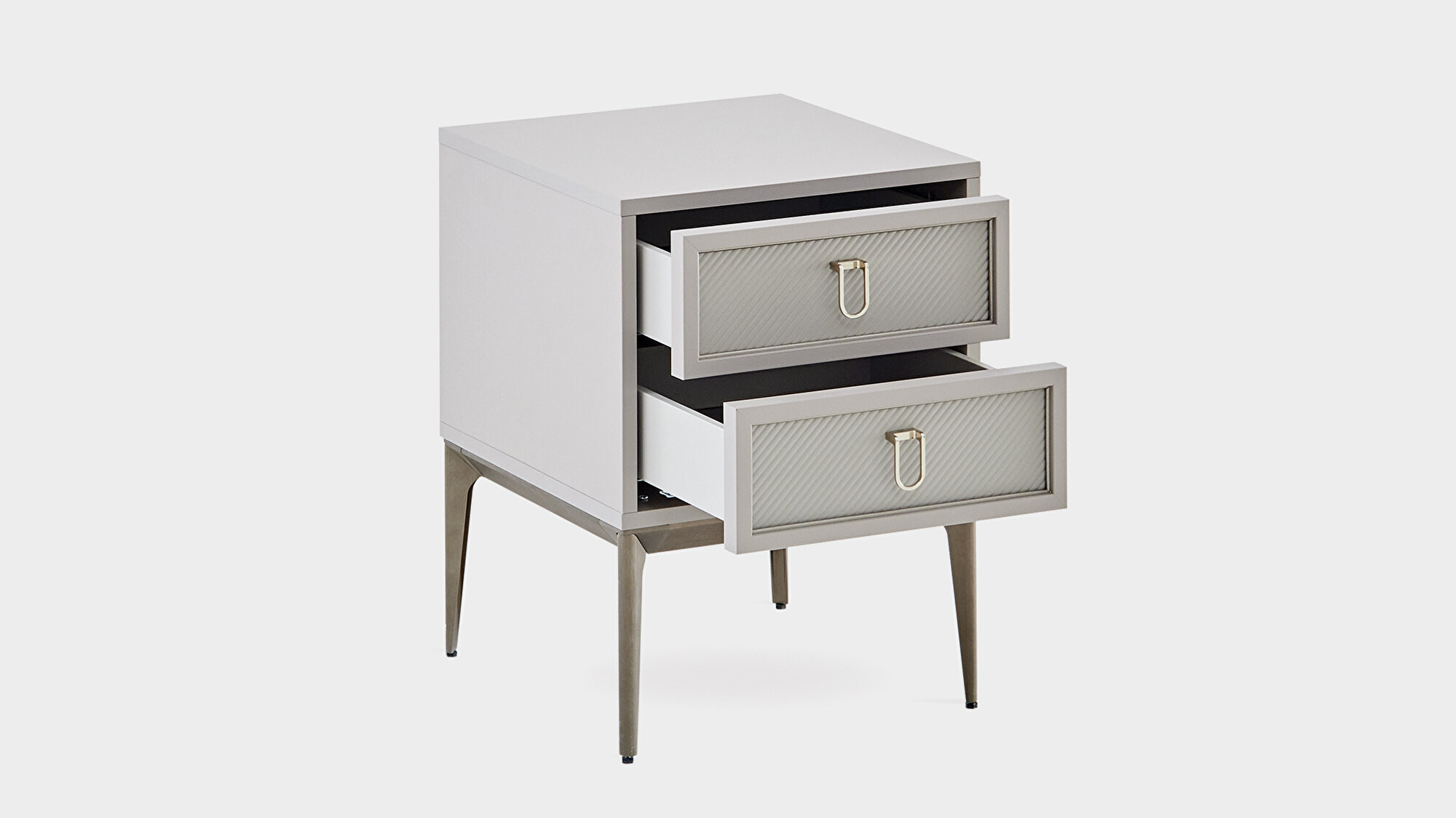 Modern and Minimal HERA DOUBLE DRAWER NIGHTSTAND brings a strong interpretation to the modern decoration concept with its metal handles and metal leg design. Standing out with its aesthetic details, HERA DOUBLE DRAWER Nightstand also provides safe use for many years with its solid structure.