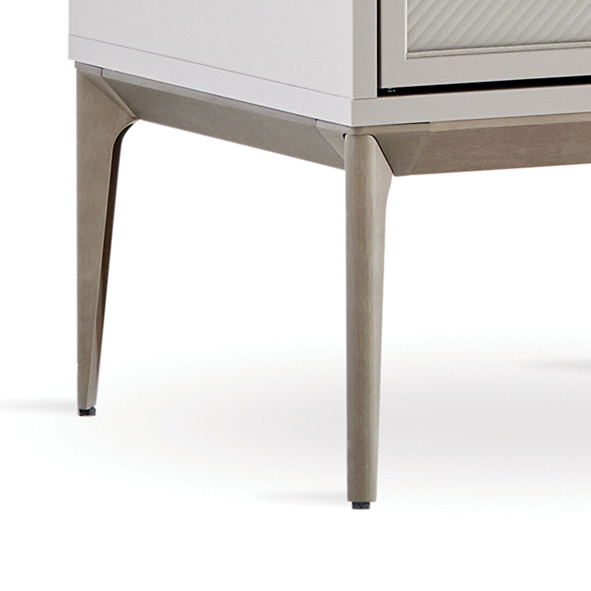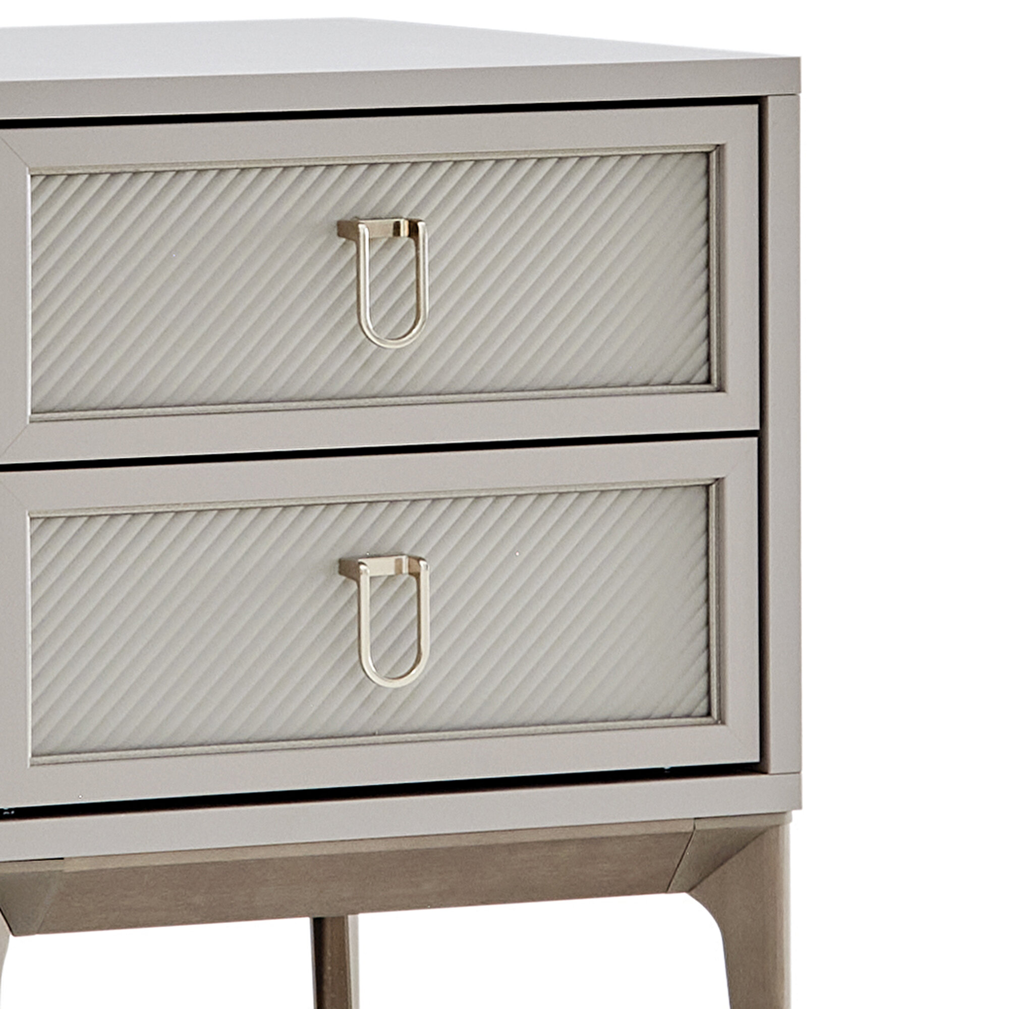 Adding a minimal touch to bedrooms with its stone color, HERA DOUBLE DRAWER Nightstand strengthens aesthetics with its shiny bronze handles and brushed bronze metal legs, while its 2-drawer structure highlights functionality.
