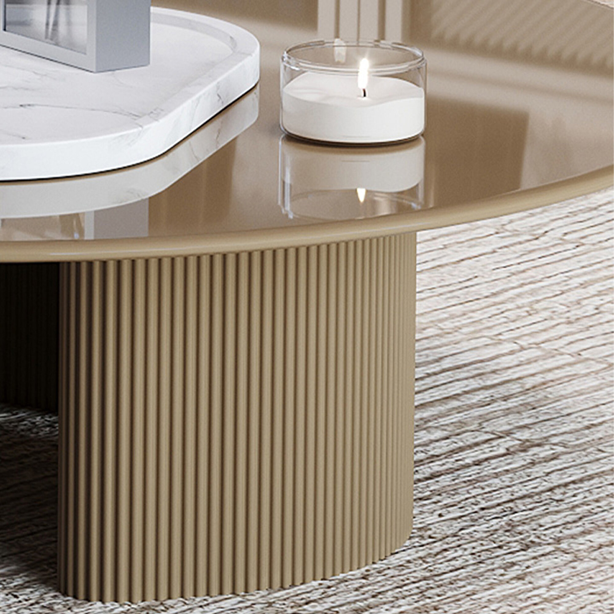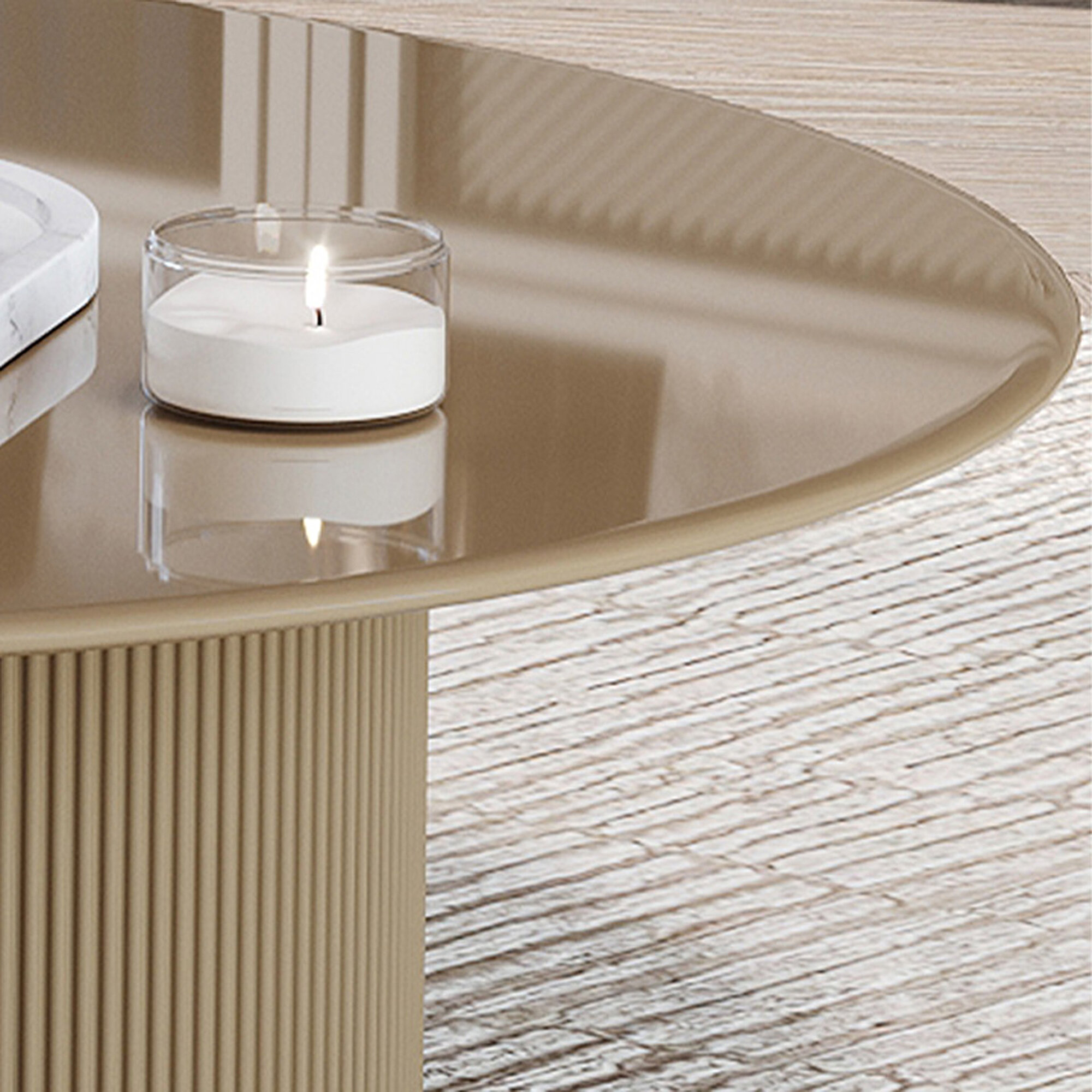 Timeless Elegance The round top made of durable MDF material gives the HERA COFFEE TABLE both durability and a modern look. It combines elegance with functionality with its smooth surface and form.