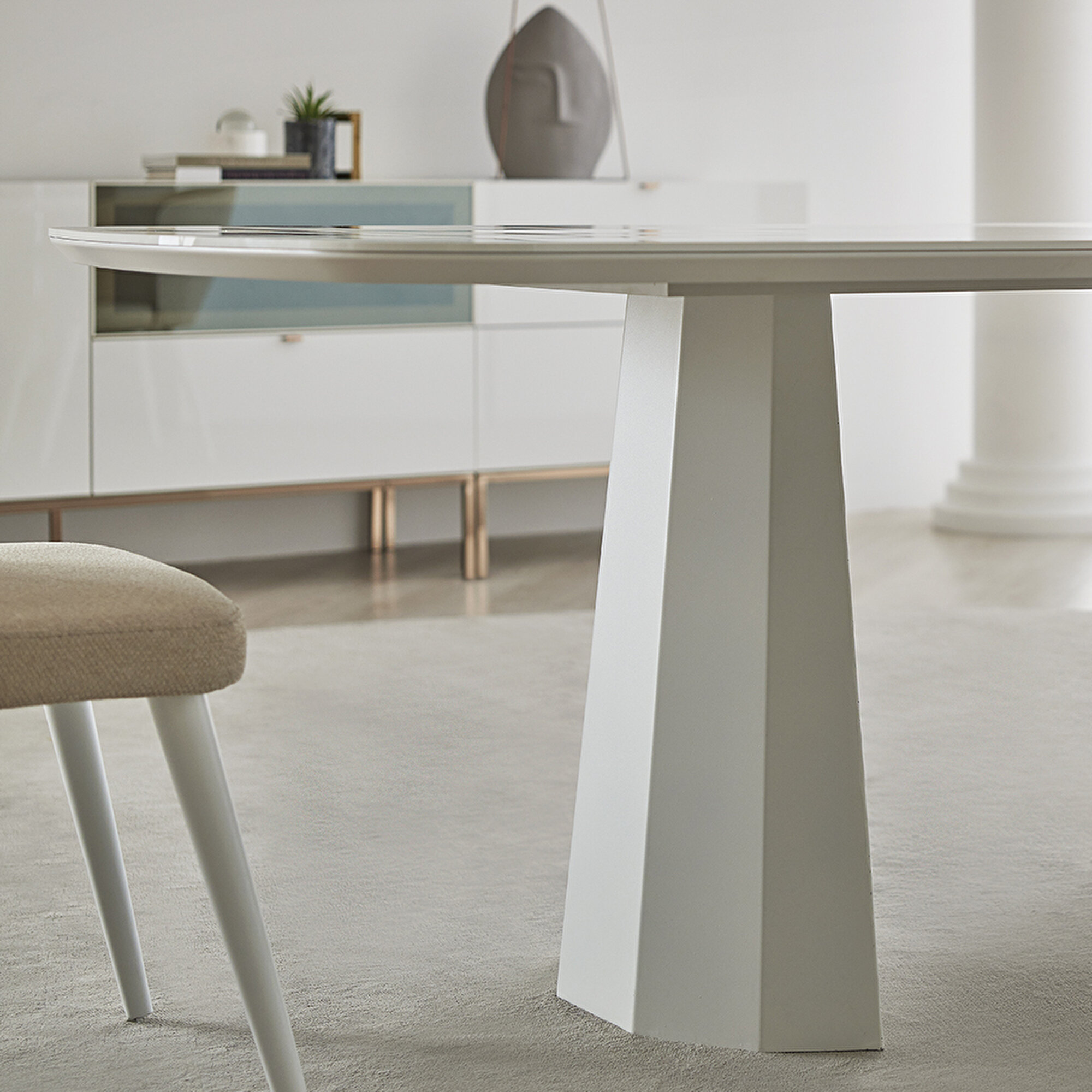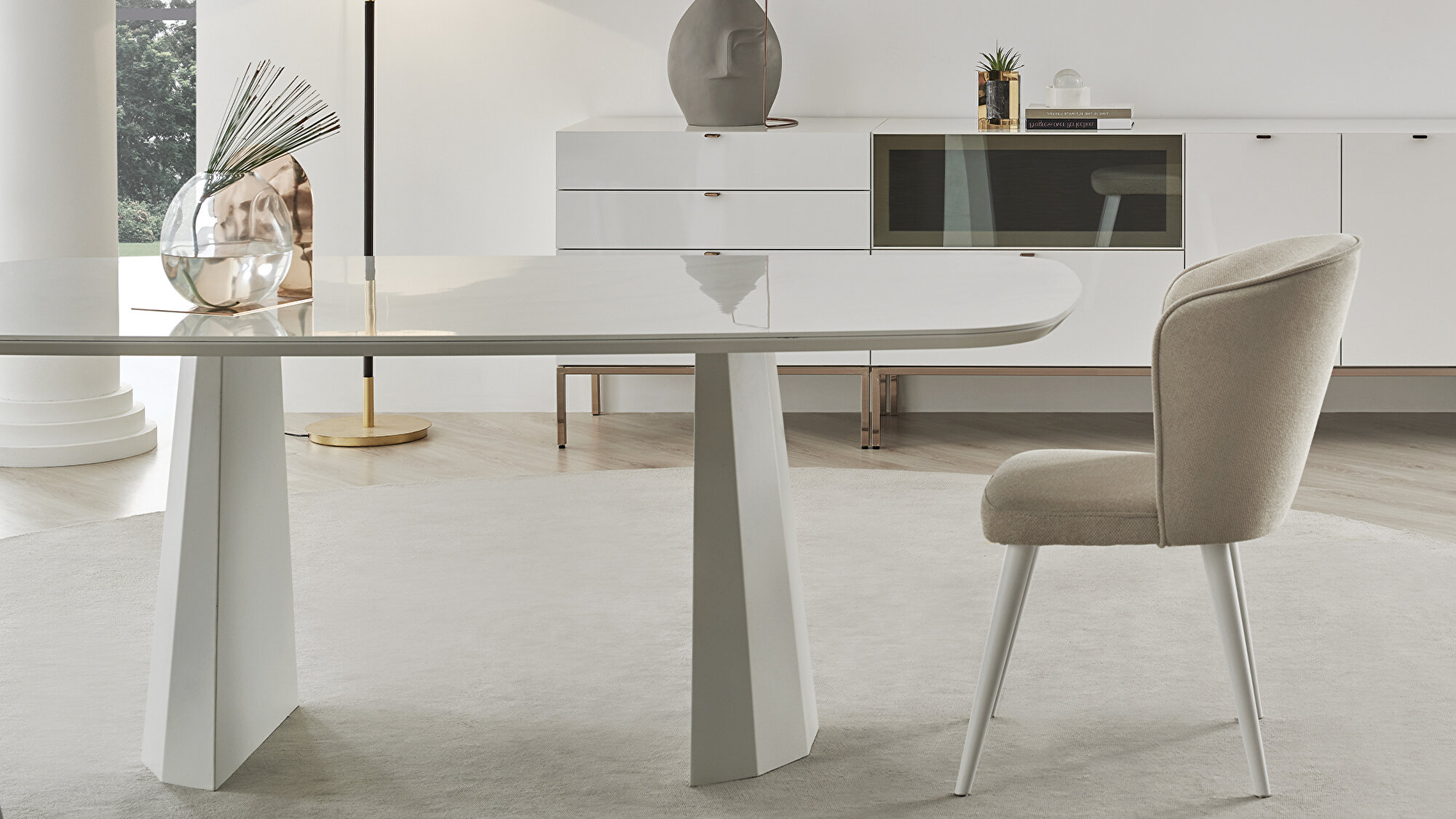 LEGATO FIXED TABLE draws attention with its young, dynamic and modern design features. Reflecting the monochrome style perfectly to different decoration concepts, LEGATO FIXED TABLE allows to create stylish and comfortable spaces with its sculptural metal legs and marble pattern surface application. Offering a seating capacity of 8 people, LEGATO FIXED TABLE helps to prepare large tables and host guests in the best way with its useful size.