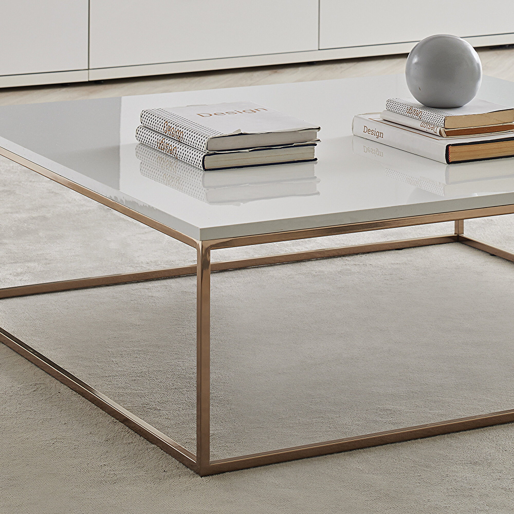 While the LEGATO COFFEE TABLE brings comfort to homes with its stylish and comfortable design, it fits perfectly into the collection with its modern look. LEGATO COFFEE TABLE offers a pleasant use with its bright white surface and gives an impressive look to homes. While it emphasizes a safe and compact experience thanks to its sturdy bronze metal legs, it offers a functional use thanks to its lightweight structure.