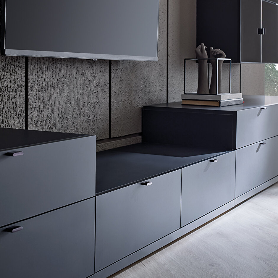 LEGATO TV UNIT, which allows to create combinations suitable for different usage needs with its versatile modules, offers maximum functionality with its drawer modules designed with the storage feature in mind. Reflecting the timeless aesthetics of the monochrome style with its series-specific matte black surface application, LEGATO TV UNIT creates dynamic, original and contemporary living spaces with its rich functionality.