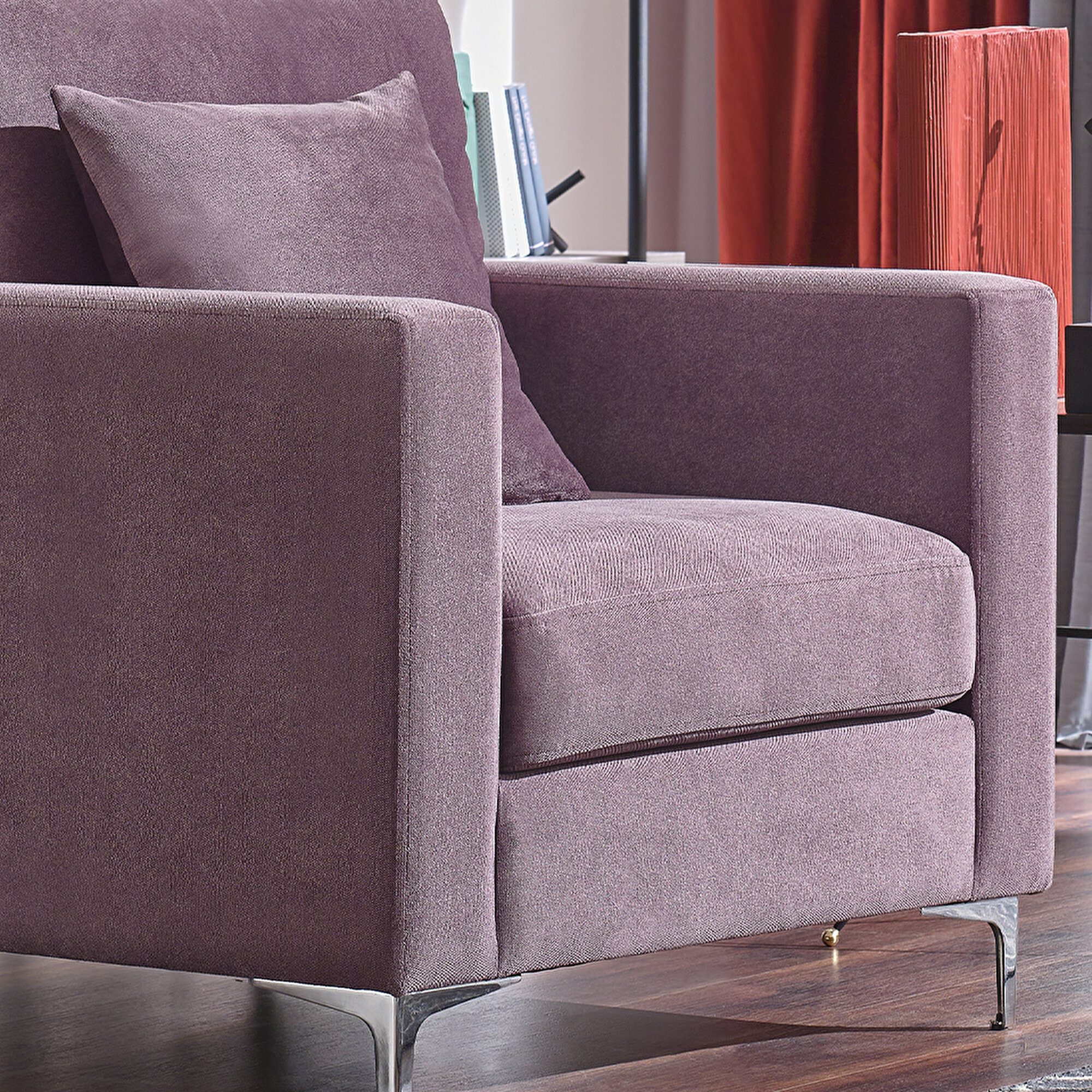Chrome Details Adding a stylish touch to spaces with its chrome-colored metal leg form, which stands out as an elegant detail, Linea Sofa offers its unique comfort with a simple elegance.