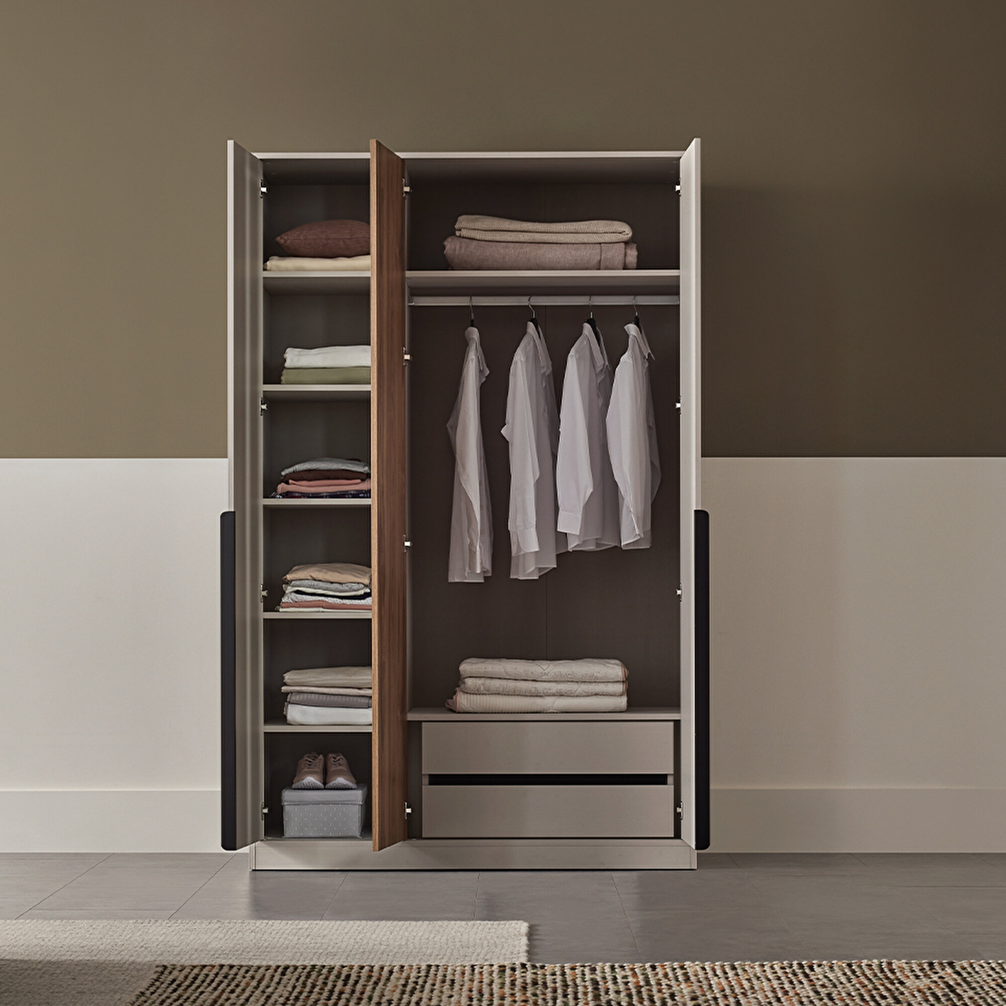 Functional Design LORETO 3 DOOR WARDROBE helps organize living spaces with its large storage areas and shelf system inspired by the functional design line. LORETO 3 DOOR WARDROBE offers practical solutions to organize interiors with the storage areas it offers.