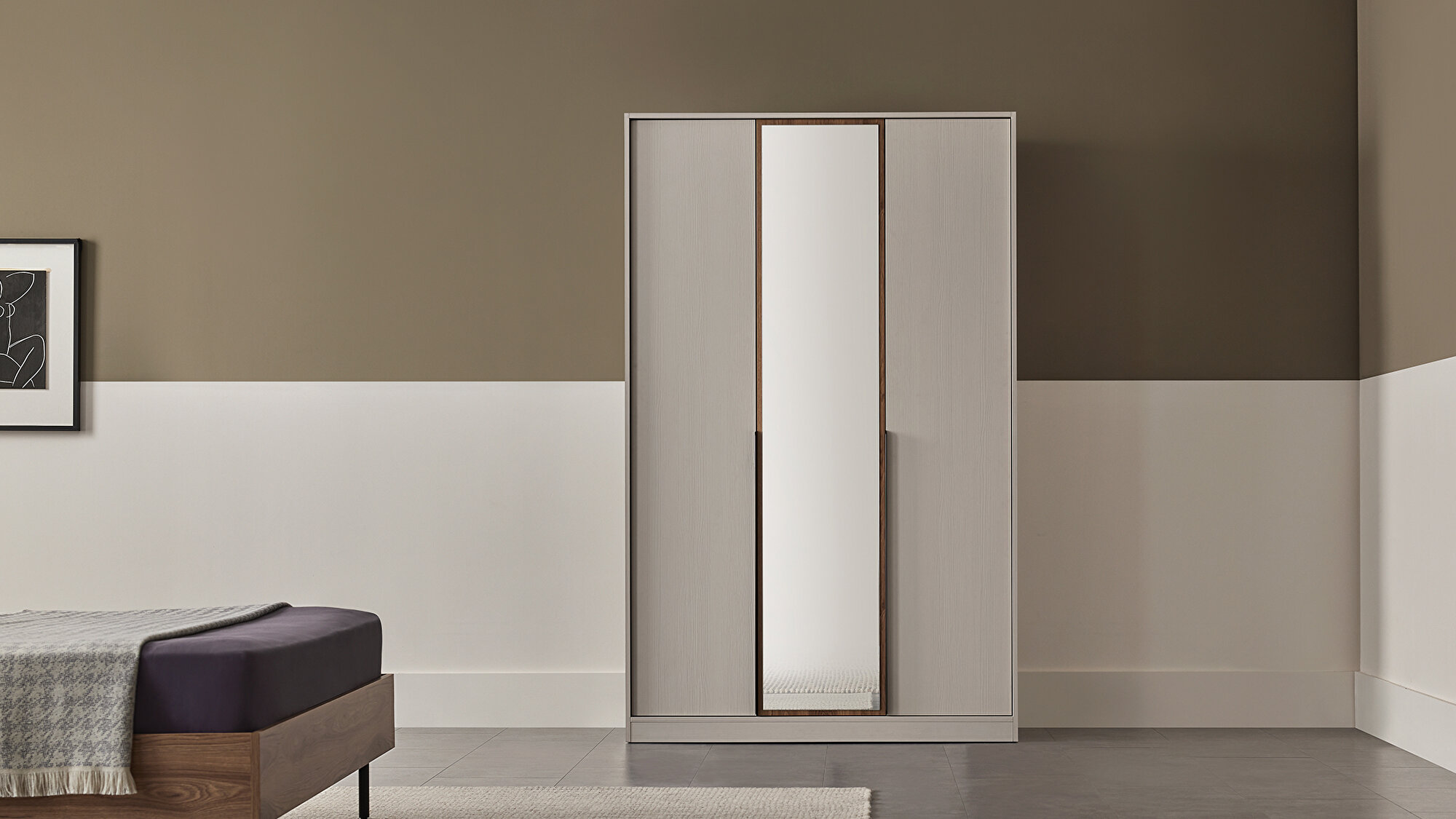 Flawless Naturalness In addition to offering a full-length mirror feature with the natural mirror application on the LORETO 3 DOOR WARDROBE, it complements the decoration in a stylish way. The use of a deep-textured surface, where naturalness is at the forefront, comes together with long metal matte black handles and adds a modern elegance to living spaces.