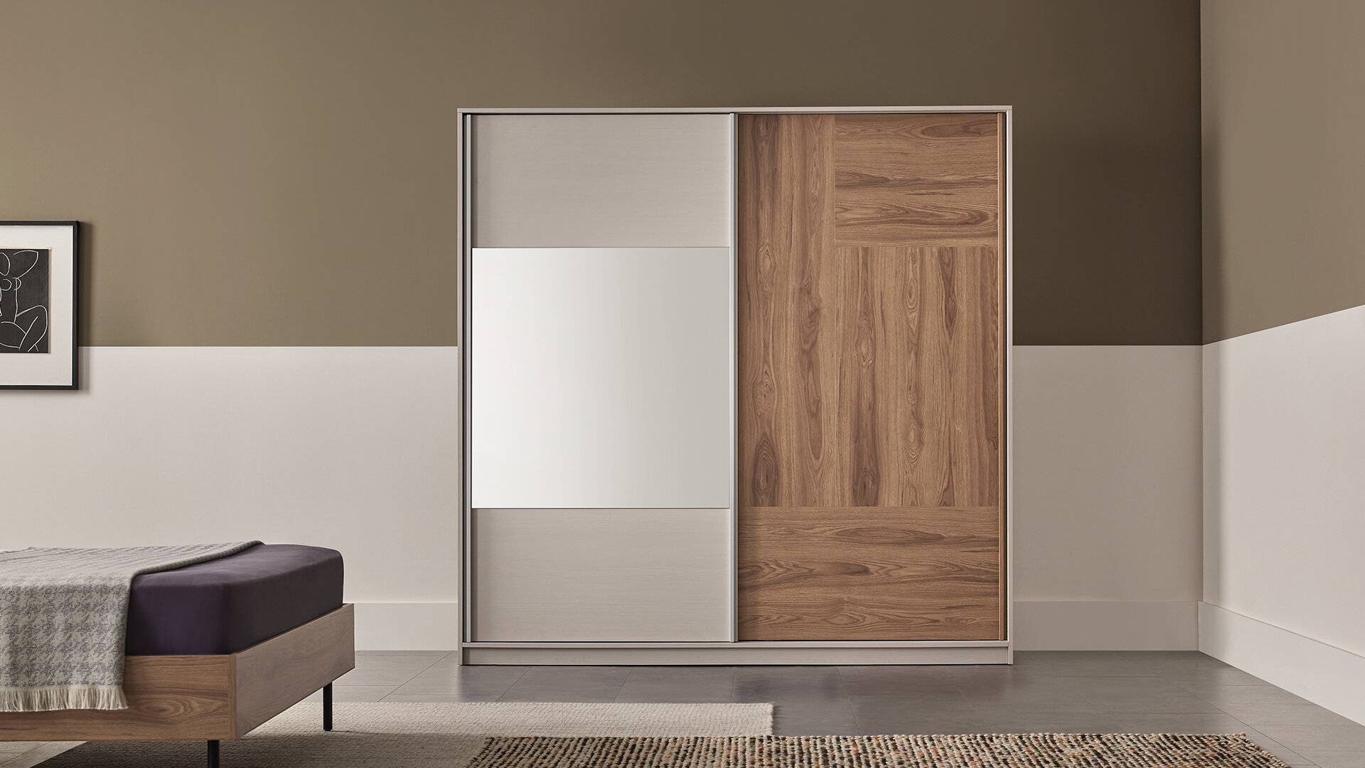 Standing out with its dynamic design approach, LORETO SLIDING DOOR WARDROBE emphasizes naturalness with its light walnut and off-white color combination, and the use of a deep-textured surface where naturalness is at the forefront. With its natural mirror application, LORETO SLIDING DOOR WARDROBE adds spaciousness to bedrooms.