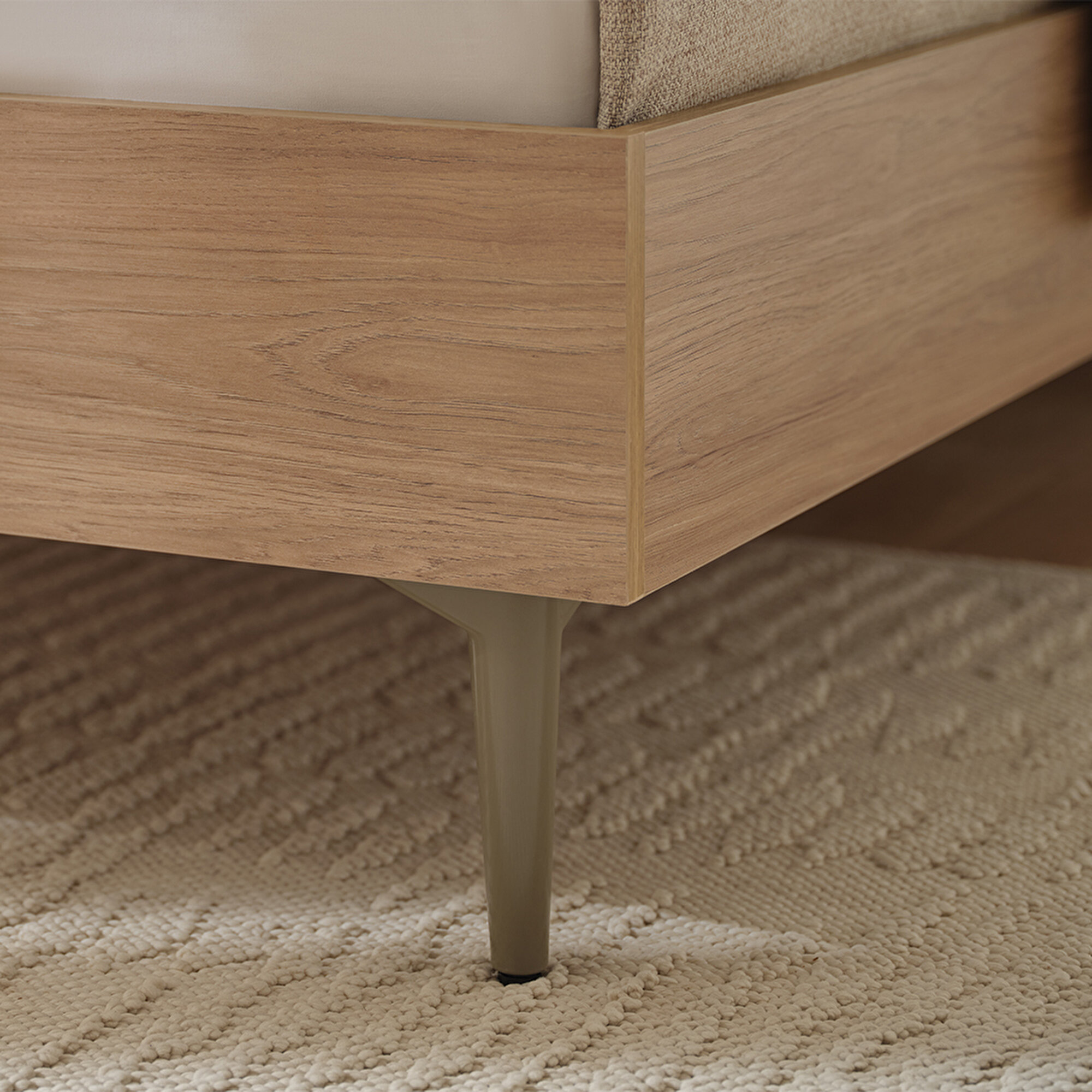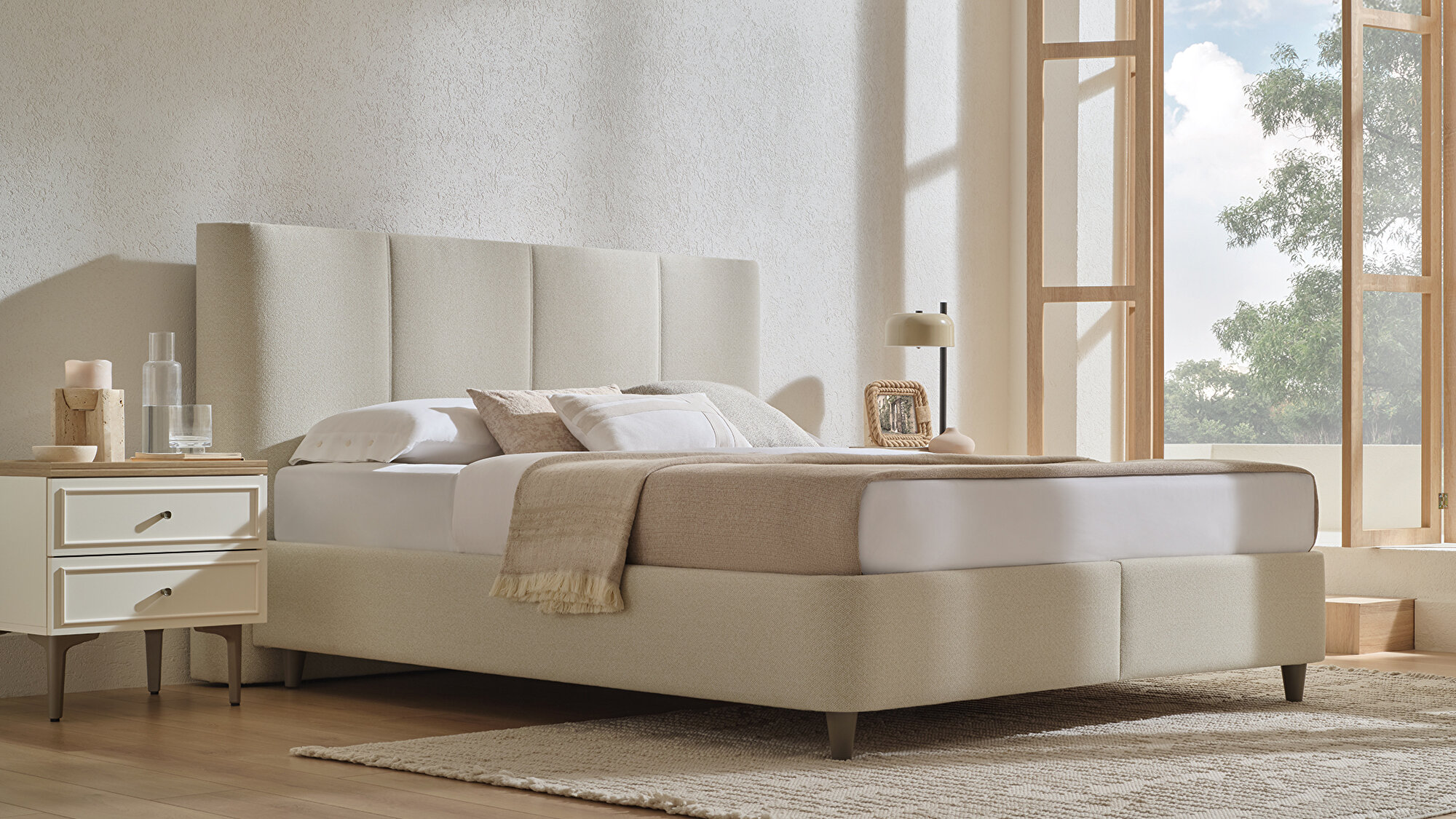 Base with Headboard(160x200 cm) 71001 Beige, Woven Fabric