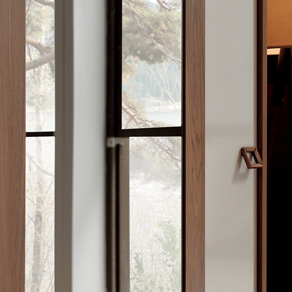 MISTRAL 5-DOOR WARDROBE creates a spacious and bright atmosphere in the space with its bright mink cream color combination that harmonizes perfectly with Arizona walnut. Specially designed for the series, the square-shaped wood-like handles redefine the modern decoration concept with their impressive visuality.