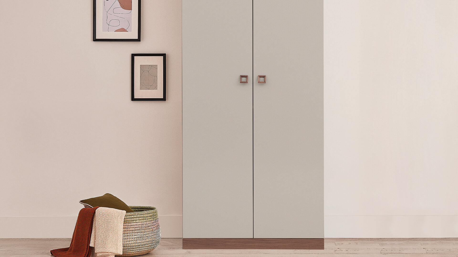 MISTRAL 2-DOOR WARDROBE creates a spacious and bright atmosphere in the space with its bright mink cream color combination that harmonizes perfectly with Arizona walnut. Specially designed for the series, the square-shaped wood-like handles redefine the modern decoration concept with their impressive visuality.