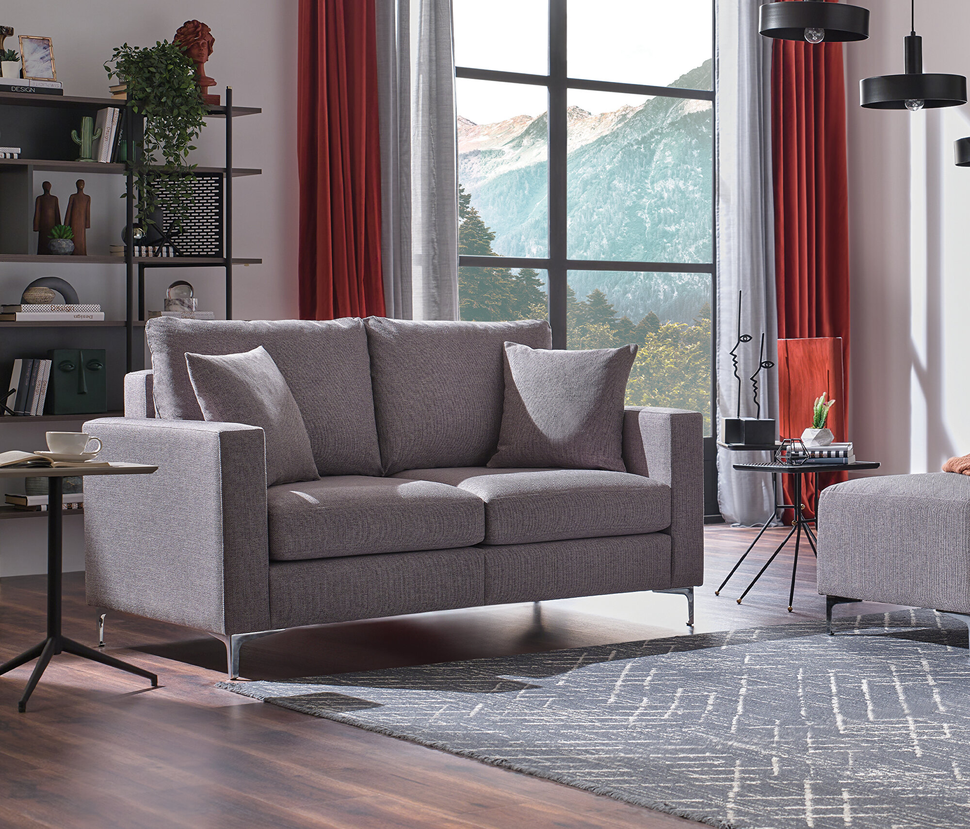 2 Seater Sofa, Linen Textured, 10906 Gray