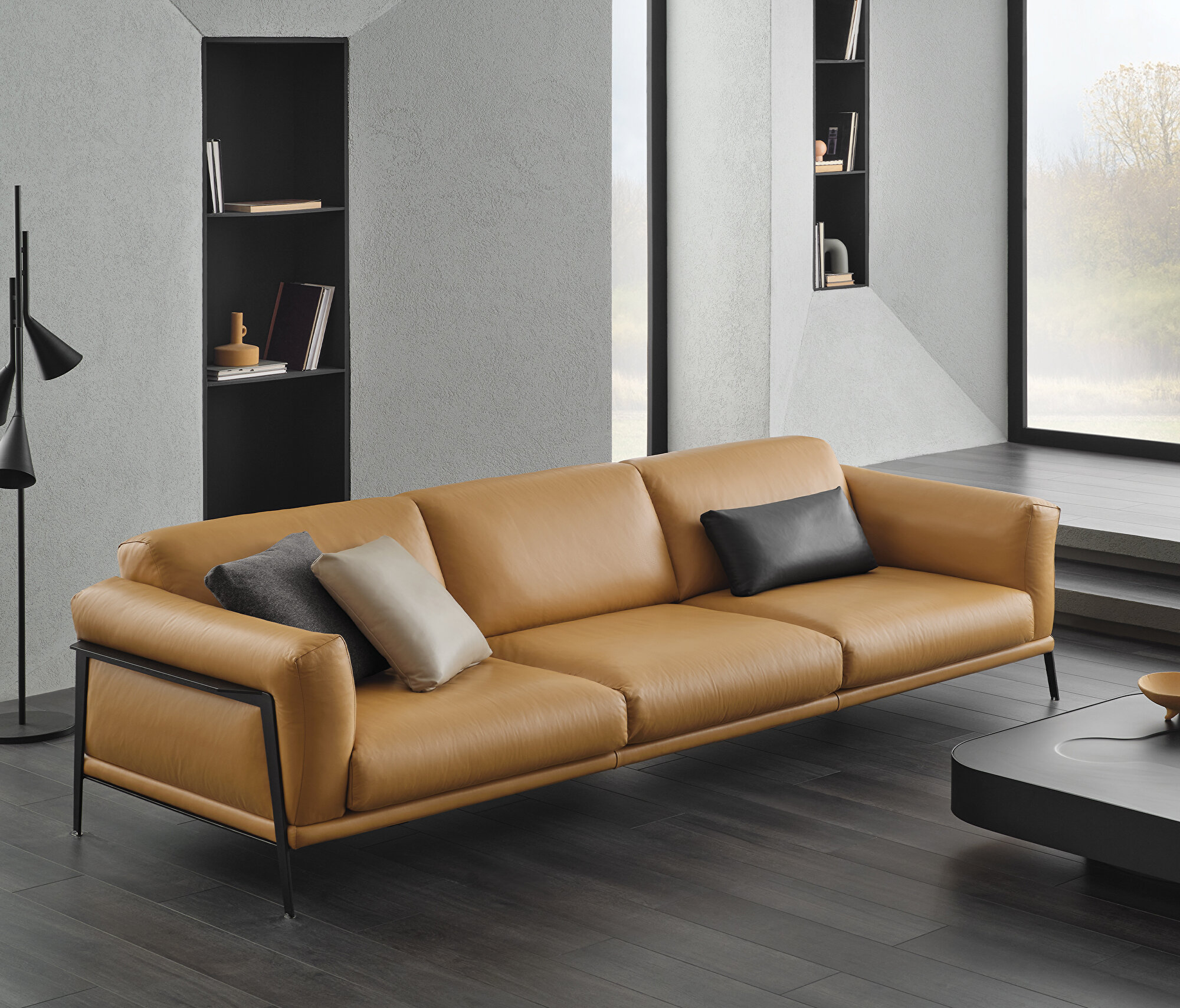 3 Seater Sofa, Real Leather, 54303 Kiwi