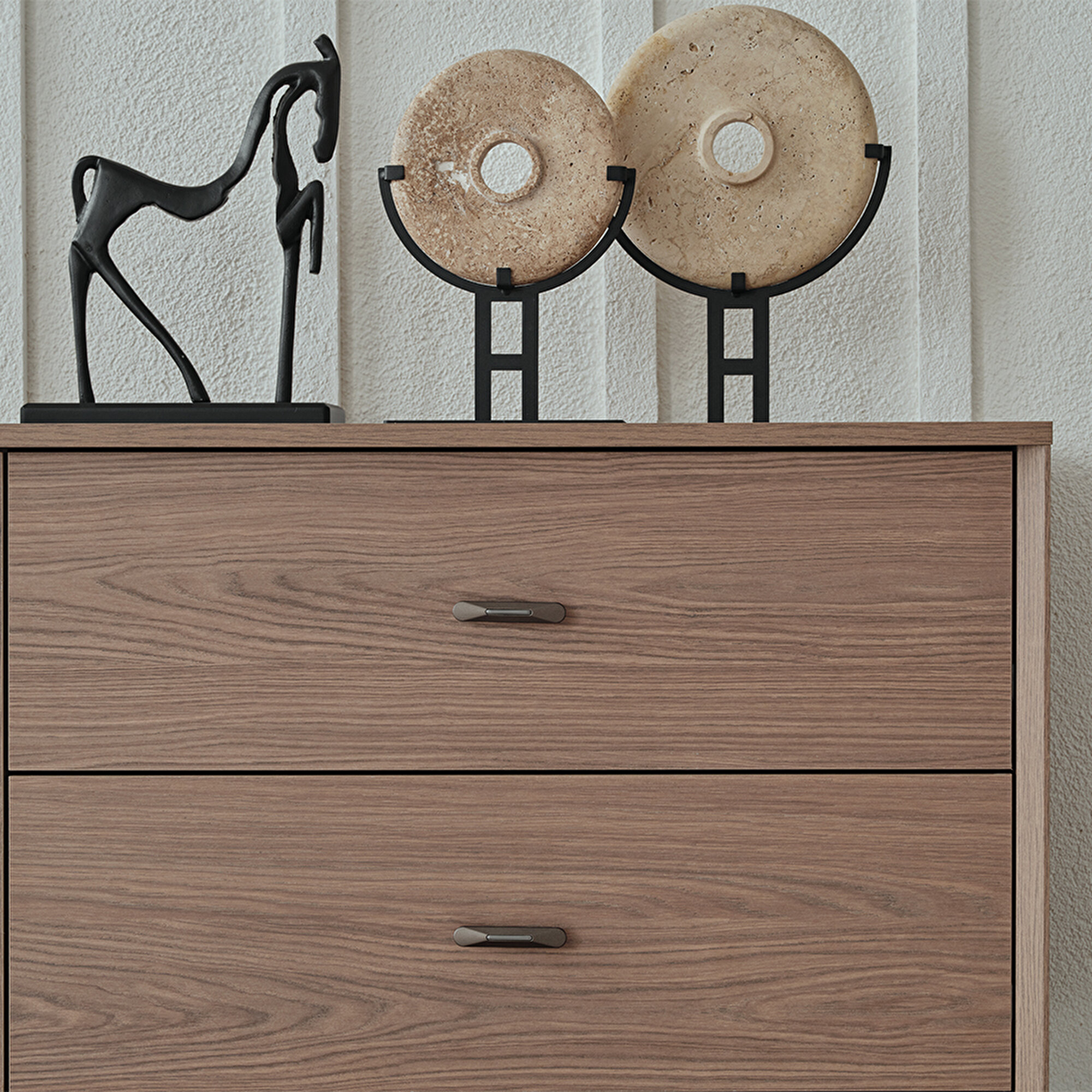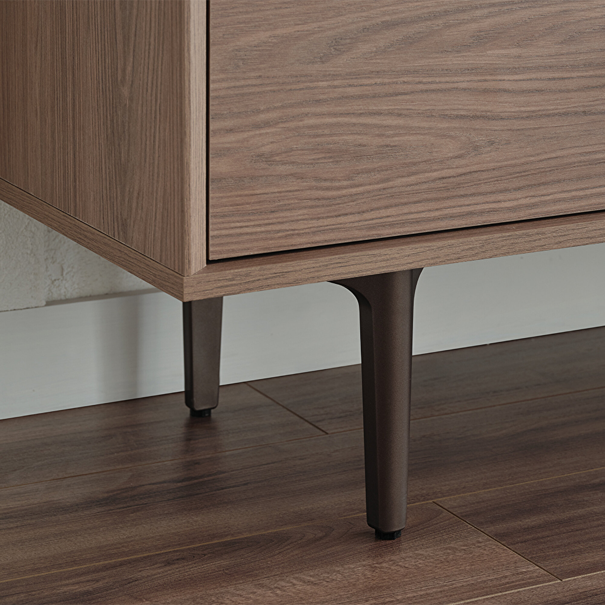 Calm and tranquil design conceptWarm and naturalDeep textured walnut colorSpecial angled side pillar application2 different sized console alternatives2 drawers availableMetallic brown colored metal handle designMetallic brown colored foot useSlower hinge and rail system use