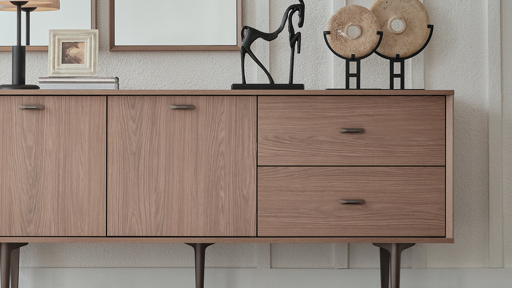 Modern Lines With its elegant metallic brown handle details on both drawers, PALOMA Sideboard combines elegance with modern lines.