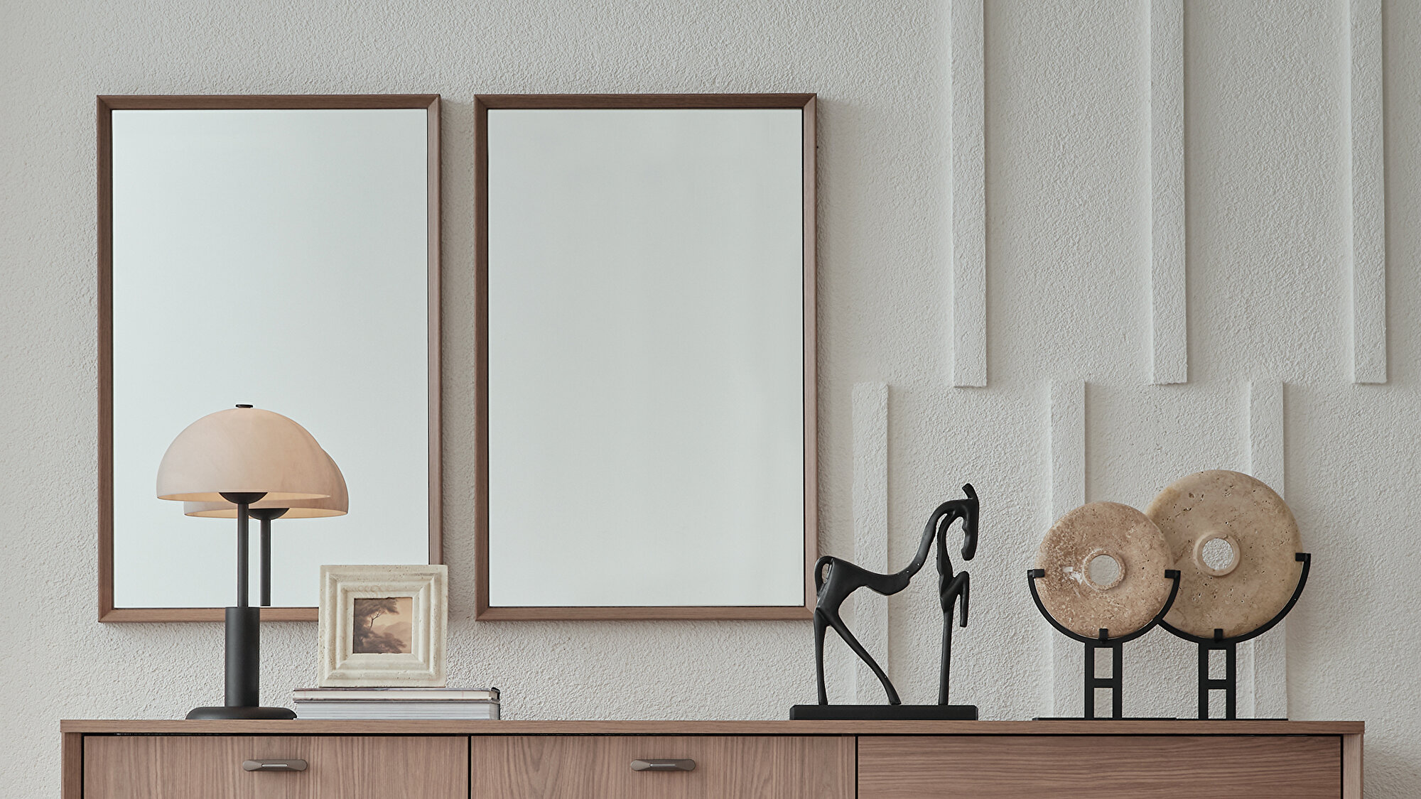 Adding elegance and depth to bedrooms with its rectangular form, PALOMA SIDEBOARD-CHEST of DRAWERS MIRROR creates a refreshing atmosphere by reflecting a natural light with its natural color mirror application.
