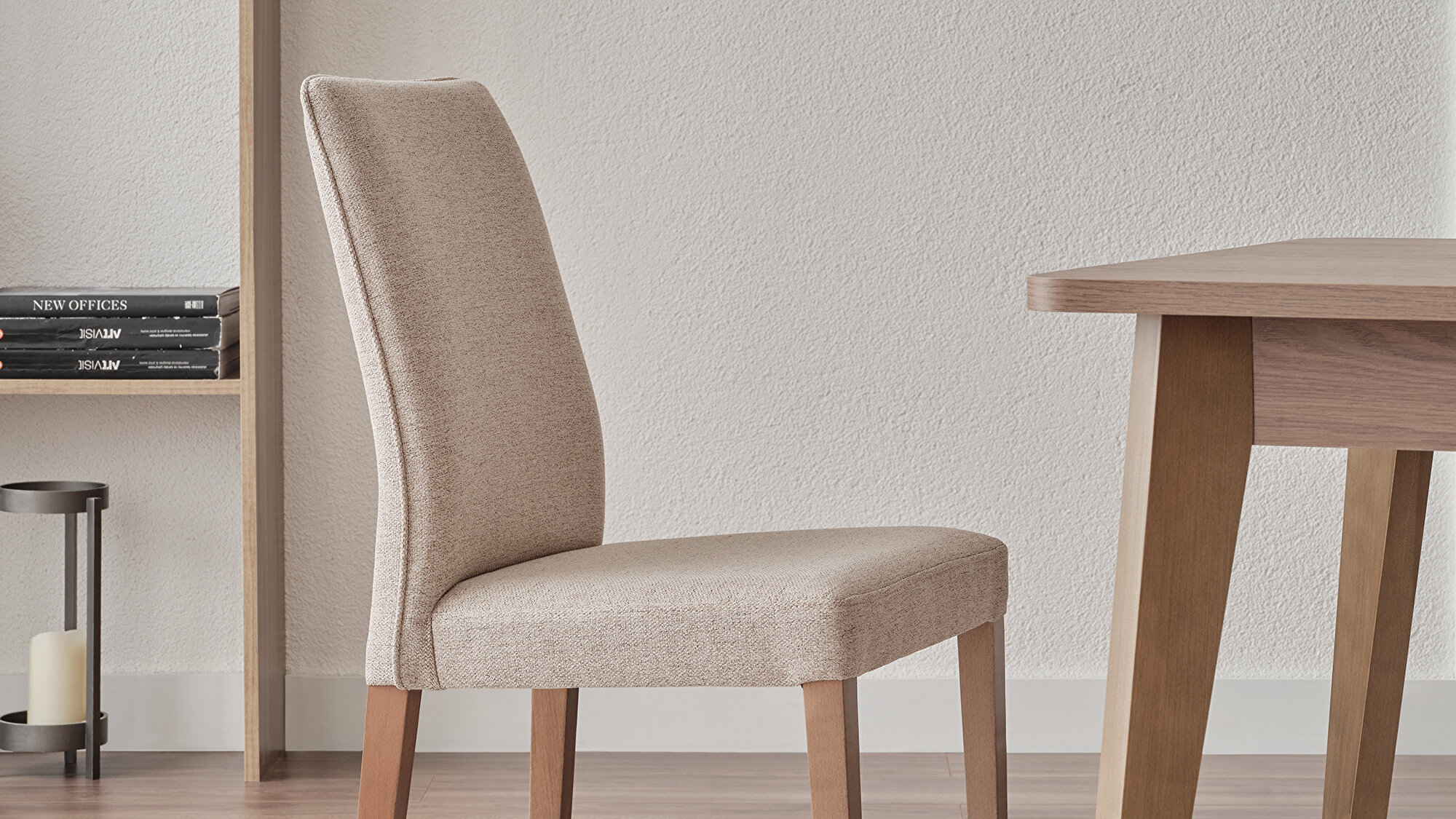 Standing out with its natural wooden legs designed to add an elegant atmosphere to every living space, PALOMA CHAIR combines natural elegance and comfort.