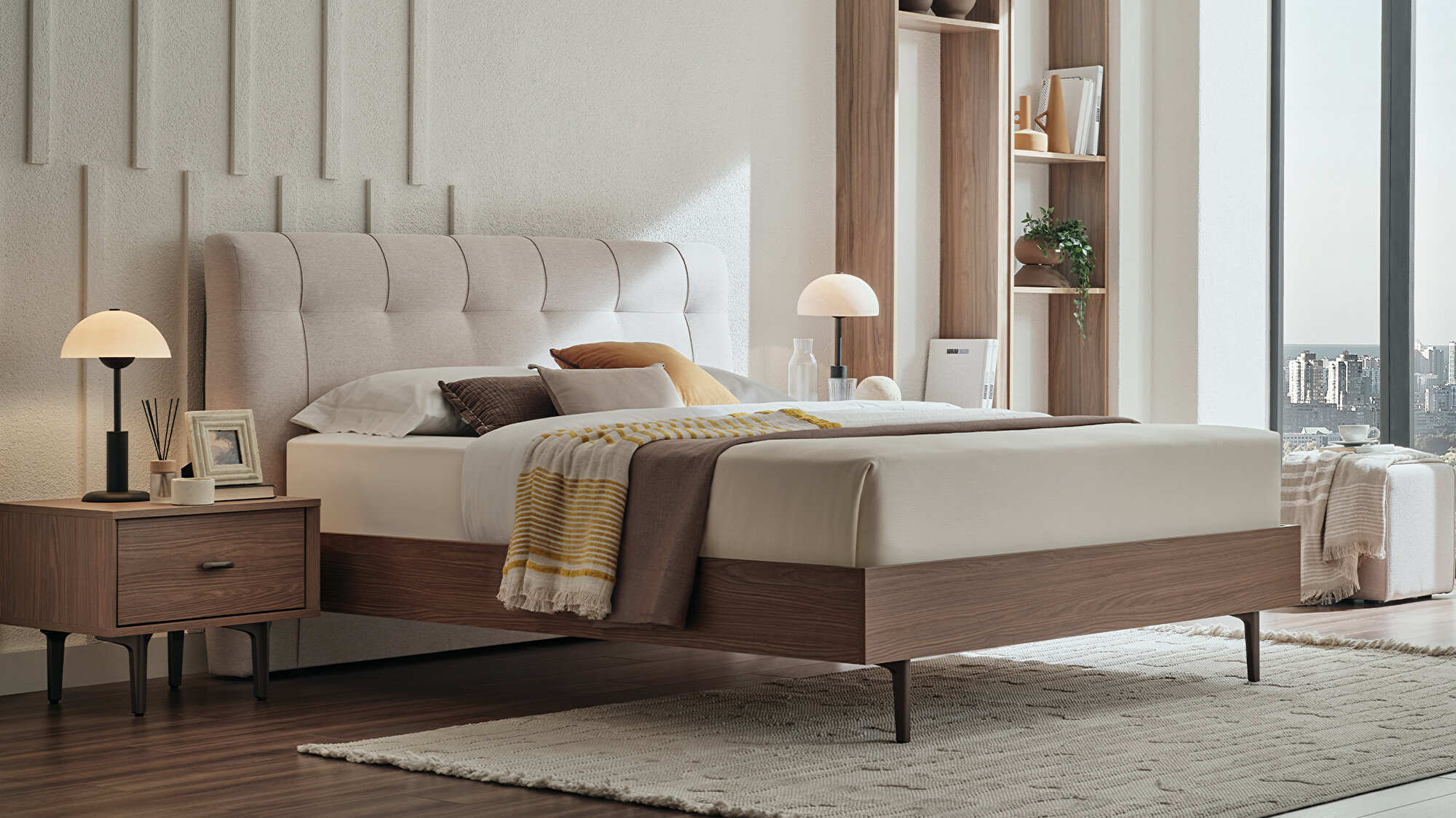 PALOMA BEDRAME with HEADBOARD combines a calm and warm design approach with elegance. The deep-textured walnut color and the carefully applied stitching and puller details on the headboard highlight the elegance. Offering aesthetics and durability together, PALOMA BEDRAME with HEADBOARD is a perfect choice for those looking for both style and functionality.