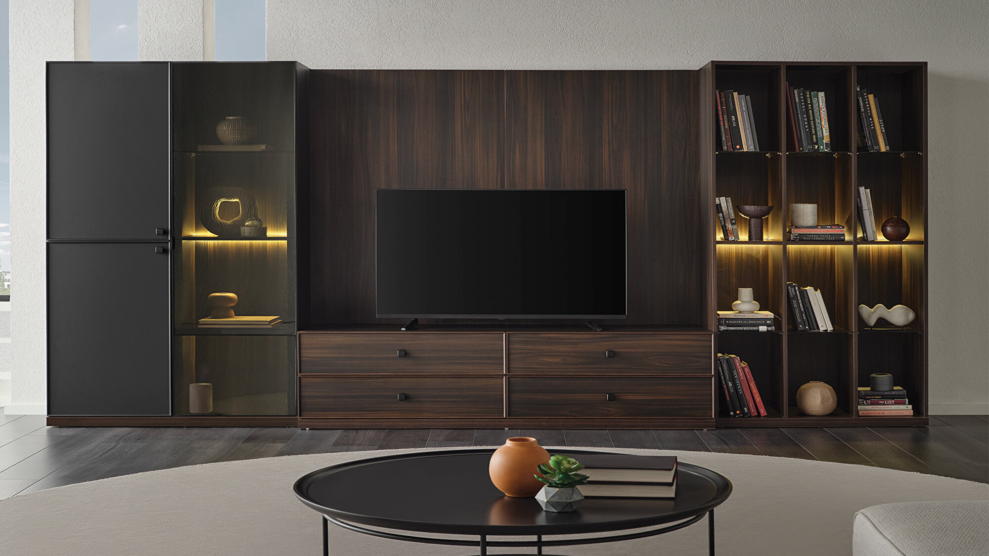 PARMA DRAWER LOWER MODULE, which impresses with its contemporary design and stylish details; It adds an original atmosphere to living spaces. With its dark walnut and black metal handles, it also stands out as a practical and useful choice.